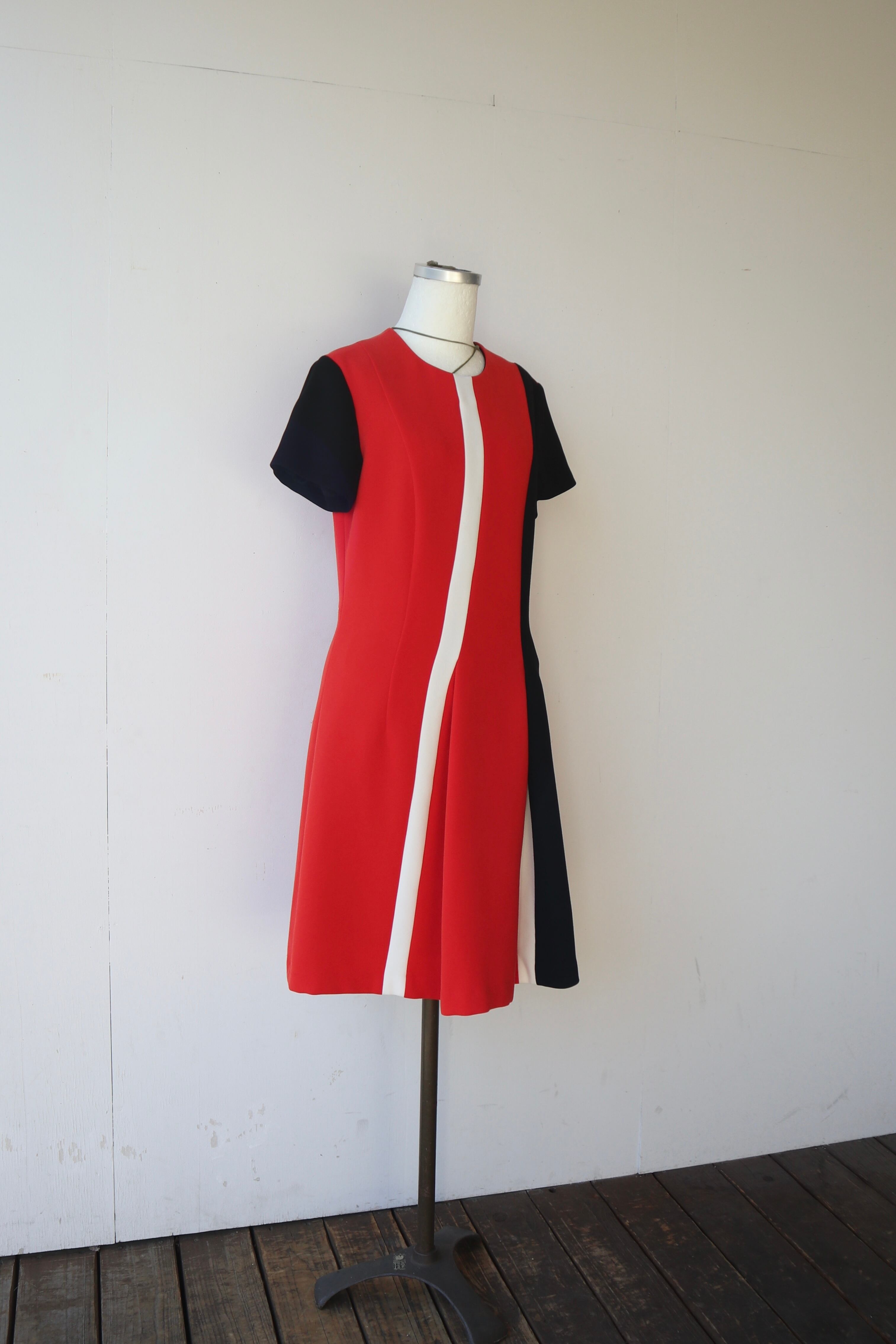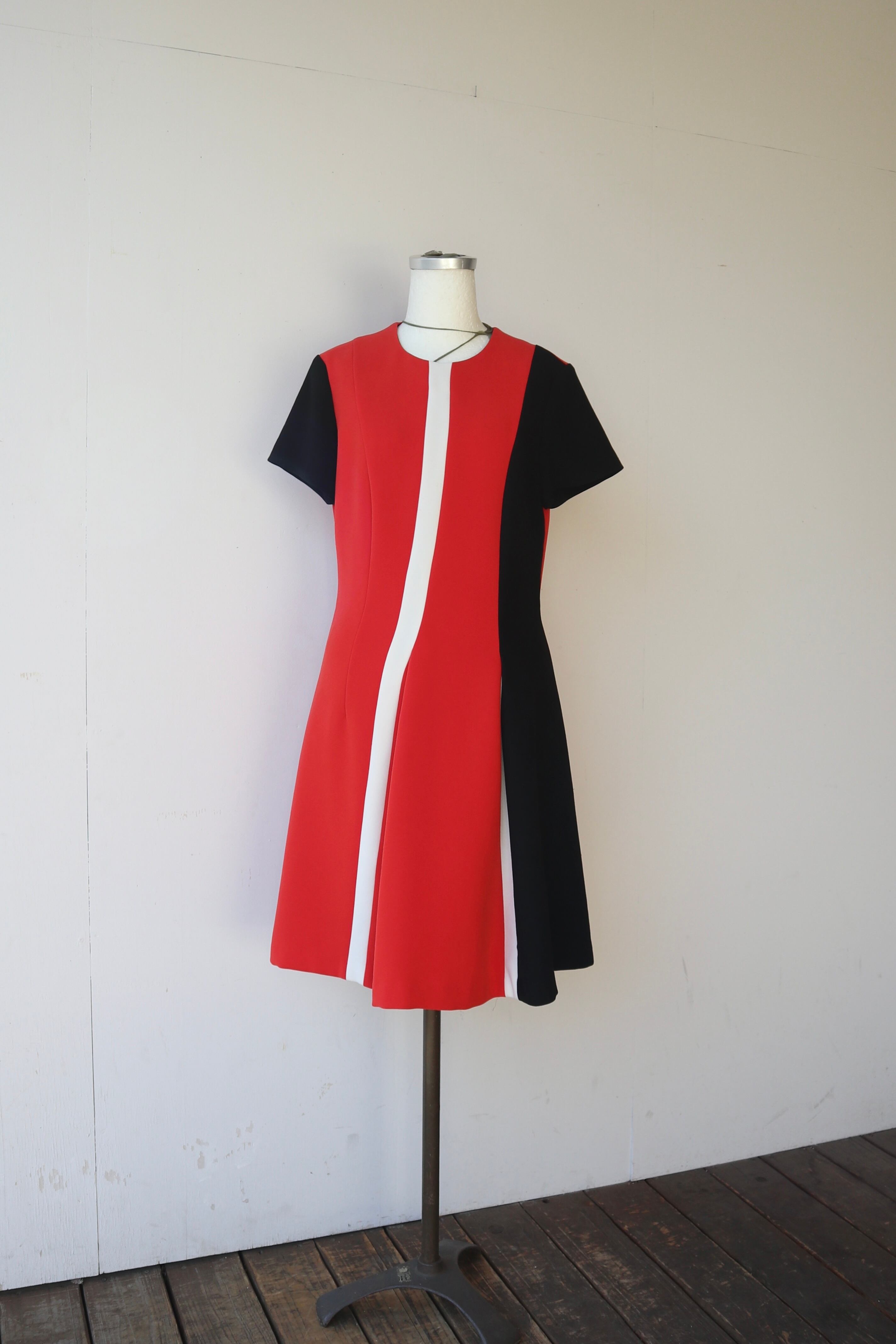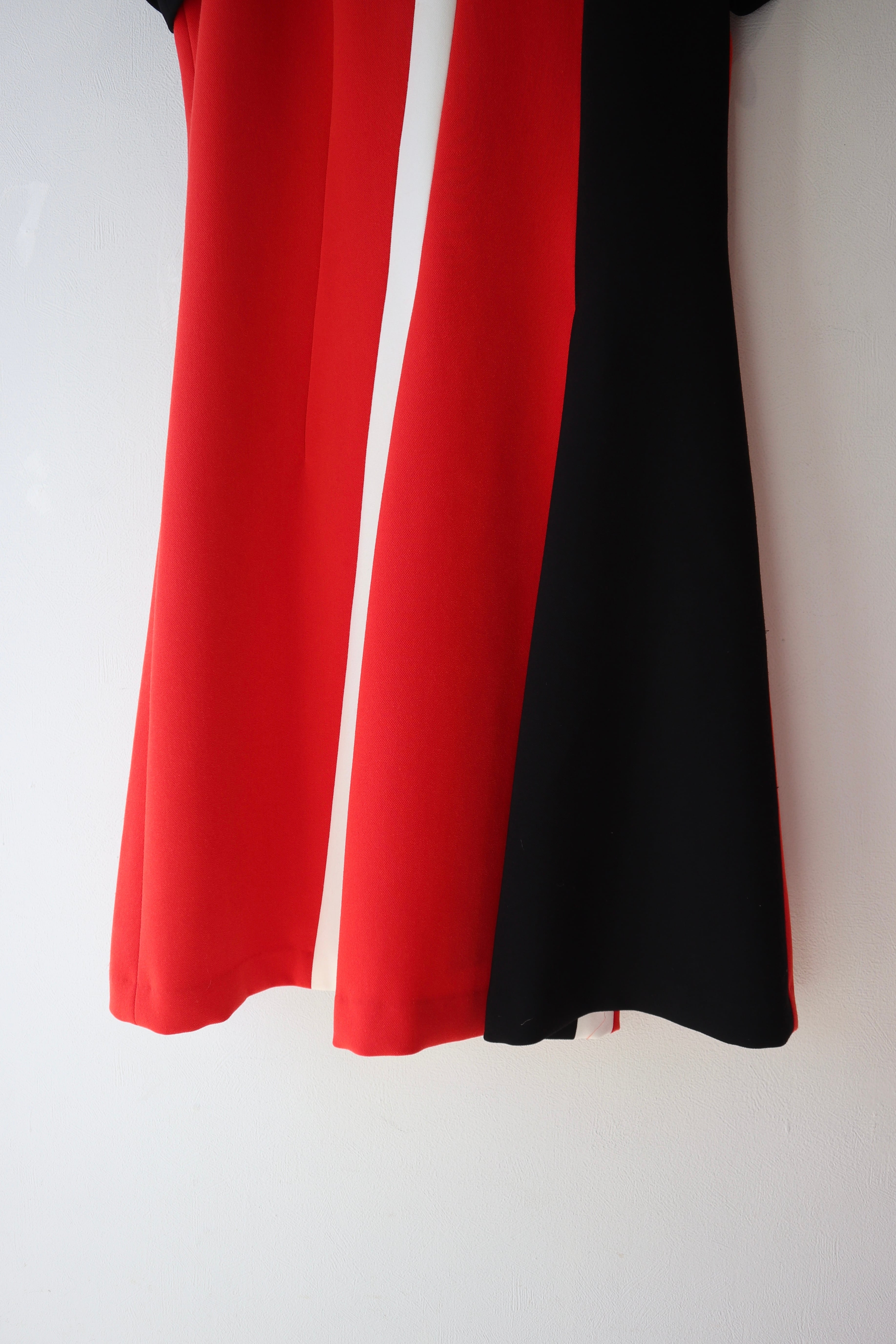 アシンメトリーなデザインとウエストから大きく広がるシルエットがヴィンテージの雰囲気を楽しめるワンピース