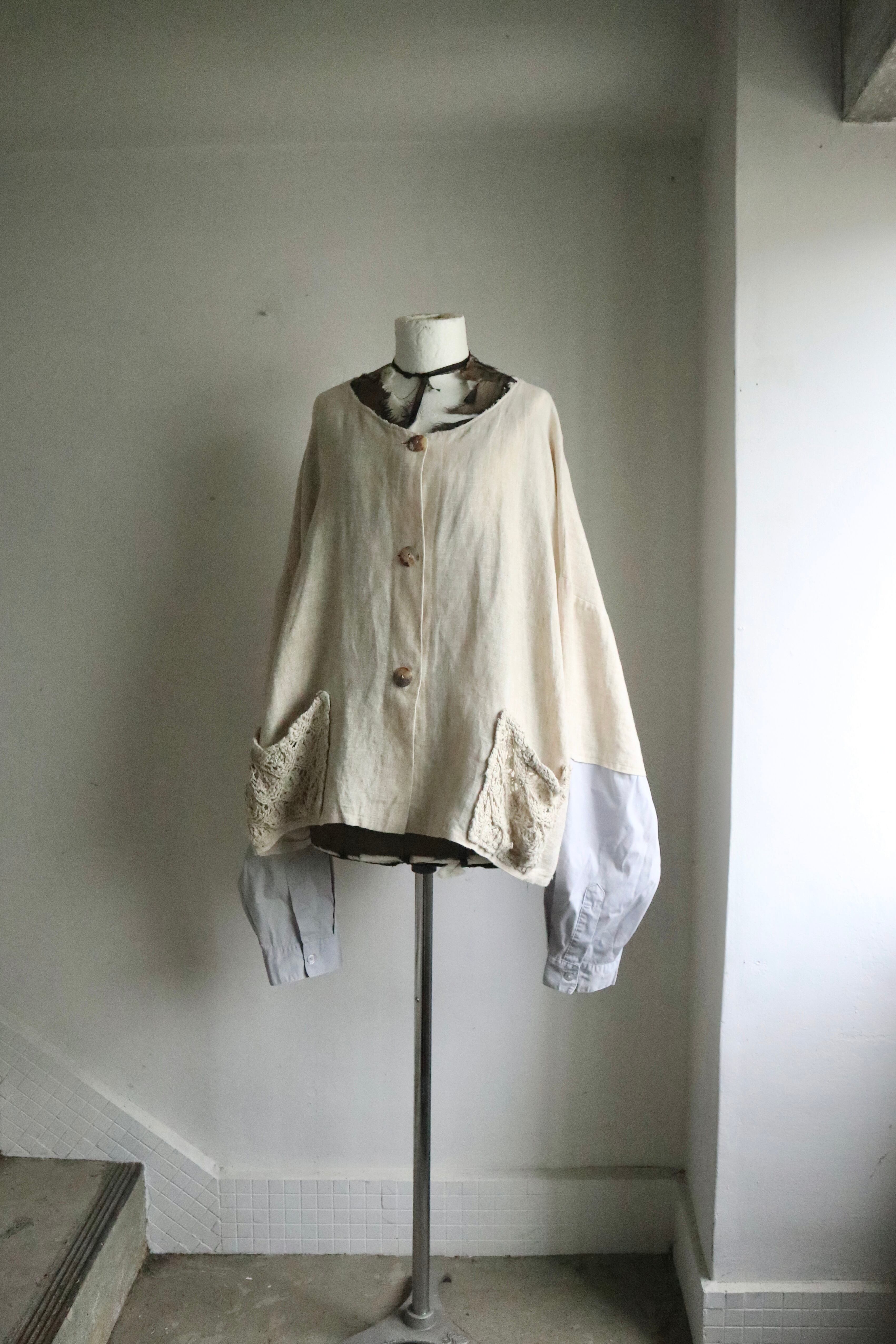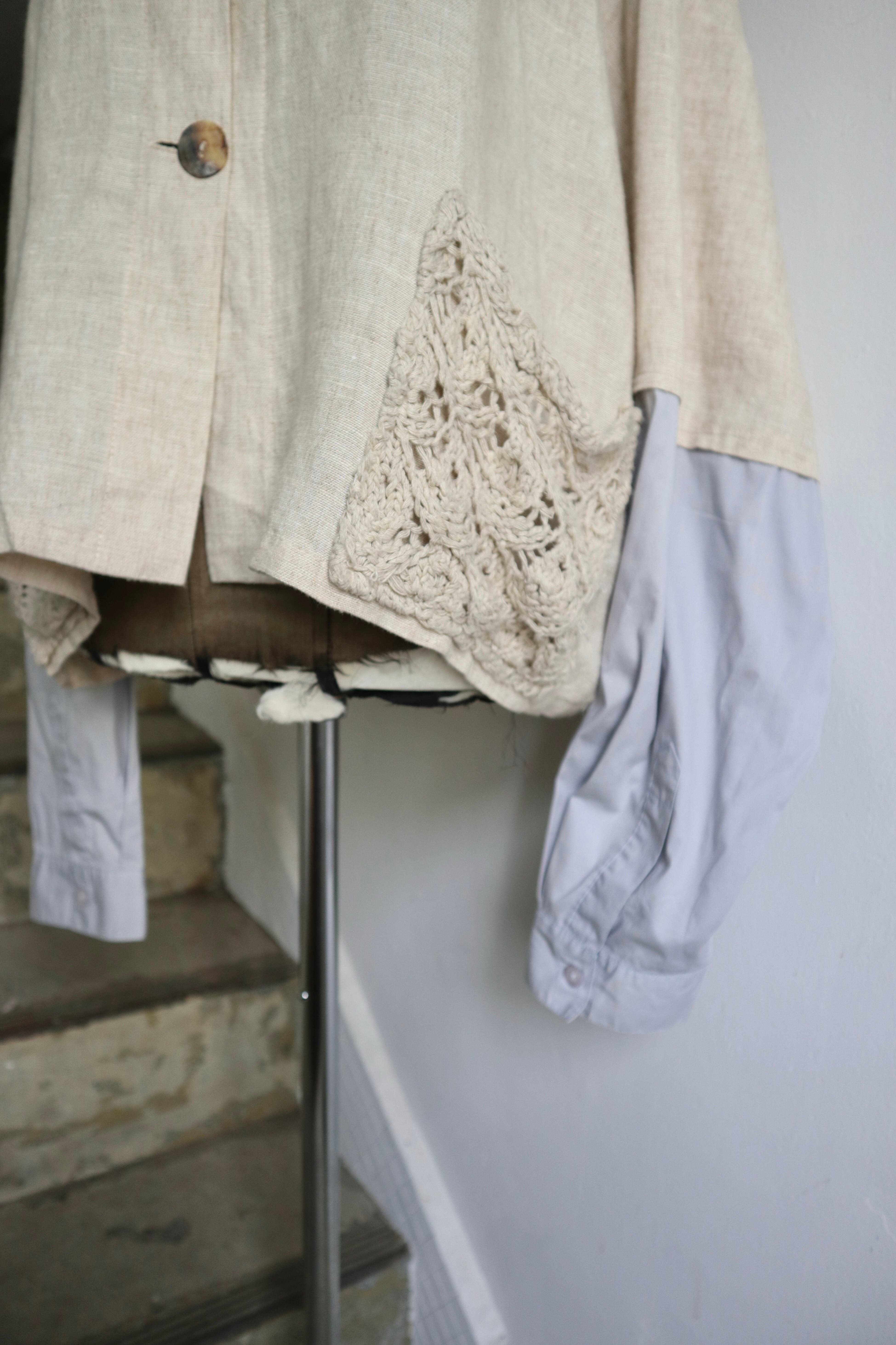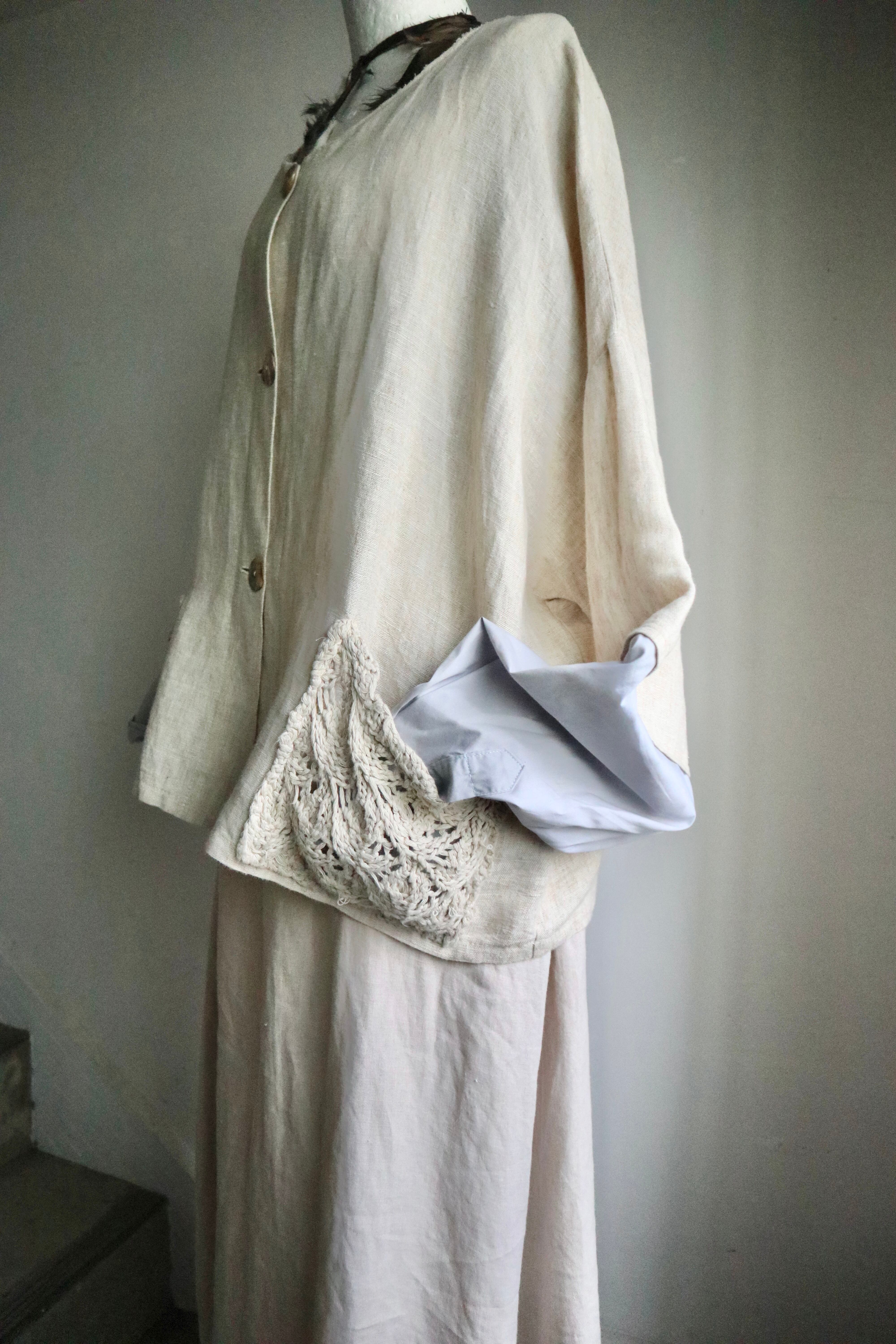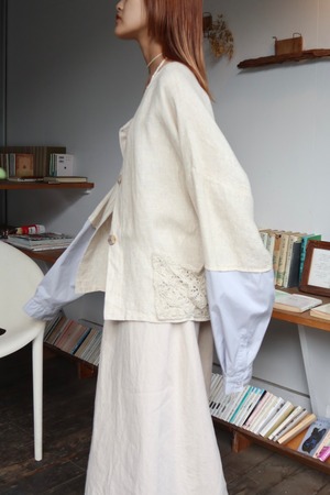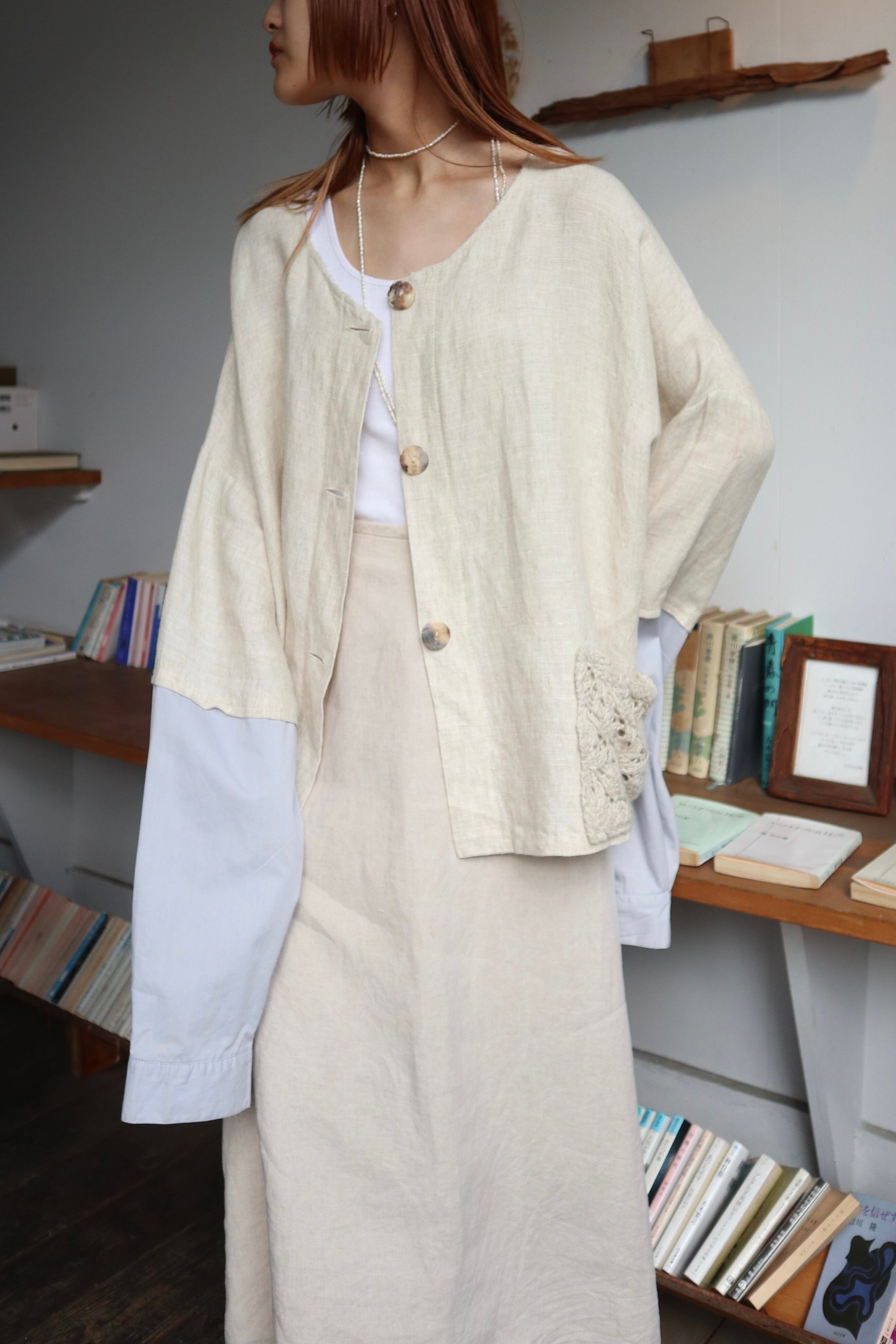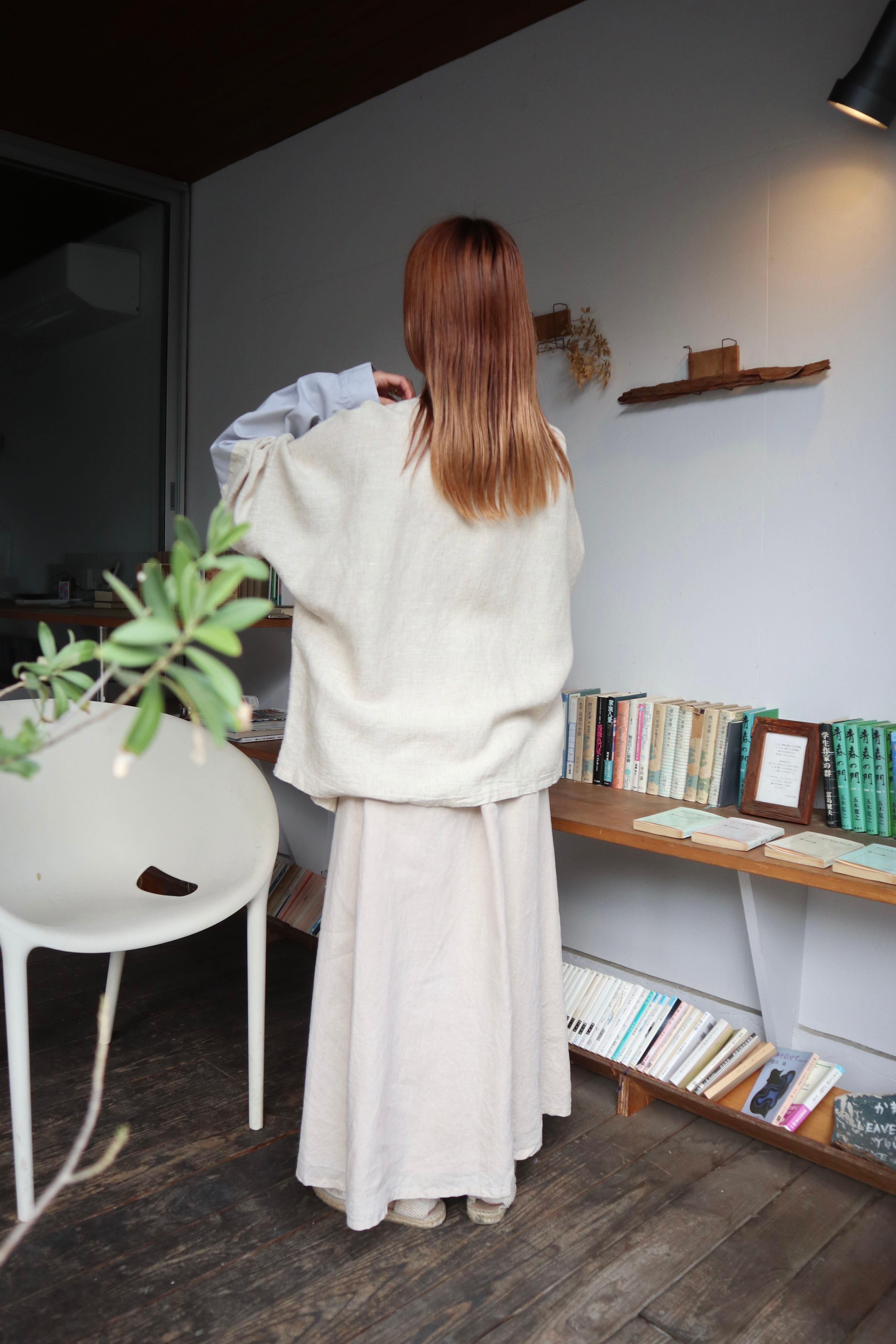 さらっとしたリネン生地でとても着やすく、綺麗なベージュカラーなので合わせやすいジャケットです。