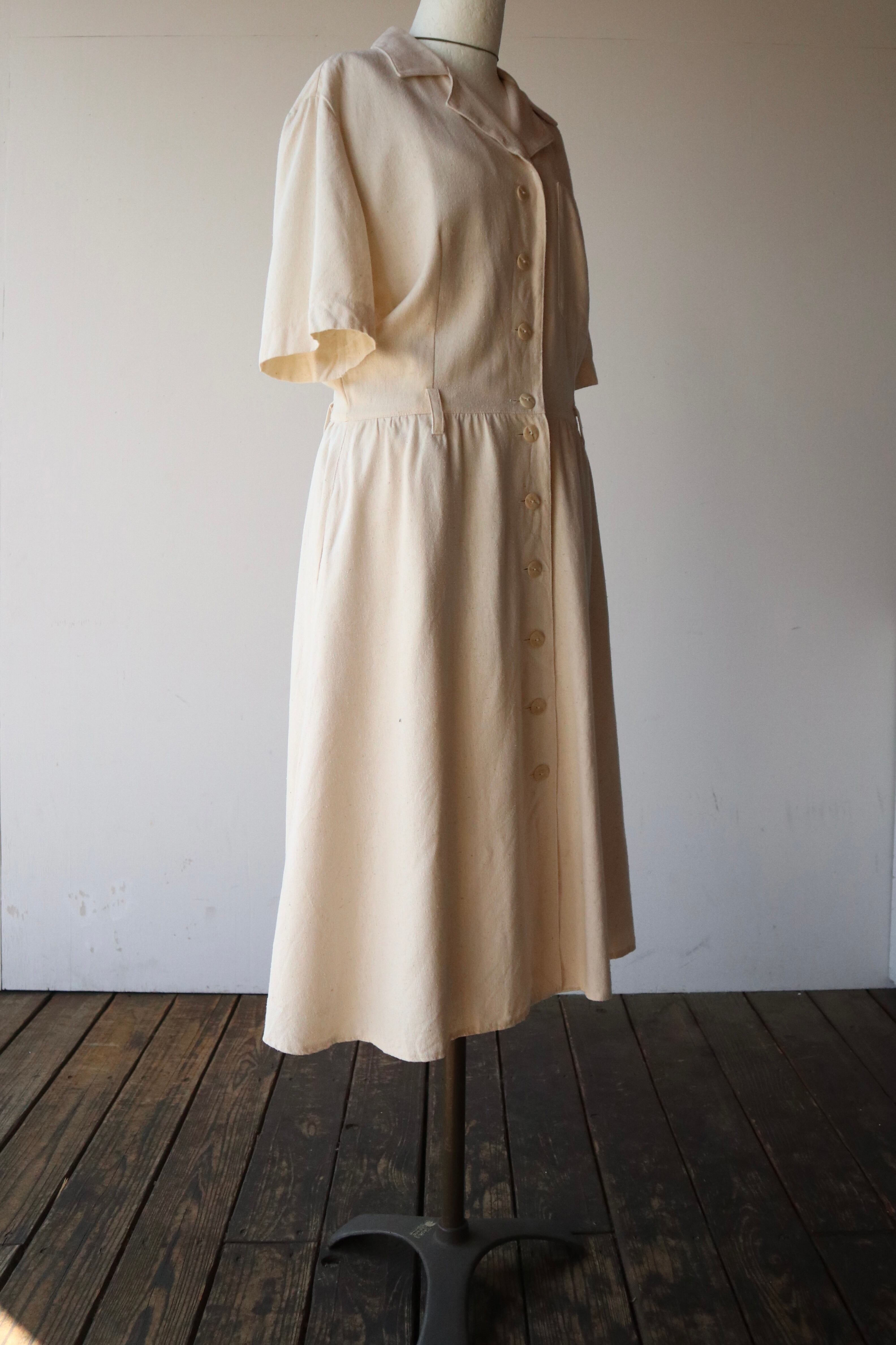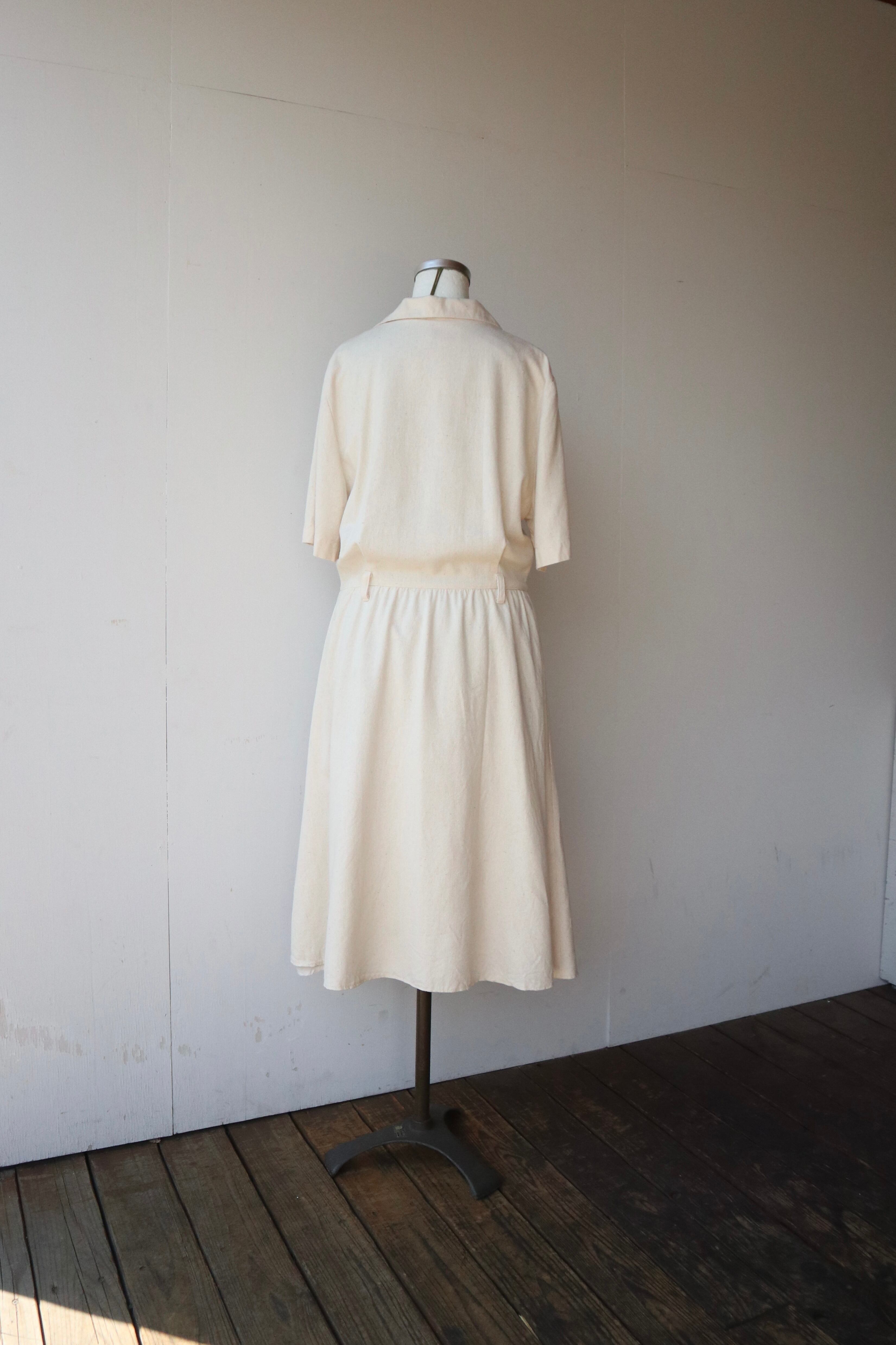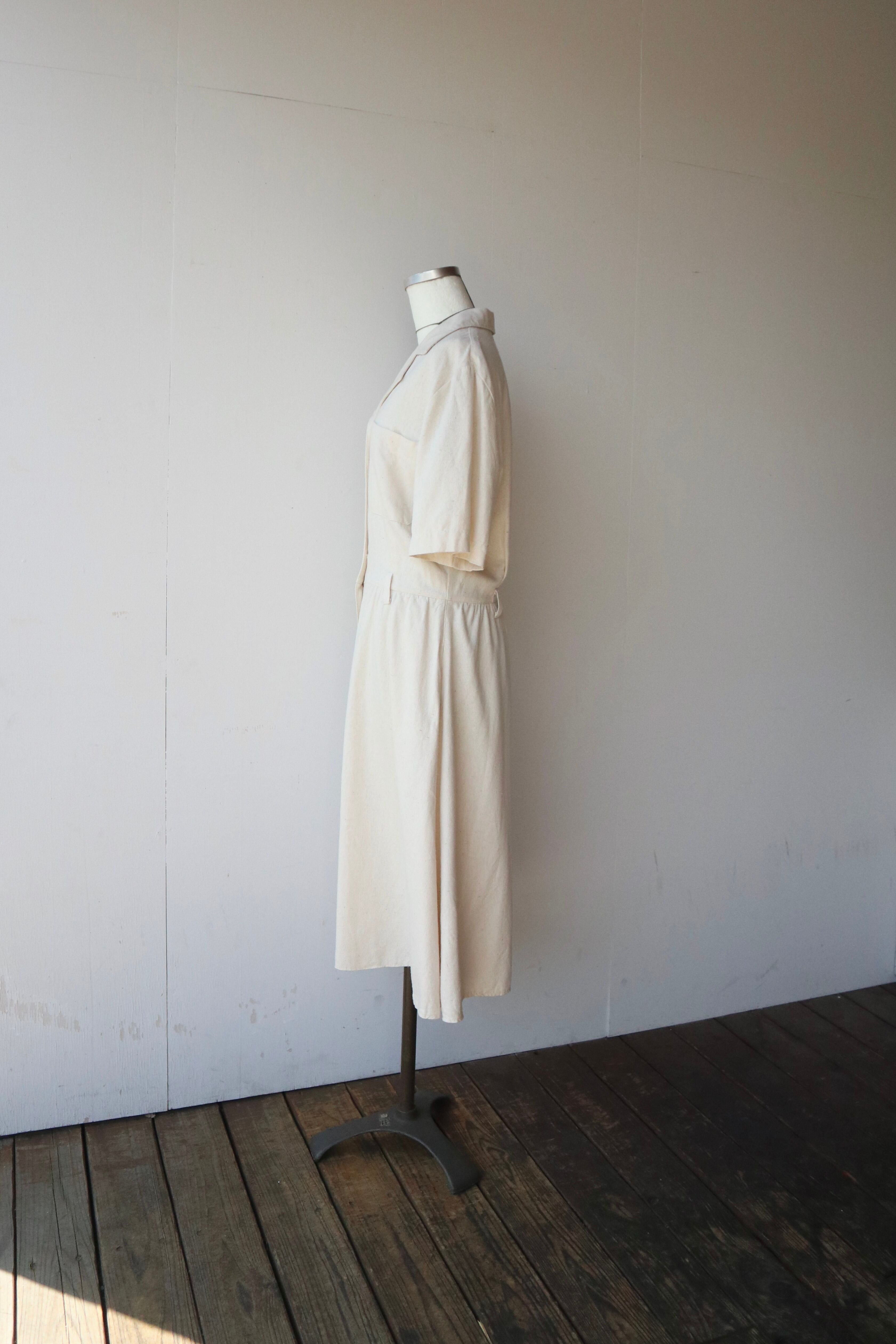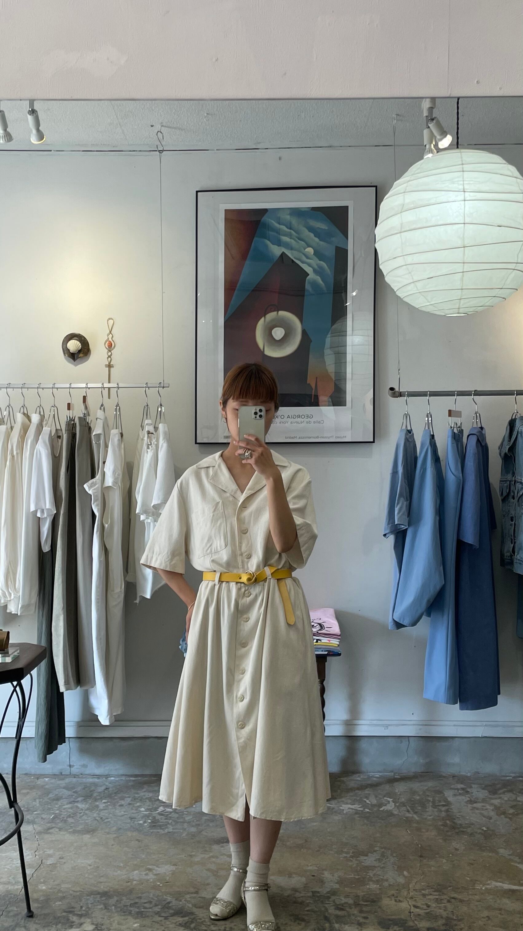 ウエストからふわっと広がるシルエットでベルトループがあり、お好みでウエストマークをして着用して頂いても◎