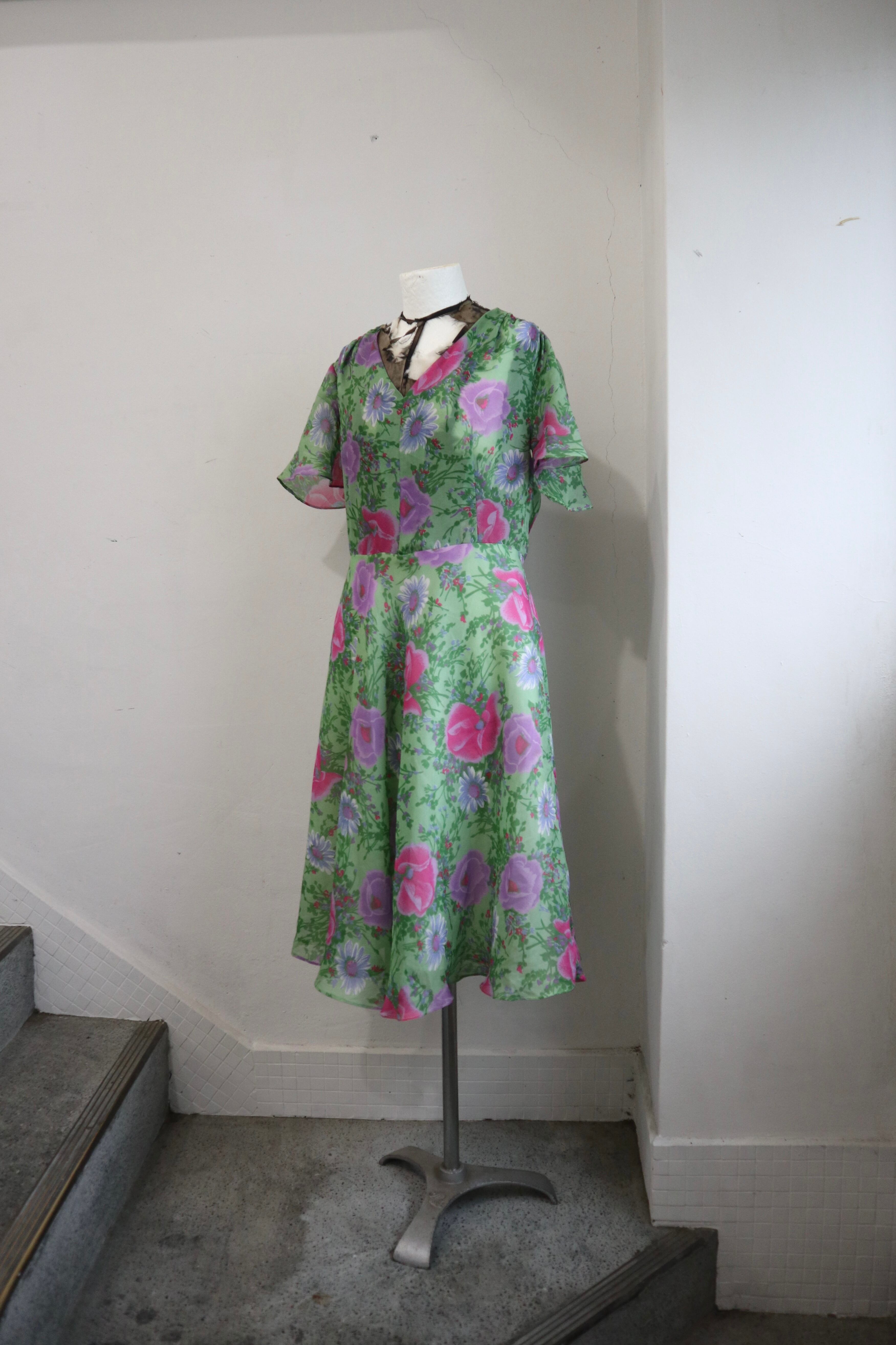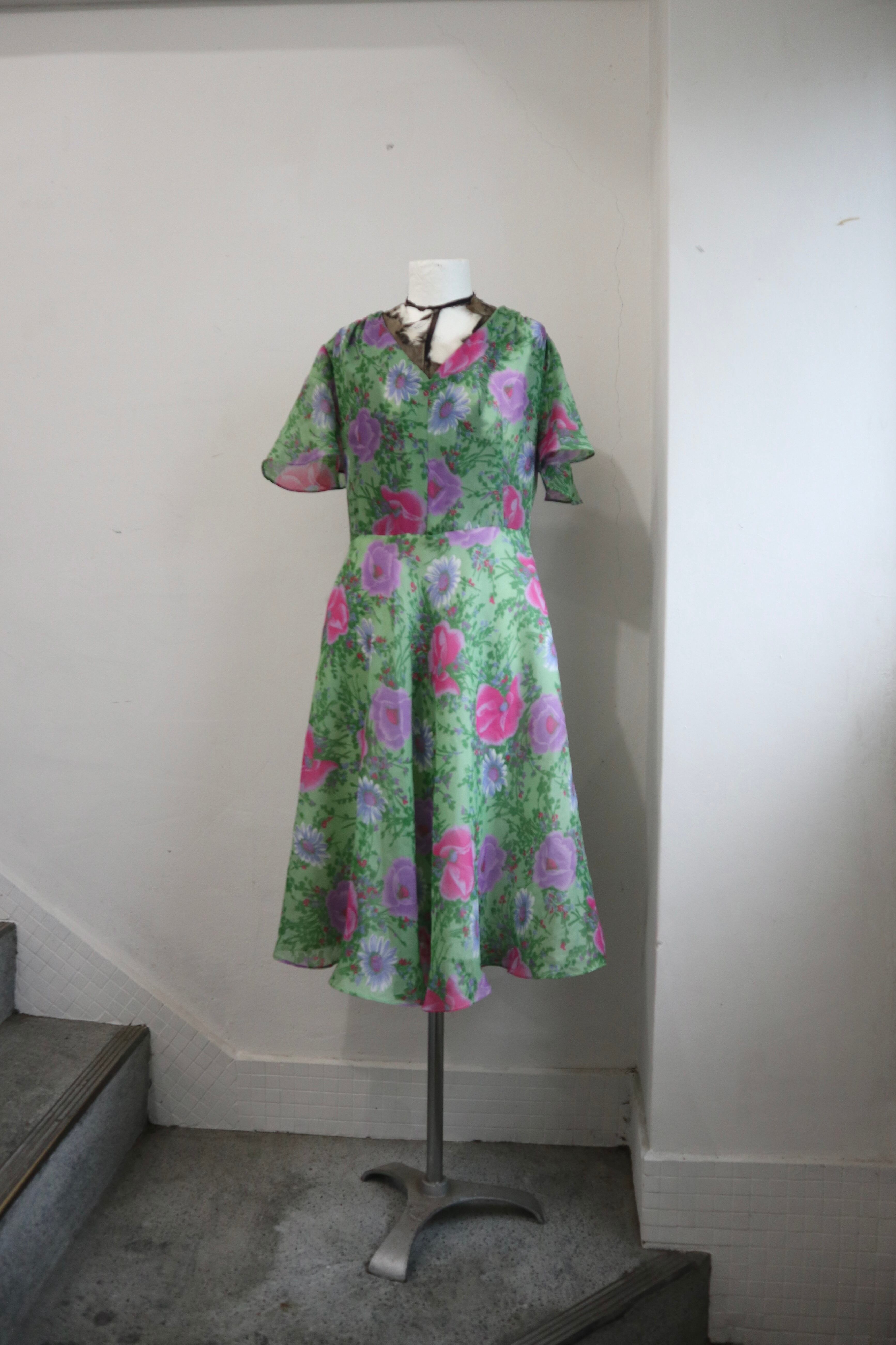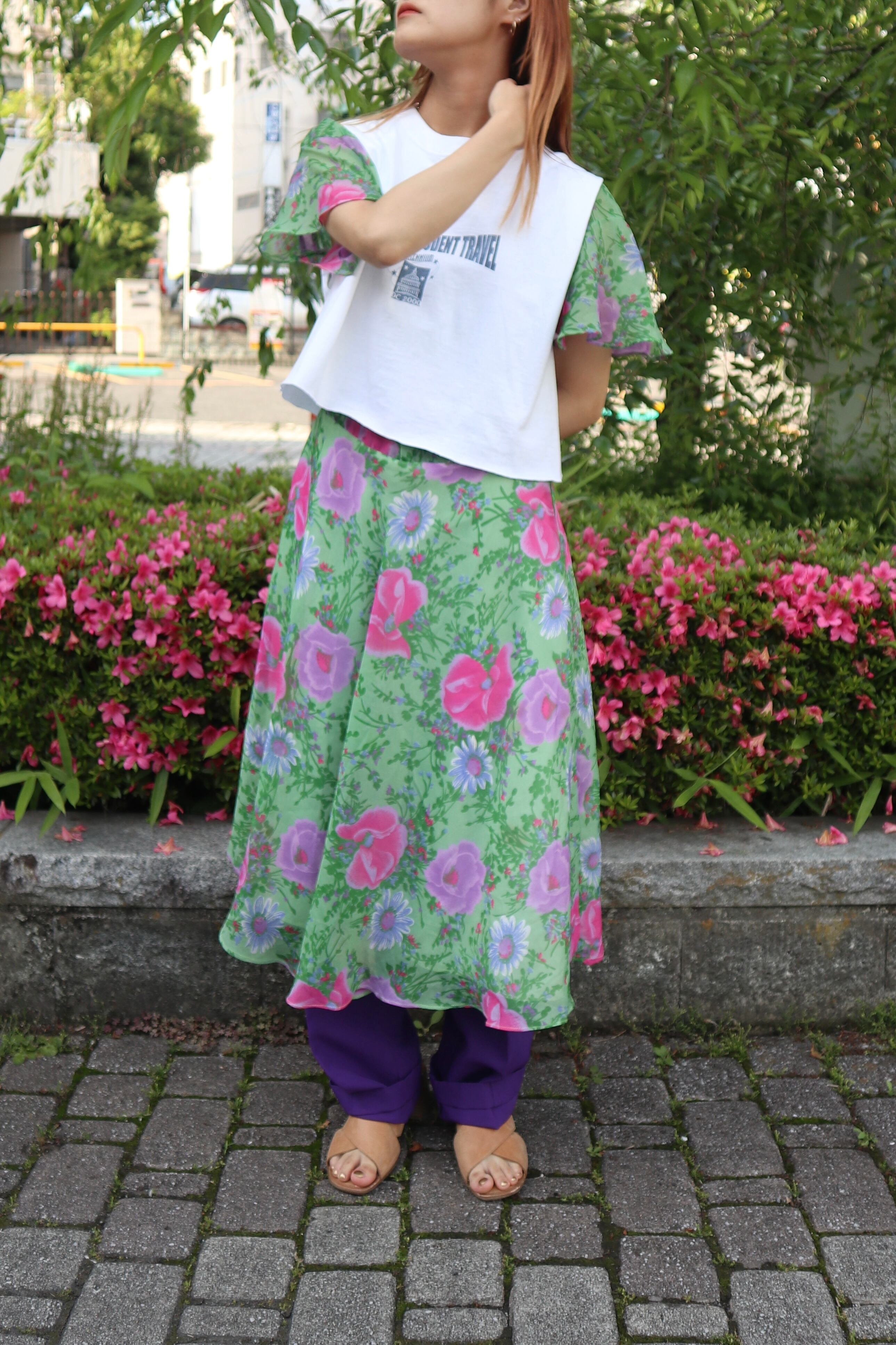 袖とスカート部分がフレアなシルエットが軽やかで涼しく着用して頂けます◎