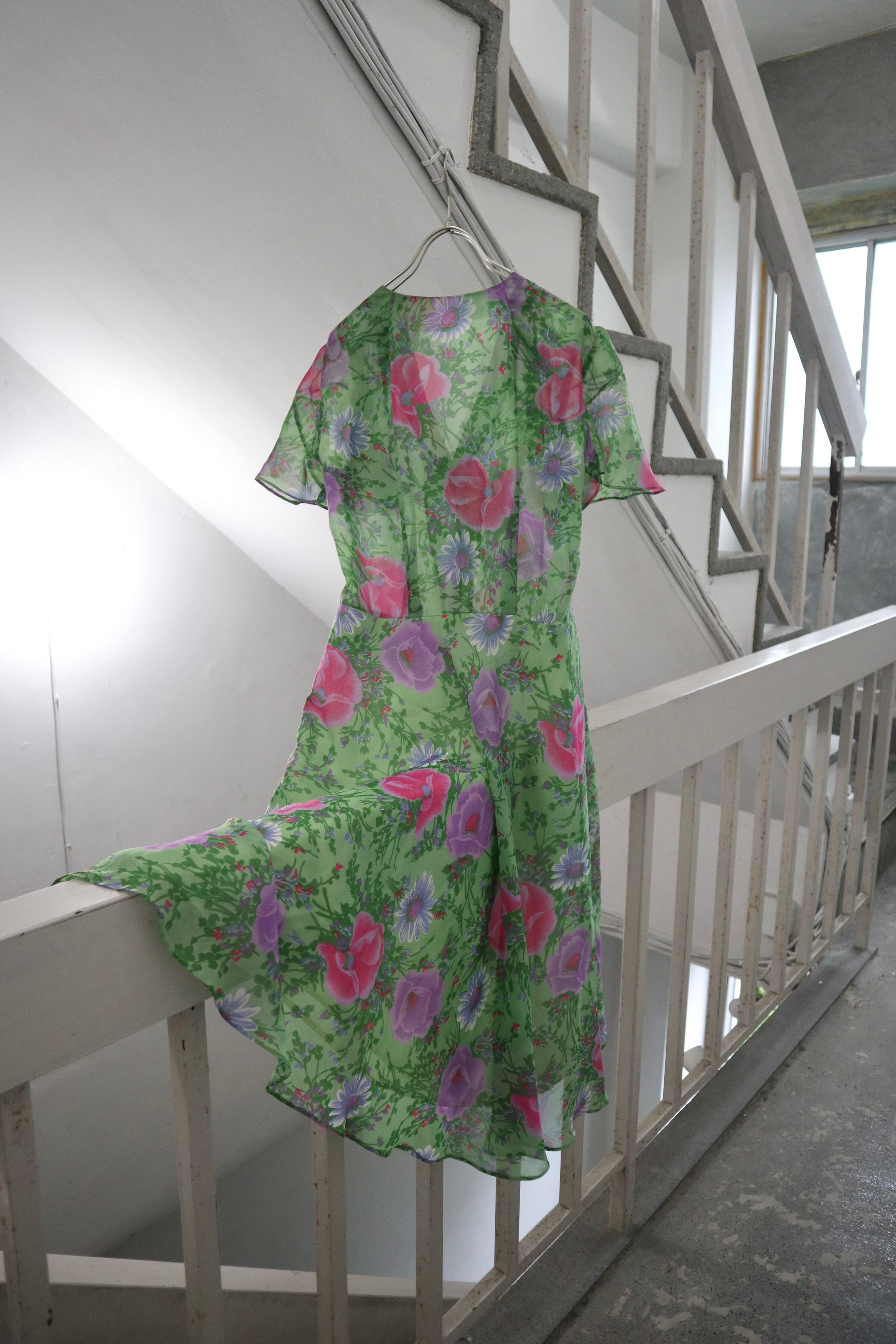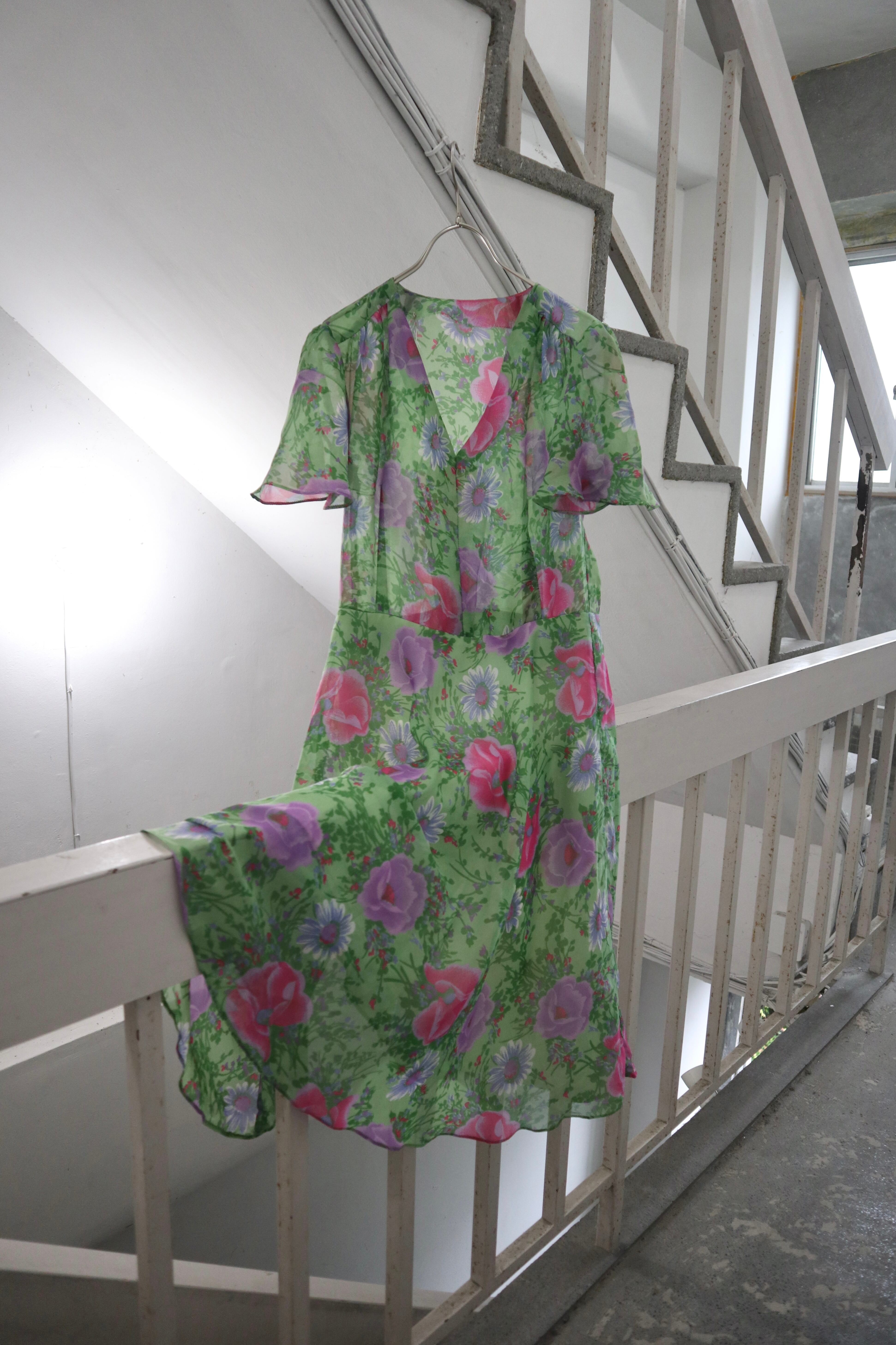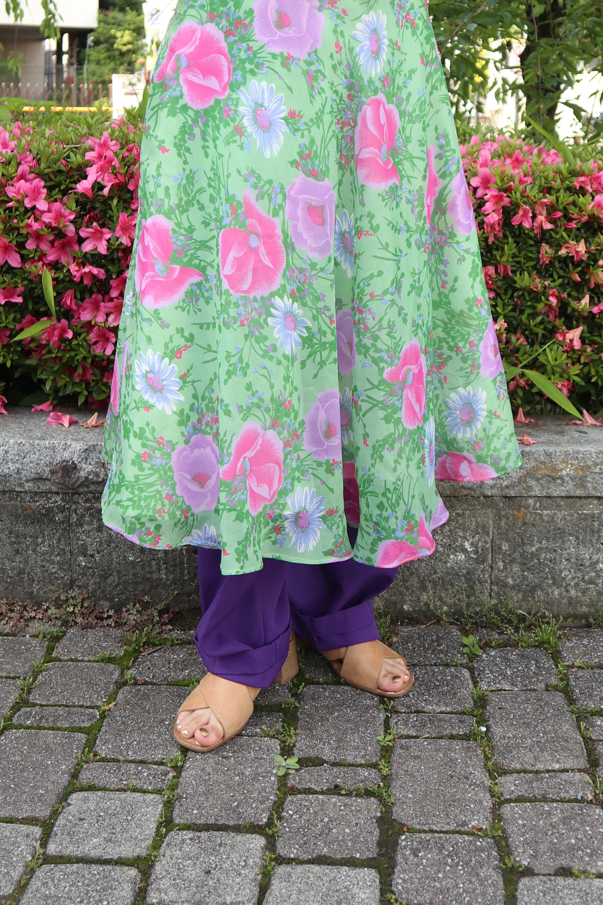 袖とスカート部分がフレアなシルエットが軽やかで涼しく着用して頂けます◎