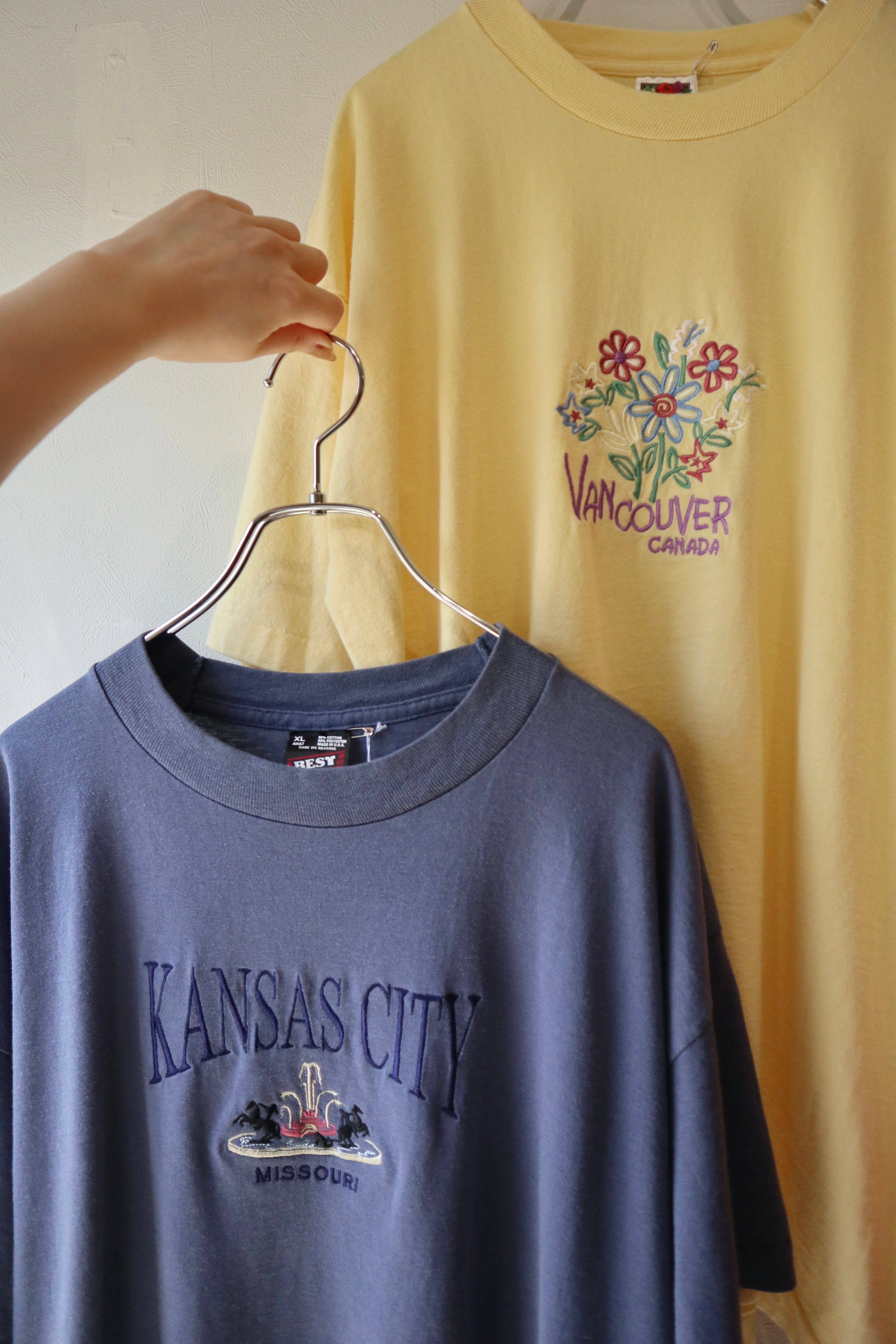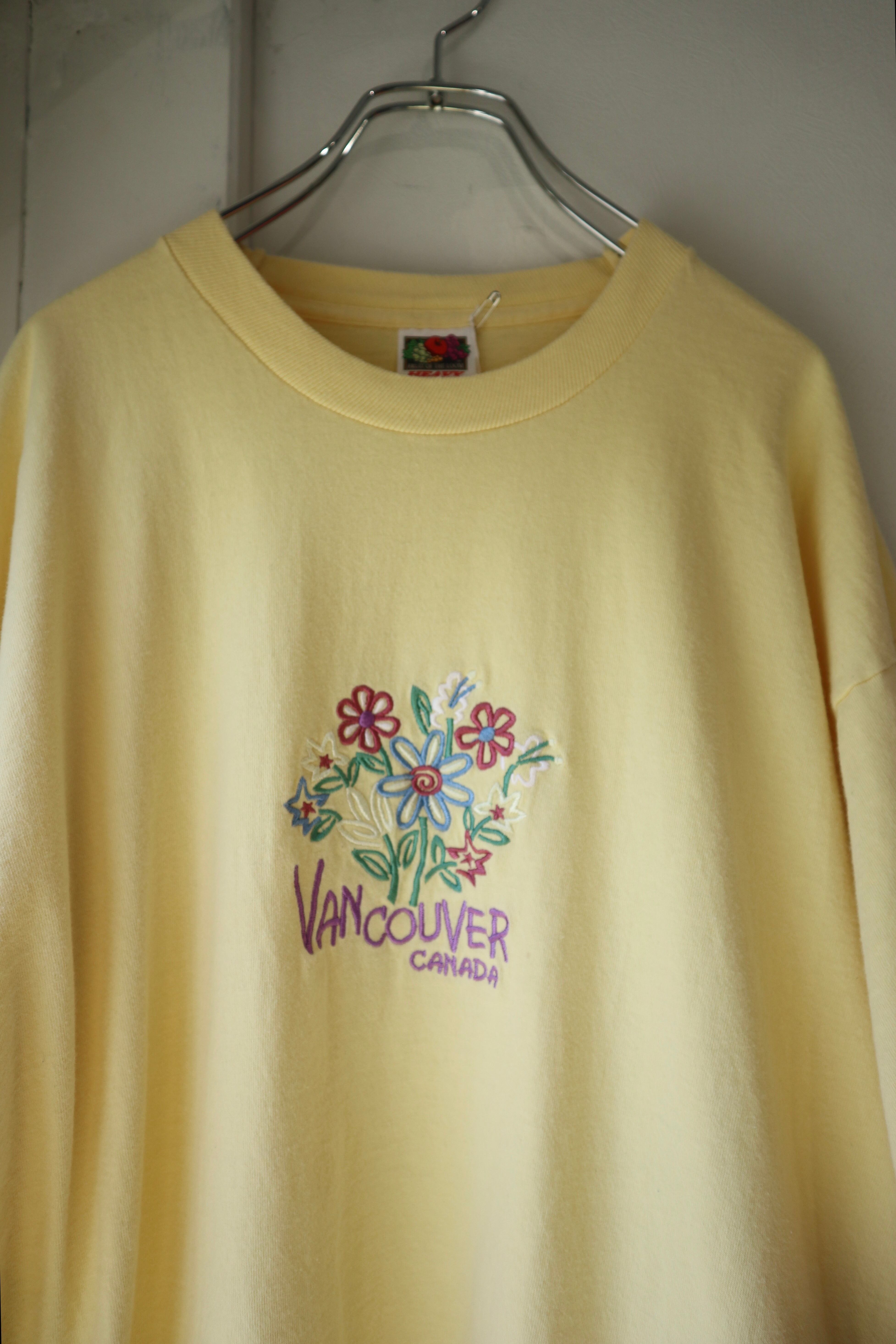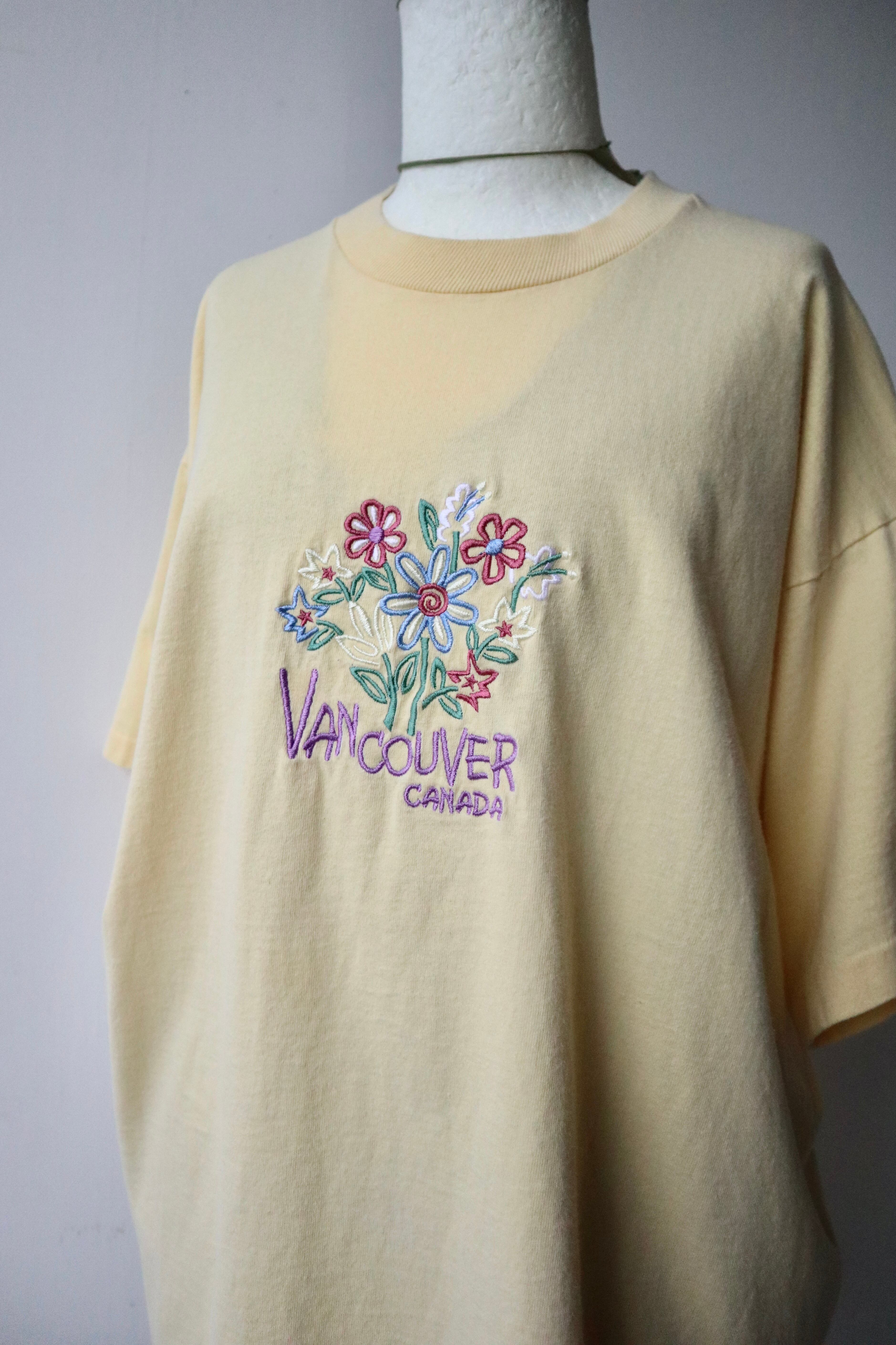 細かな花柄刺繍と淡いカラーが可愛らしいTシャツ