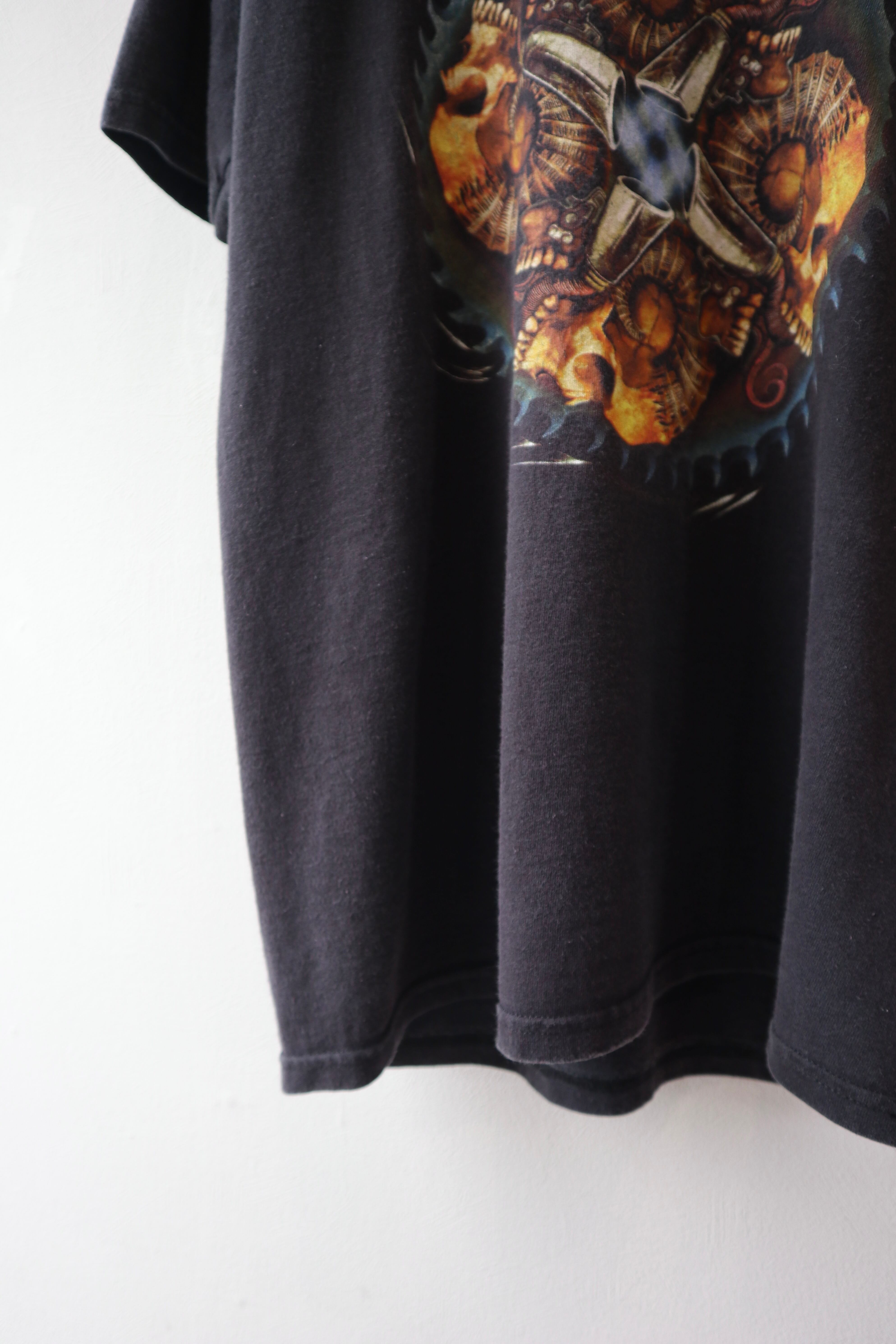 バンドTシャツならではのハードなプリントがアクセントに◎