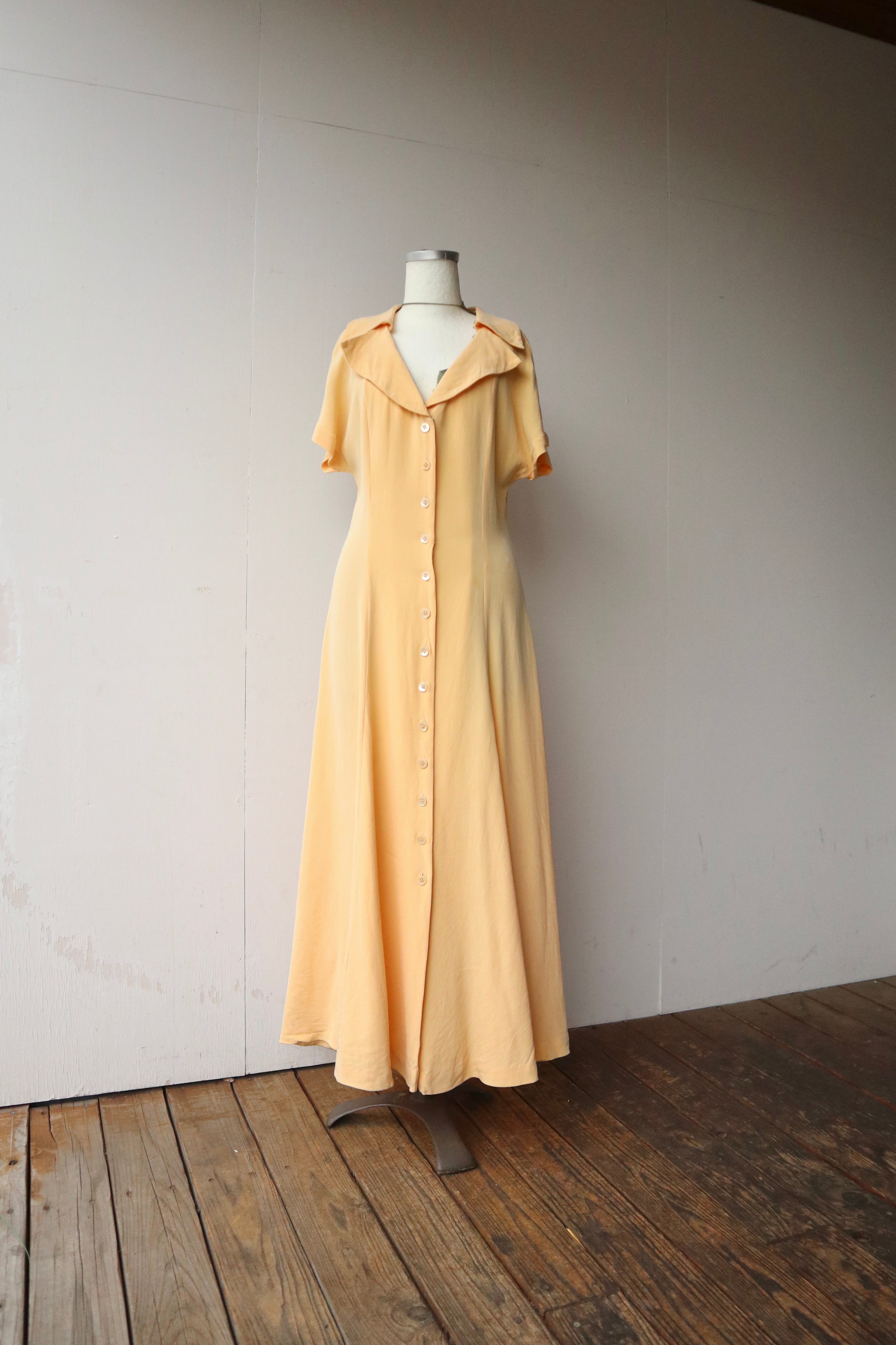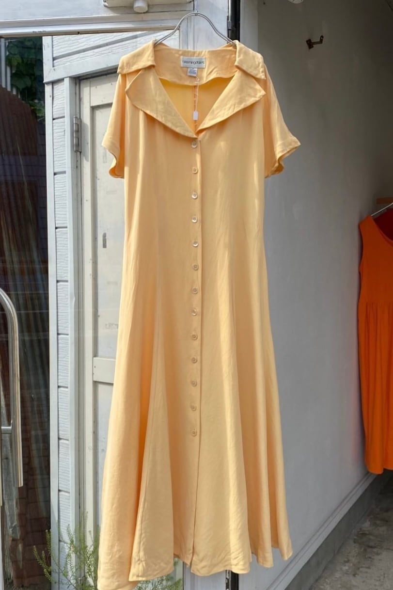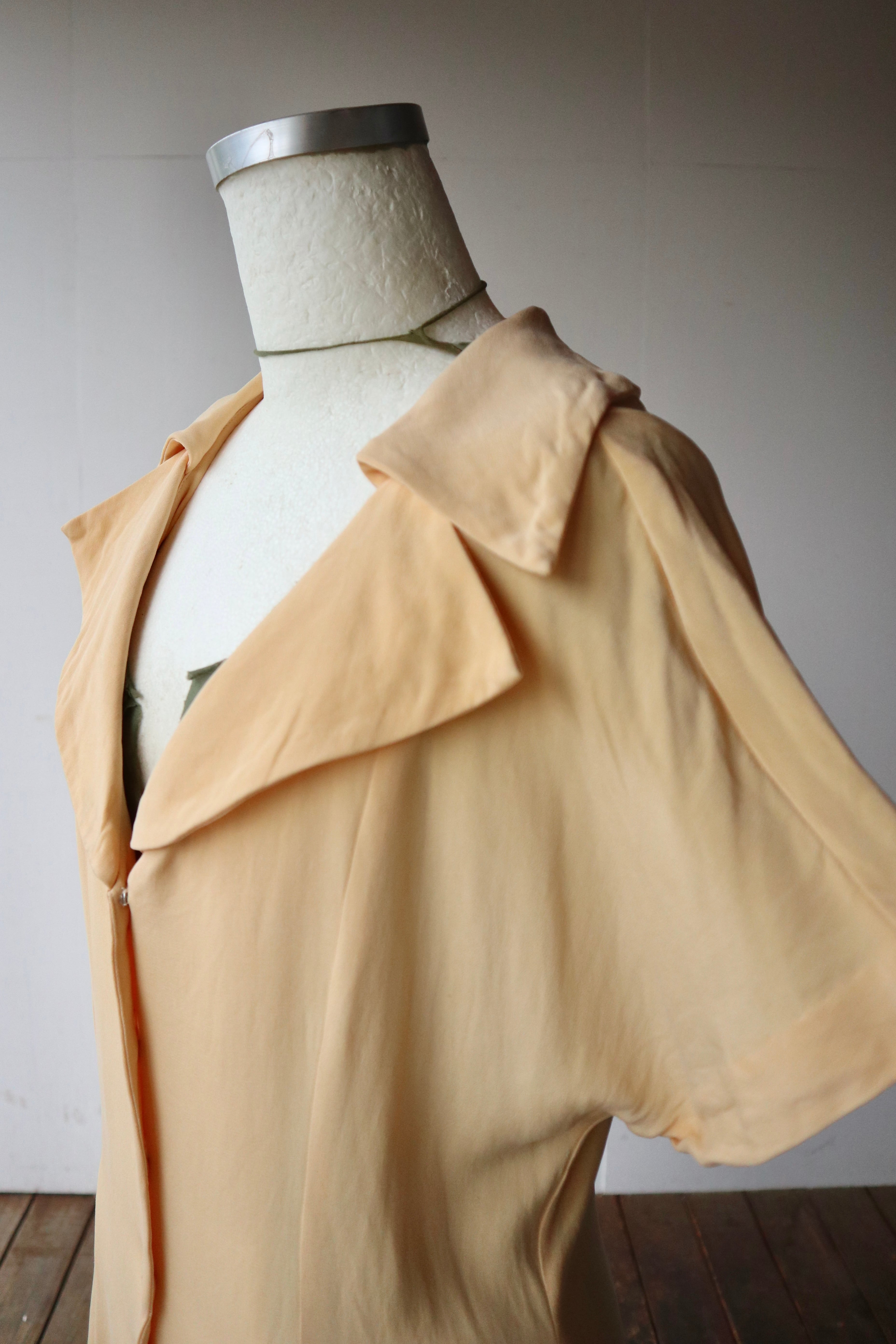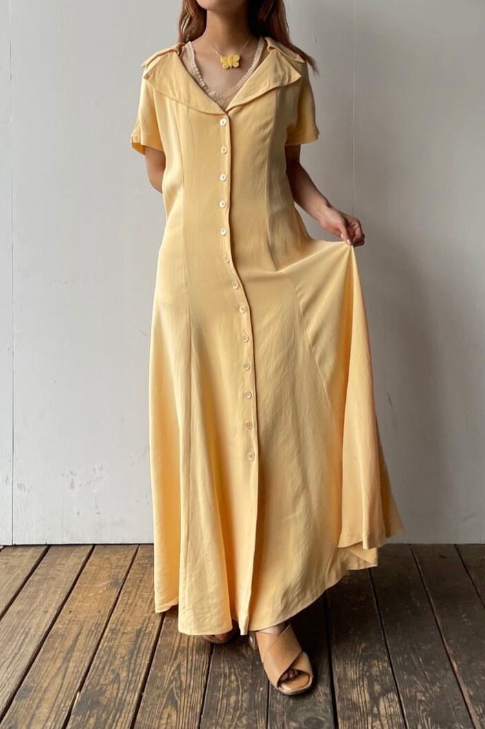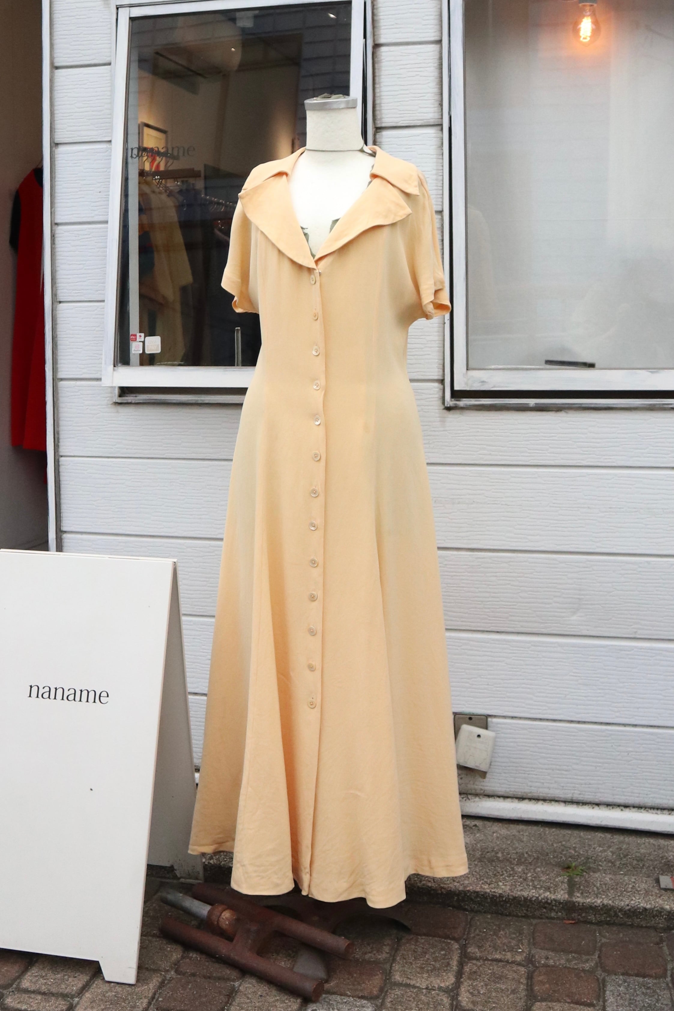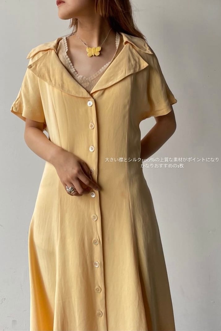 大きな襟や裾にかけて広がるシルエットがクラシカルでヴィンテージの風合いを楽しめます。