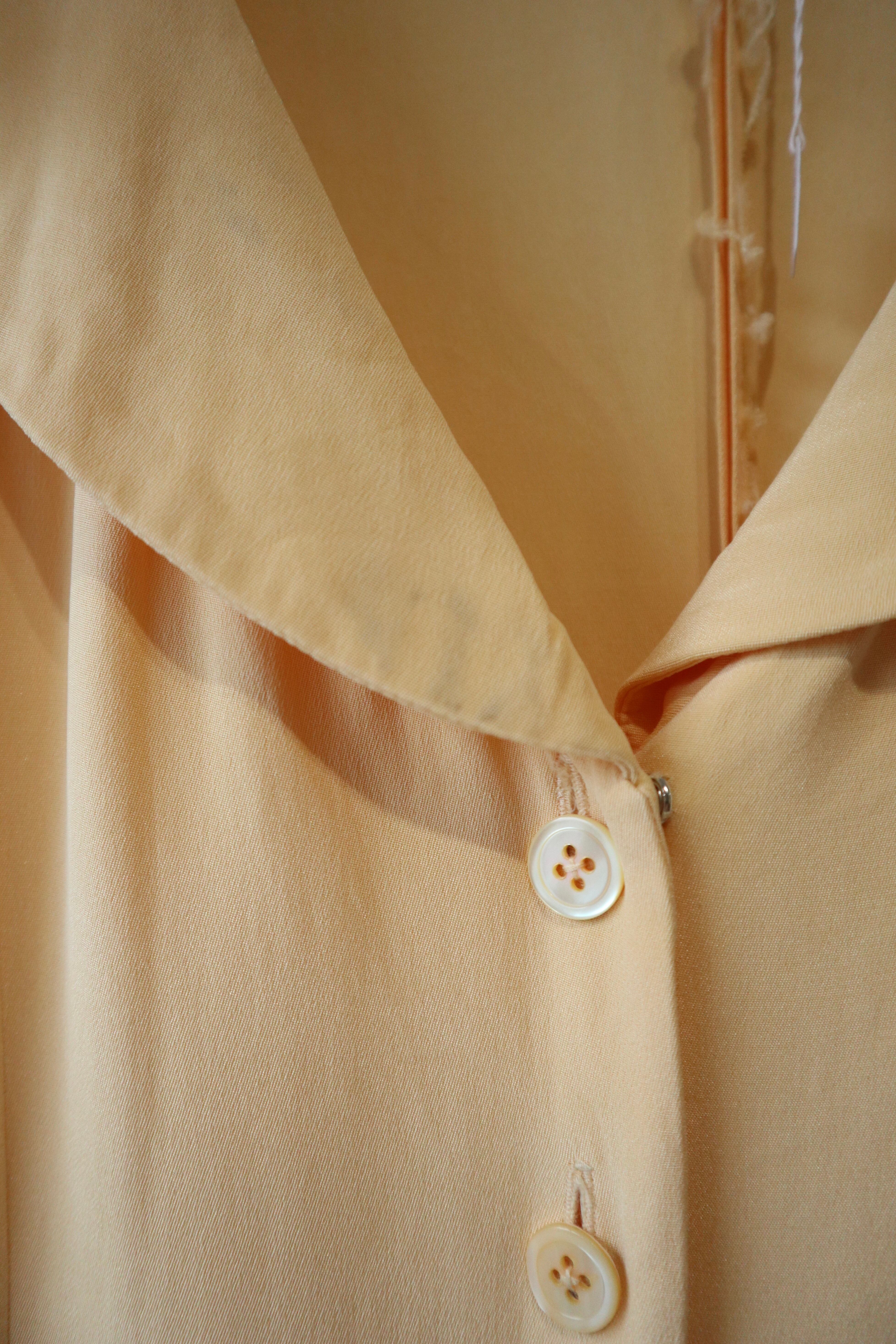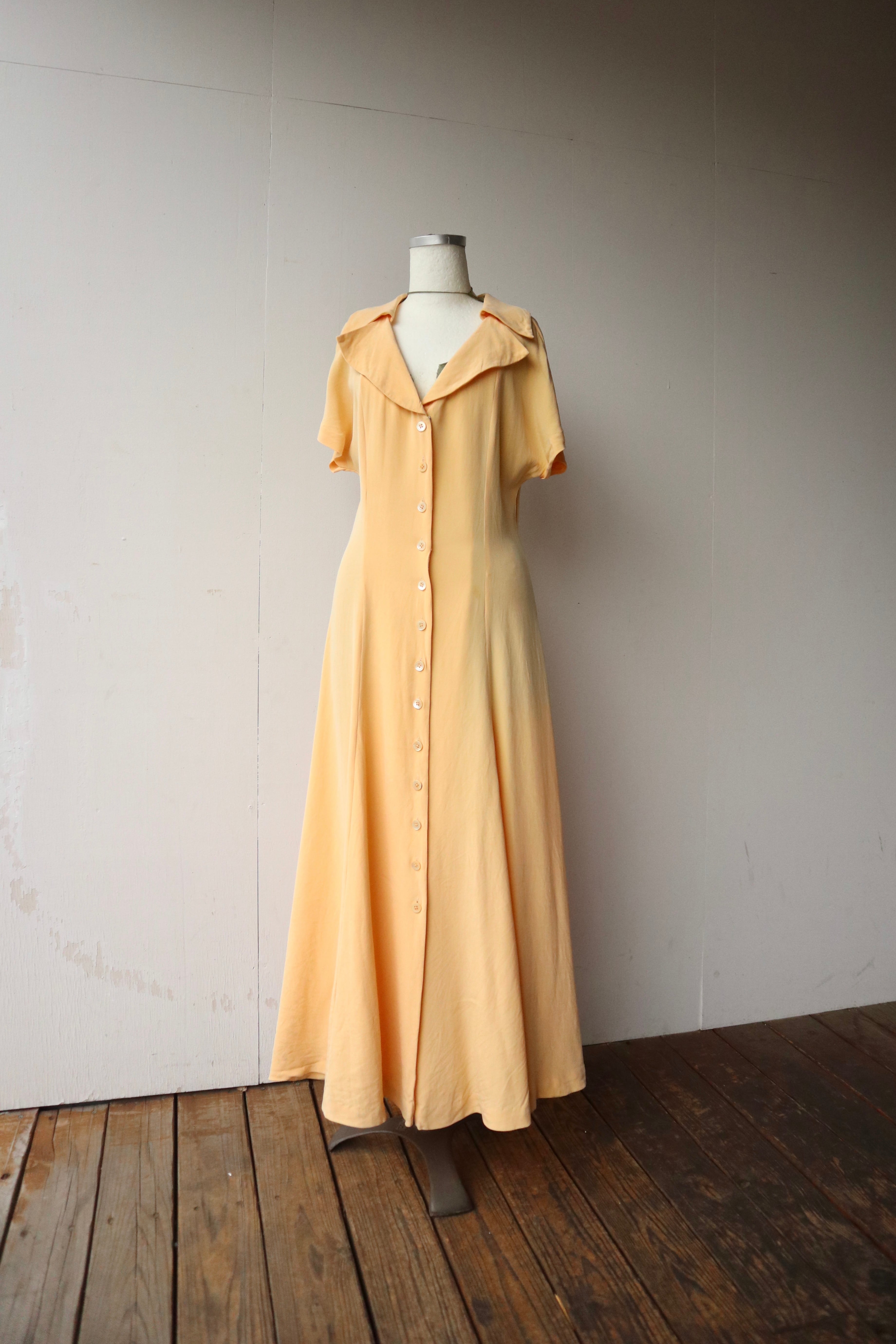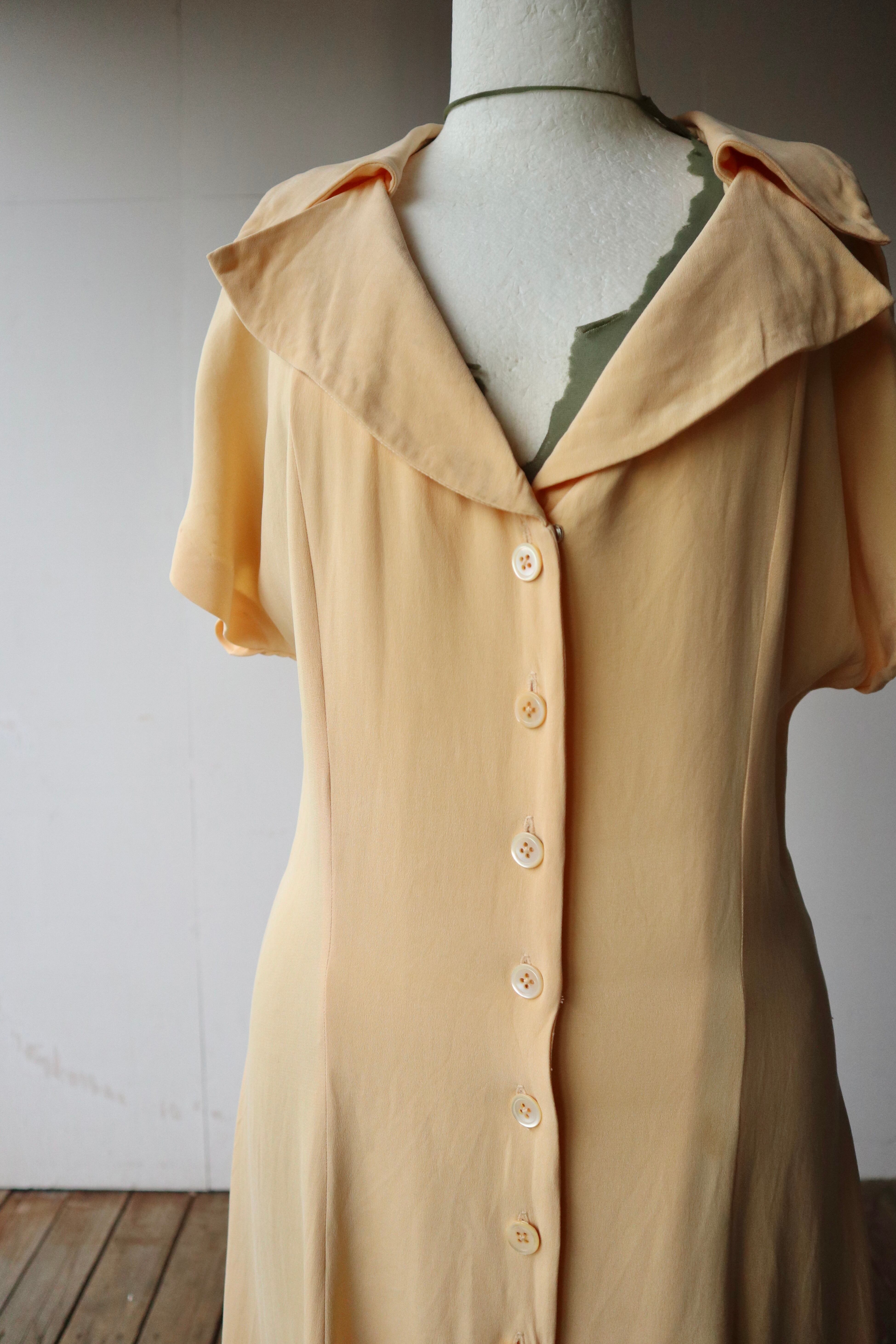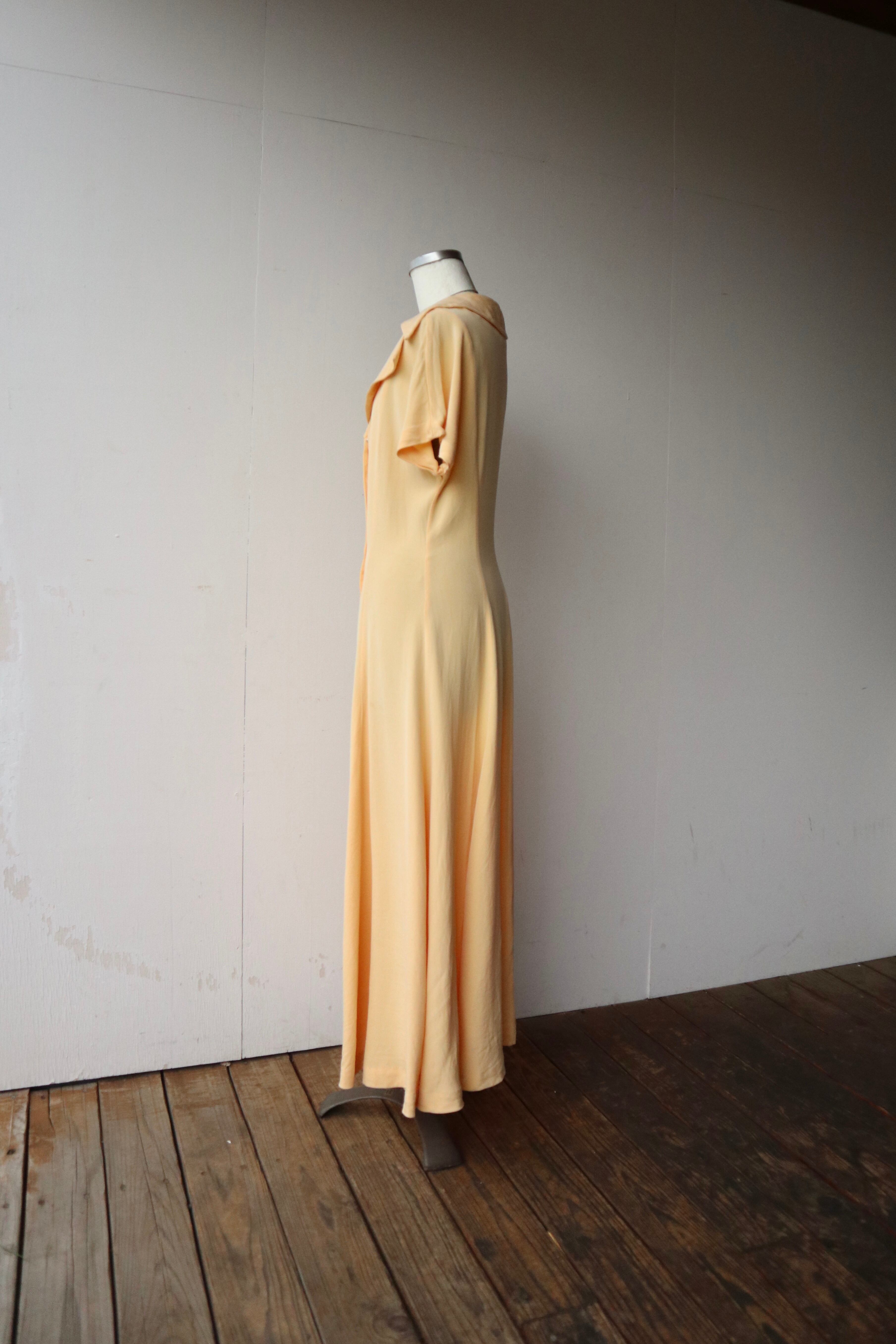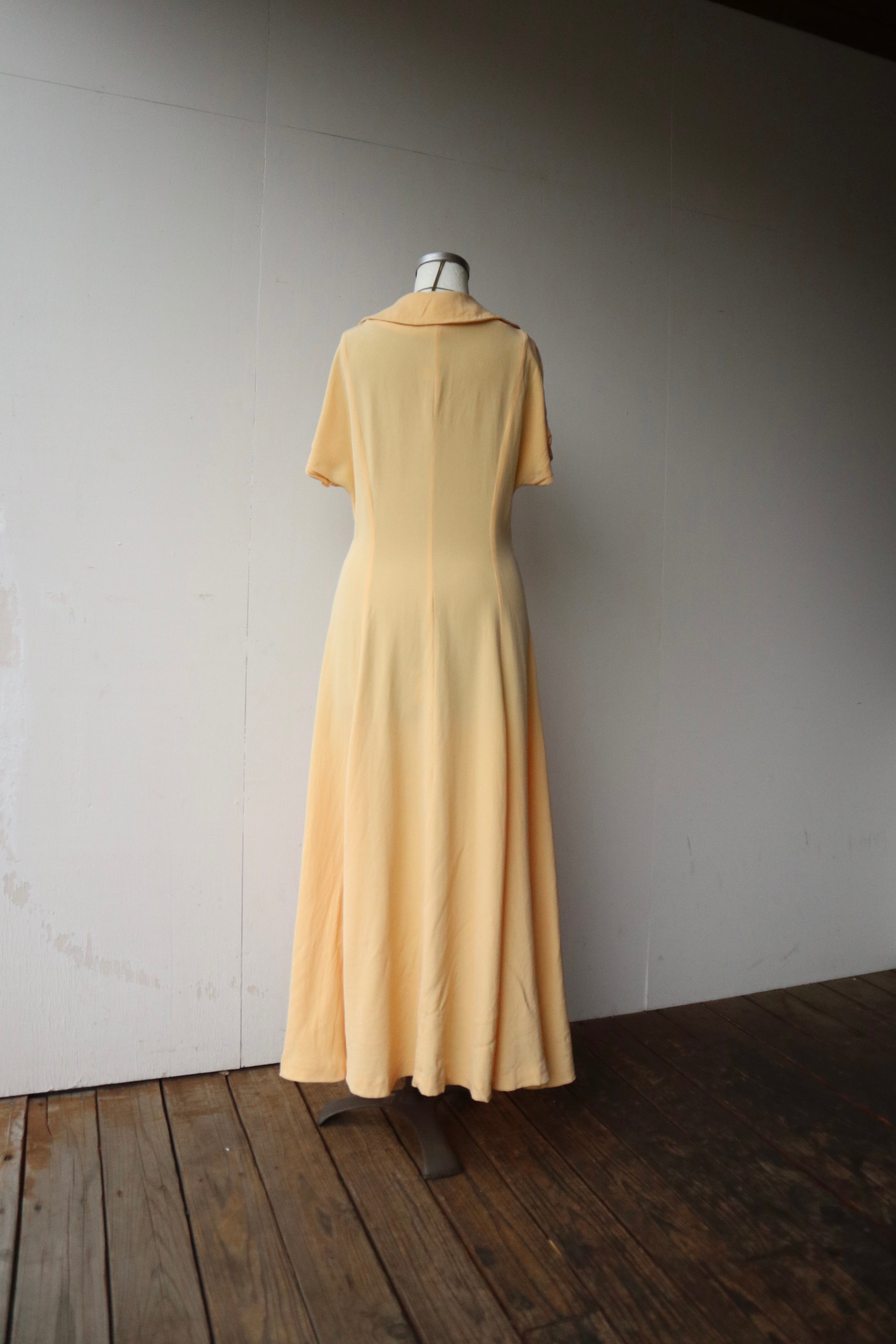 大きな襟や裾にかけて広がるシルエットがクラシカルでヴィンテージの風合いを楽しめます。