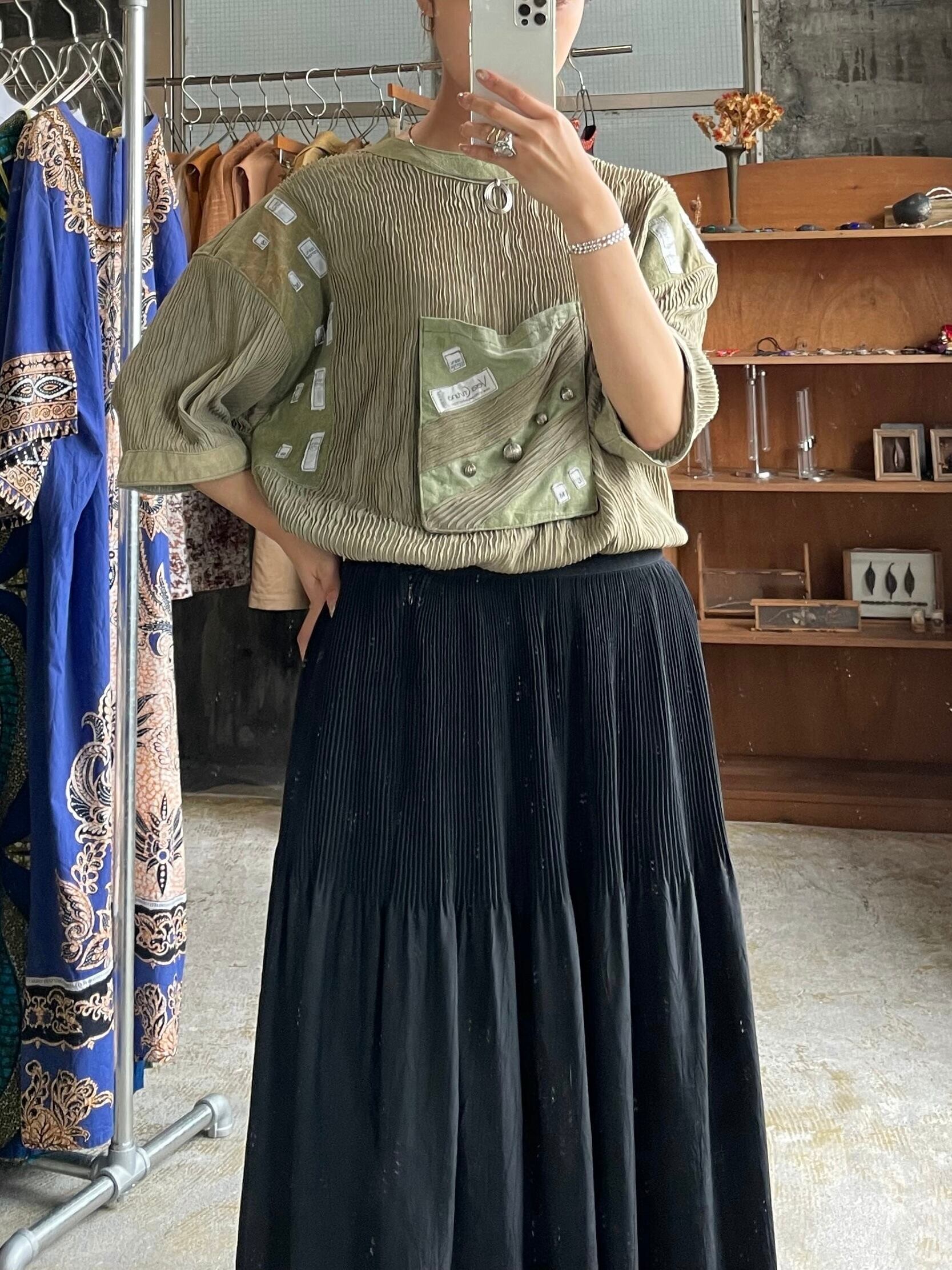コーディネートしやすいカーキカラーにワッシャー素材でトレンド感もあり着心地も良いです