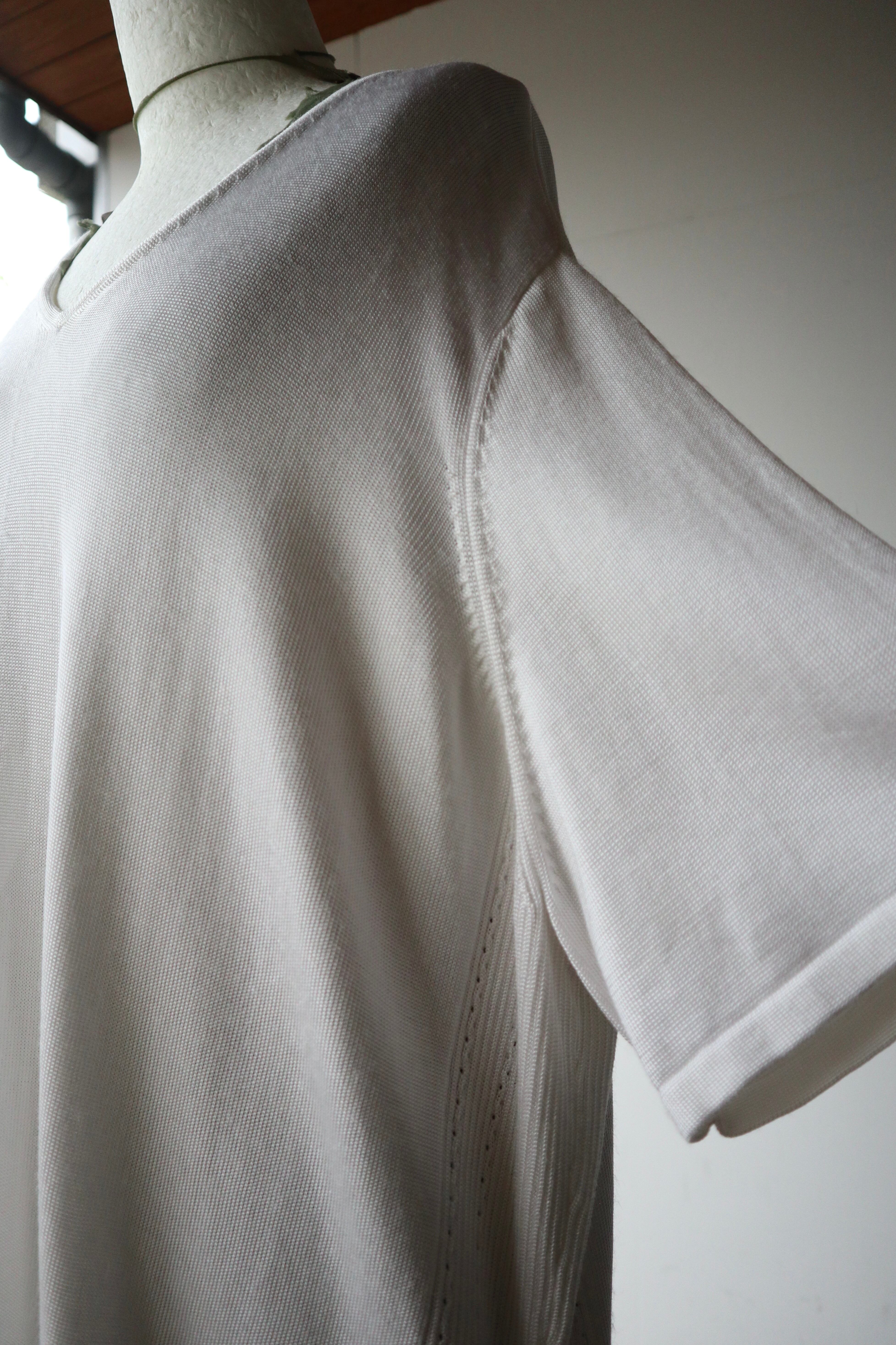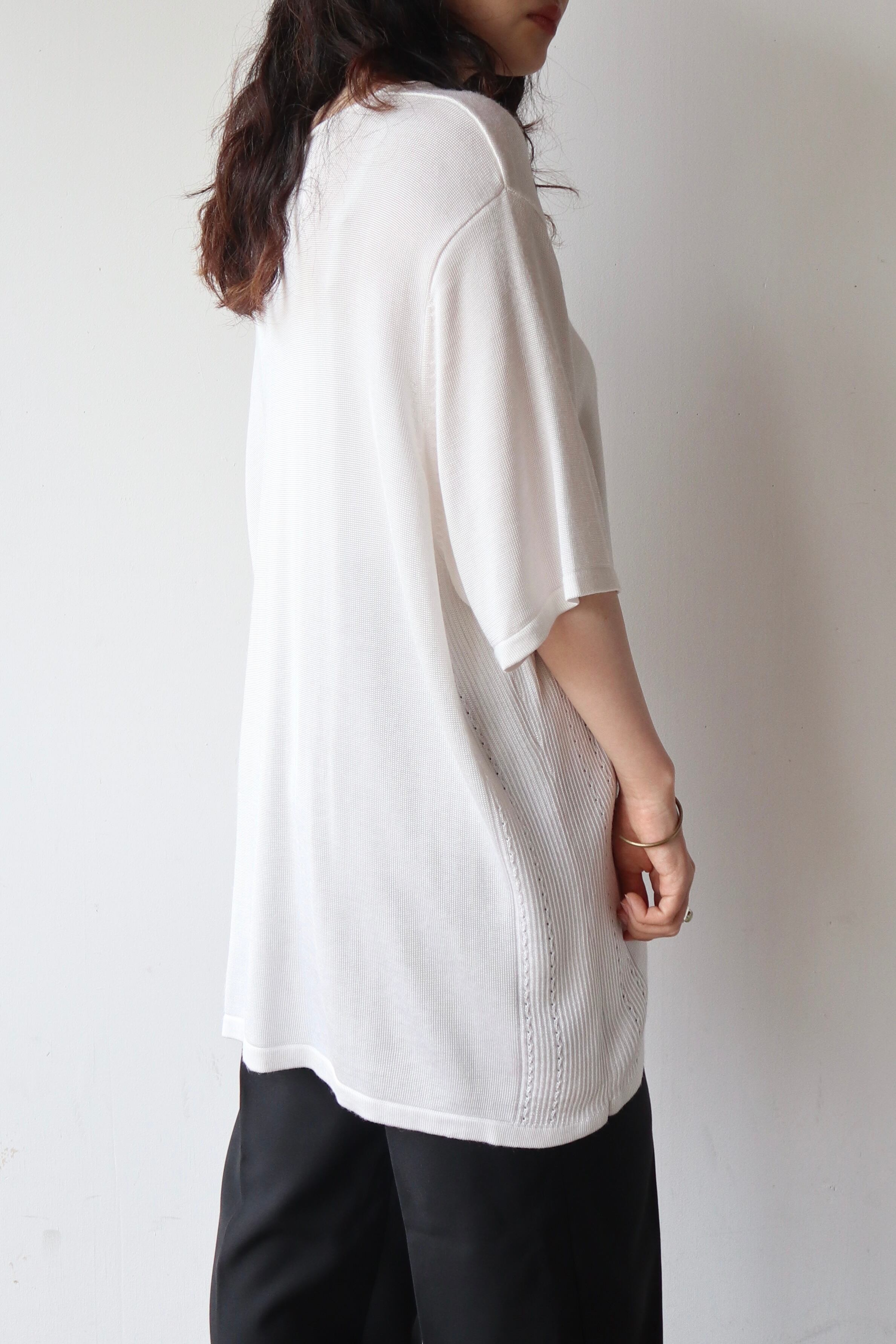 サイドの編み地が特徴的なデザインのニットTシャツ