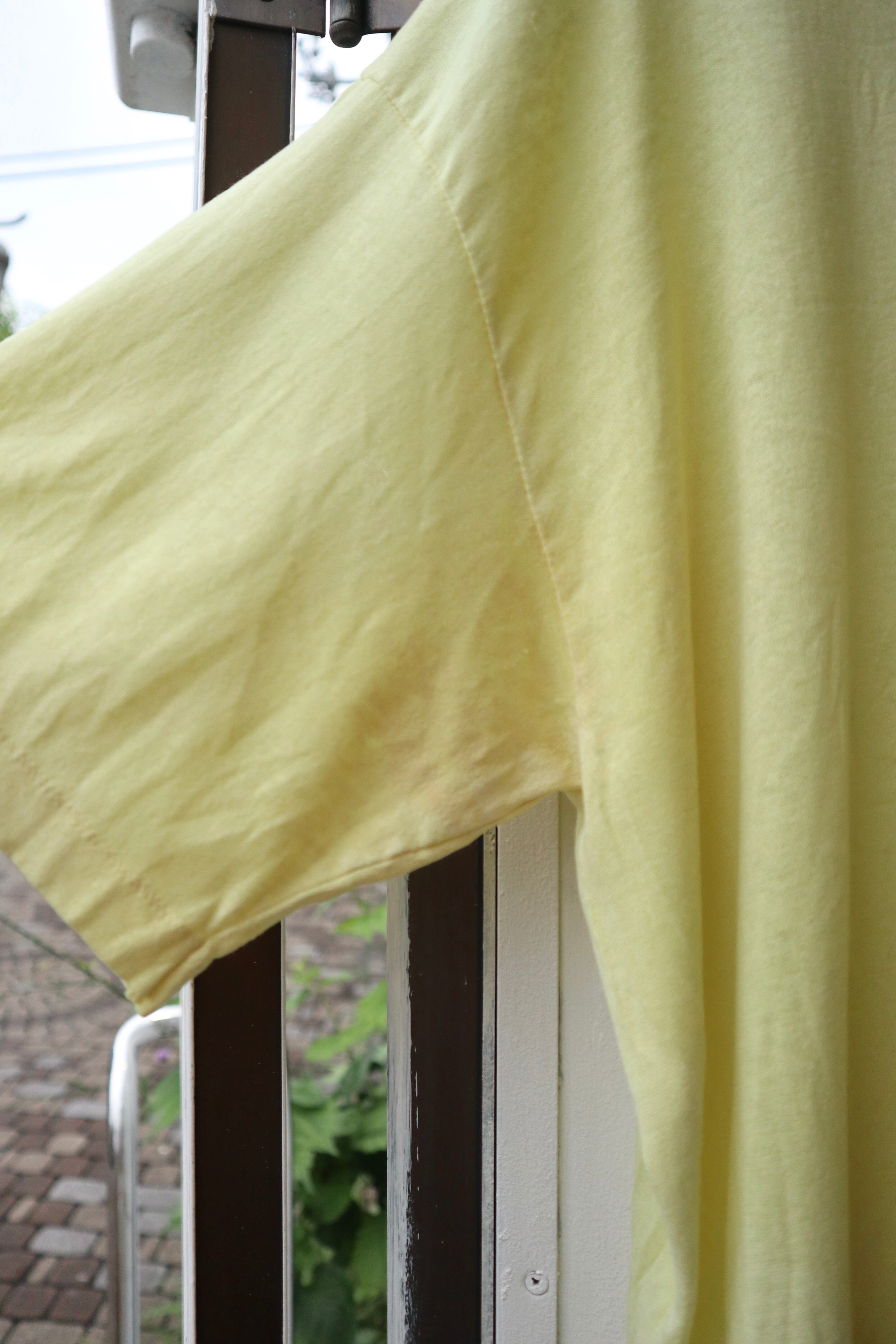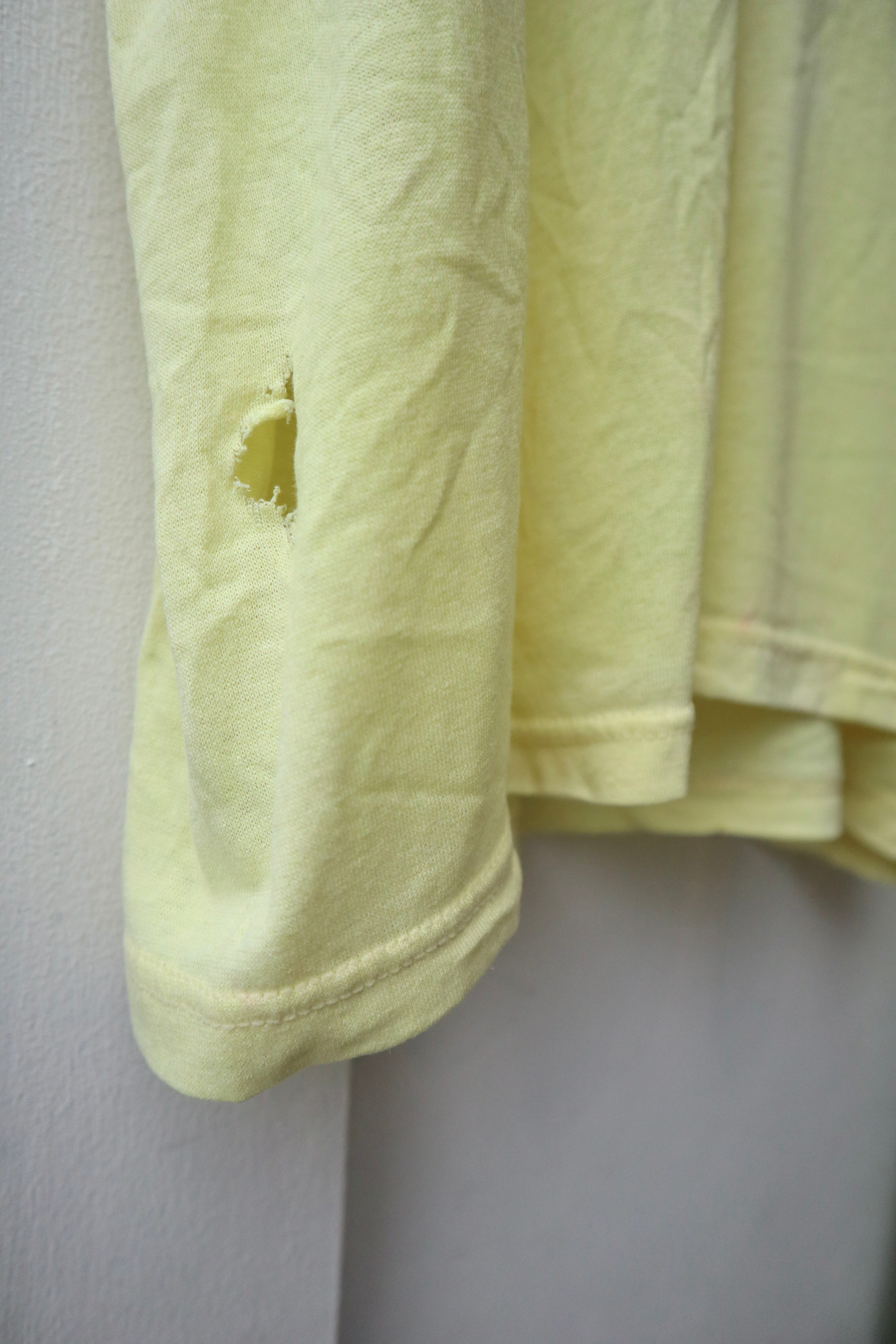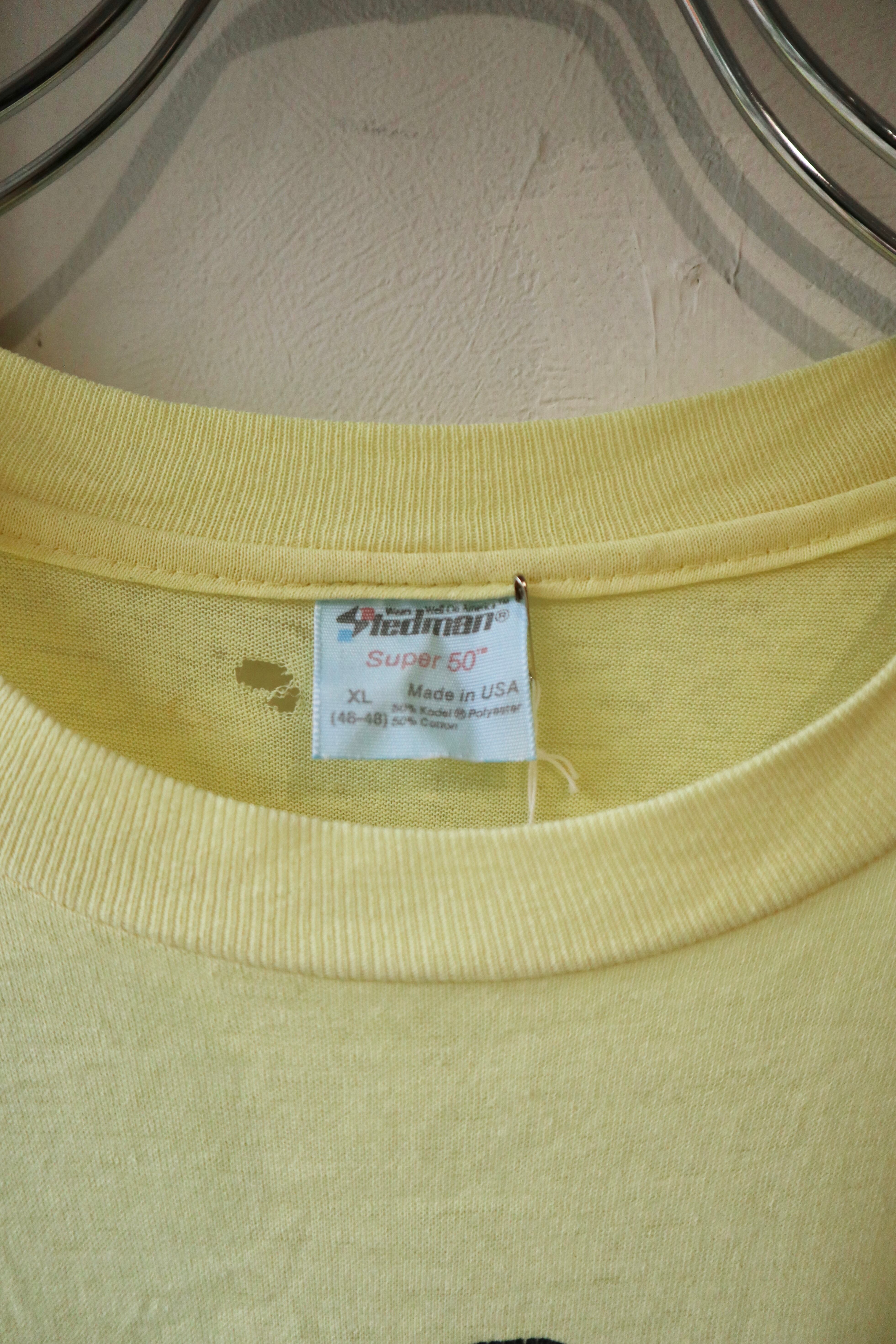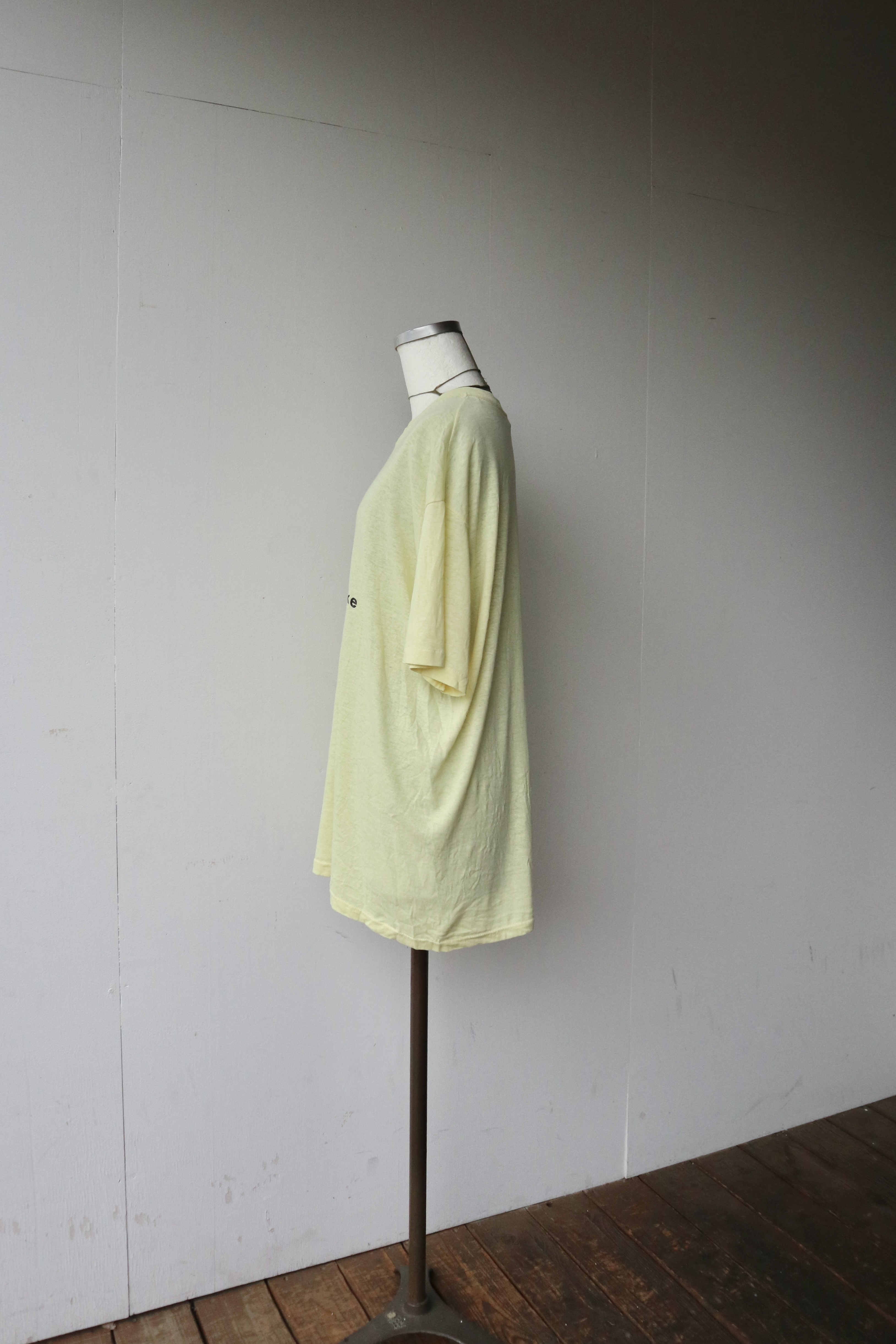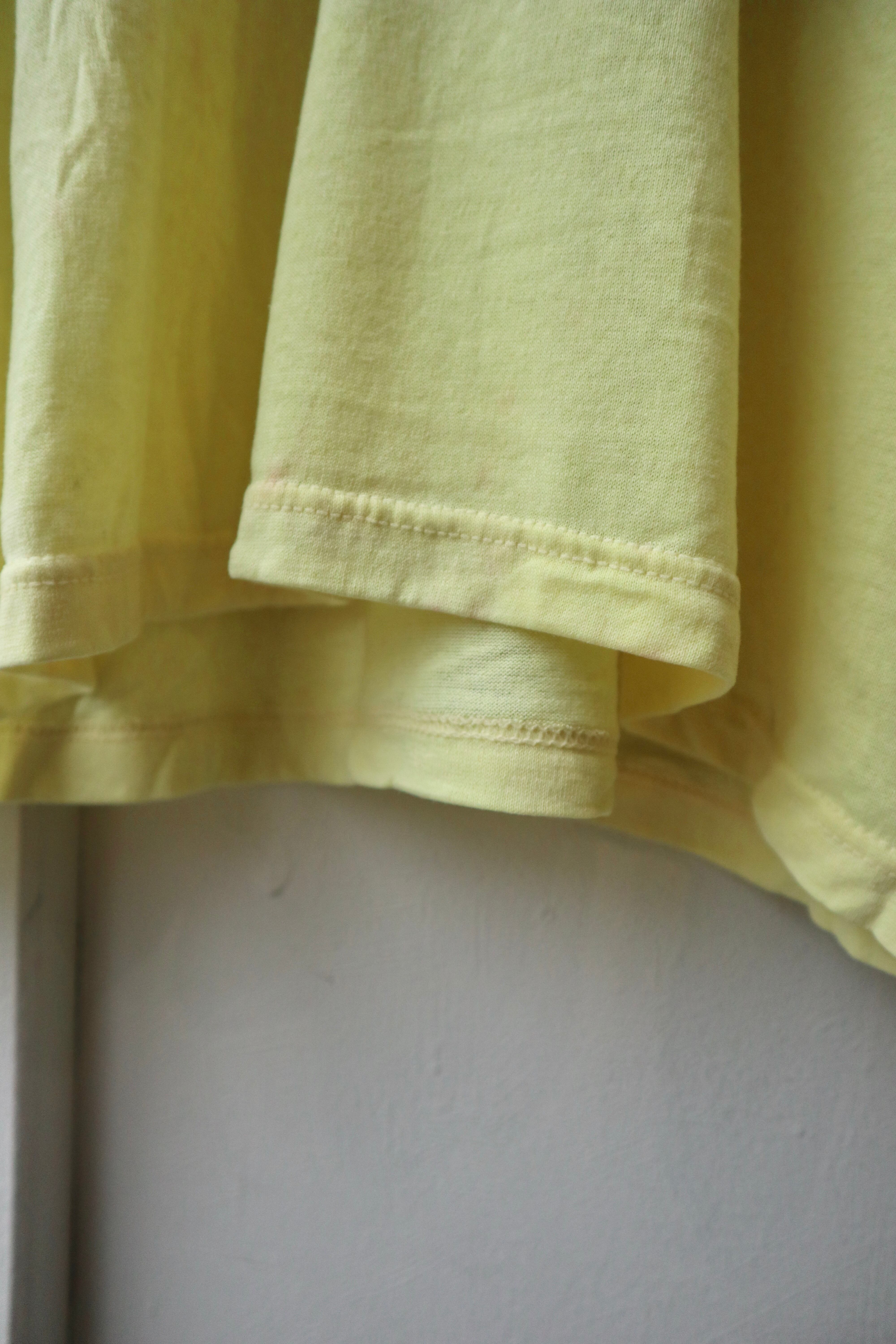 レモンイエローのボディと可愛らしいプリントが魅力的なTシャツ