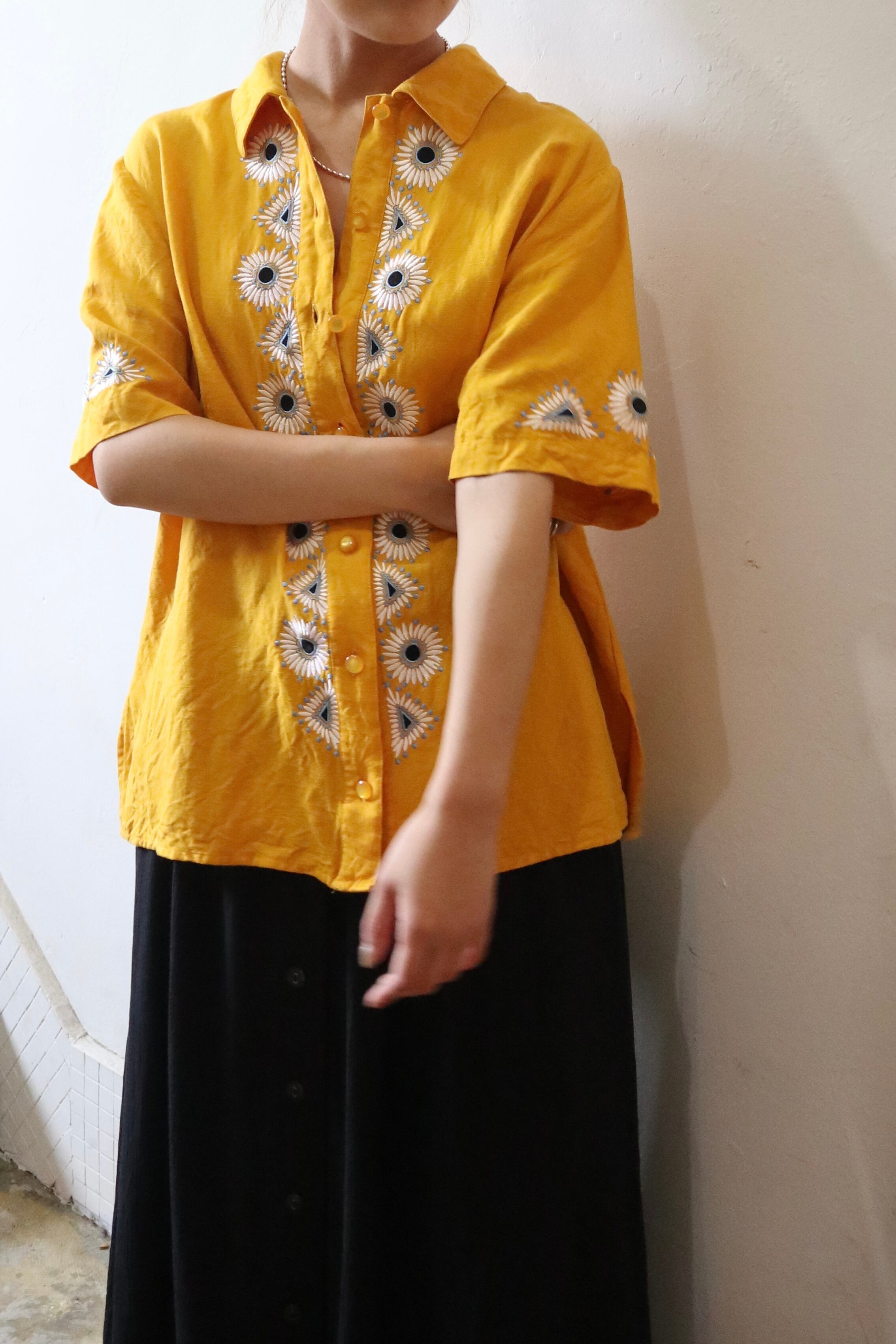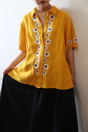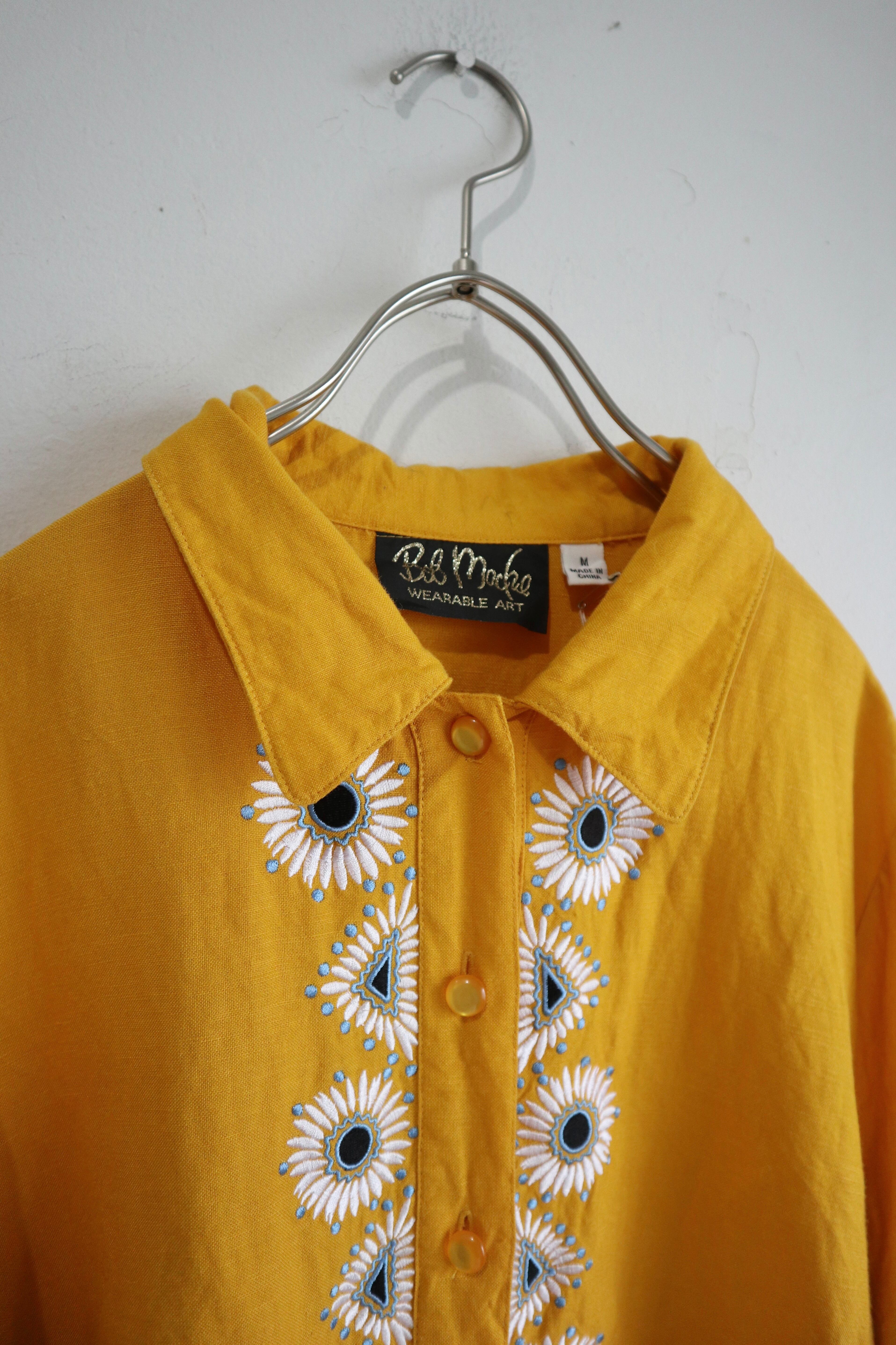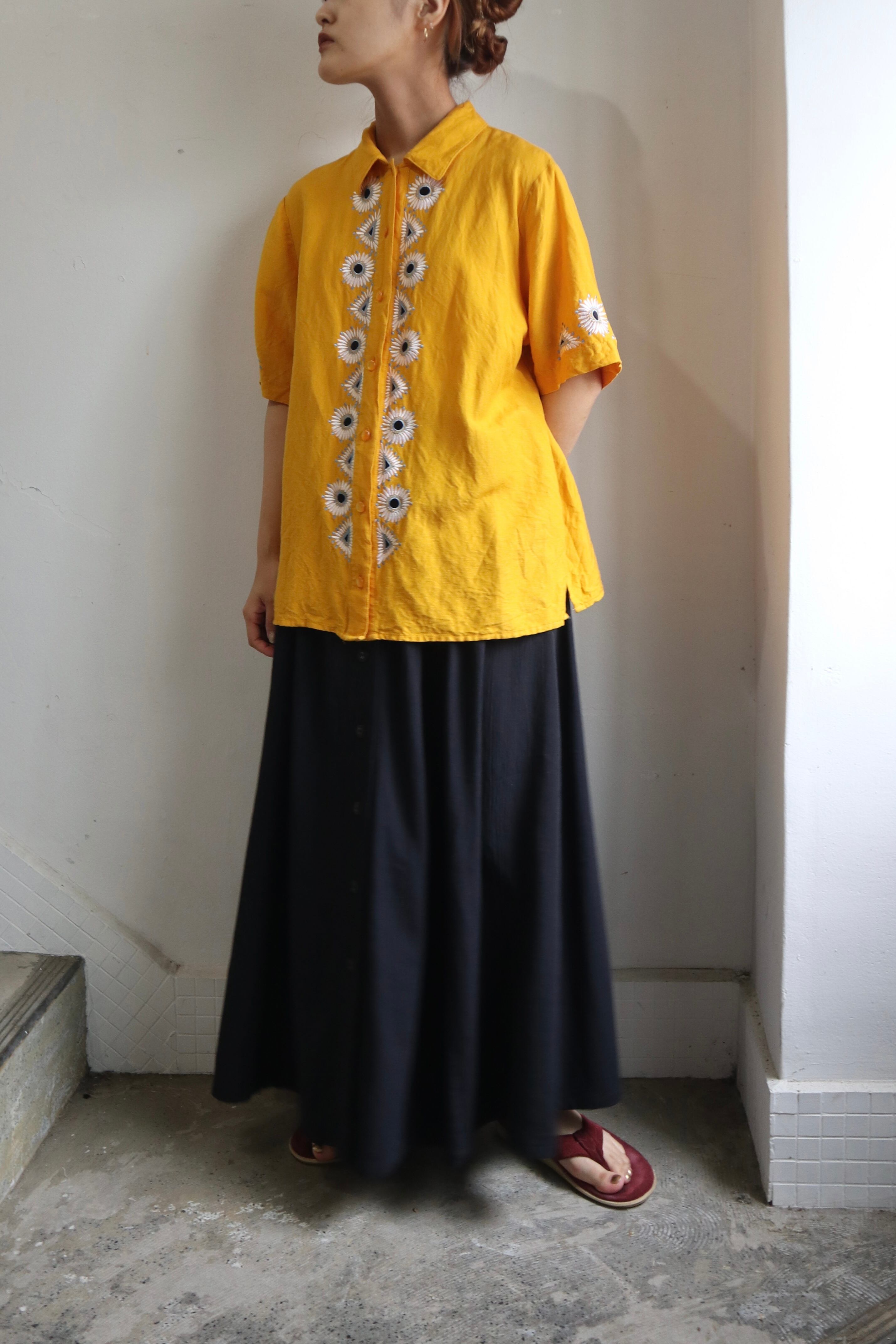 水色のお花モチーフの刺繍が可愛らしいブラウス