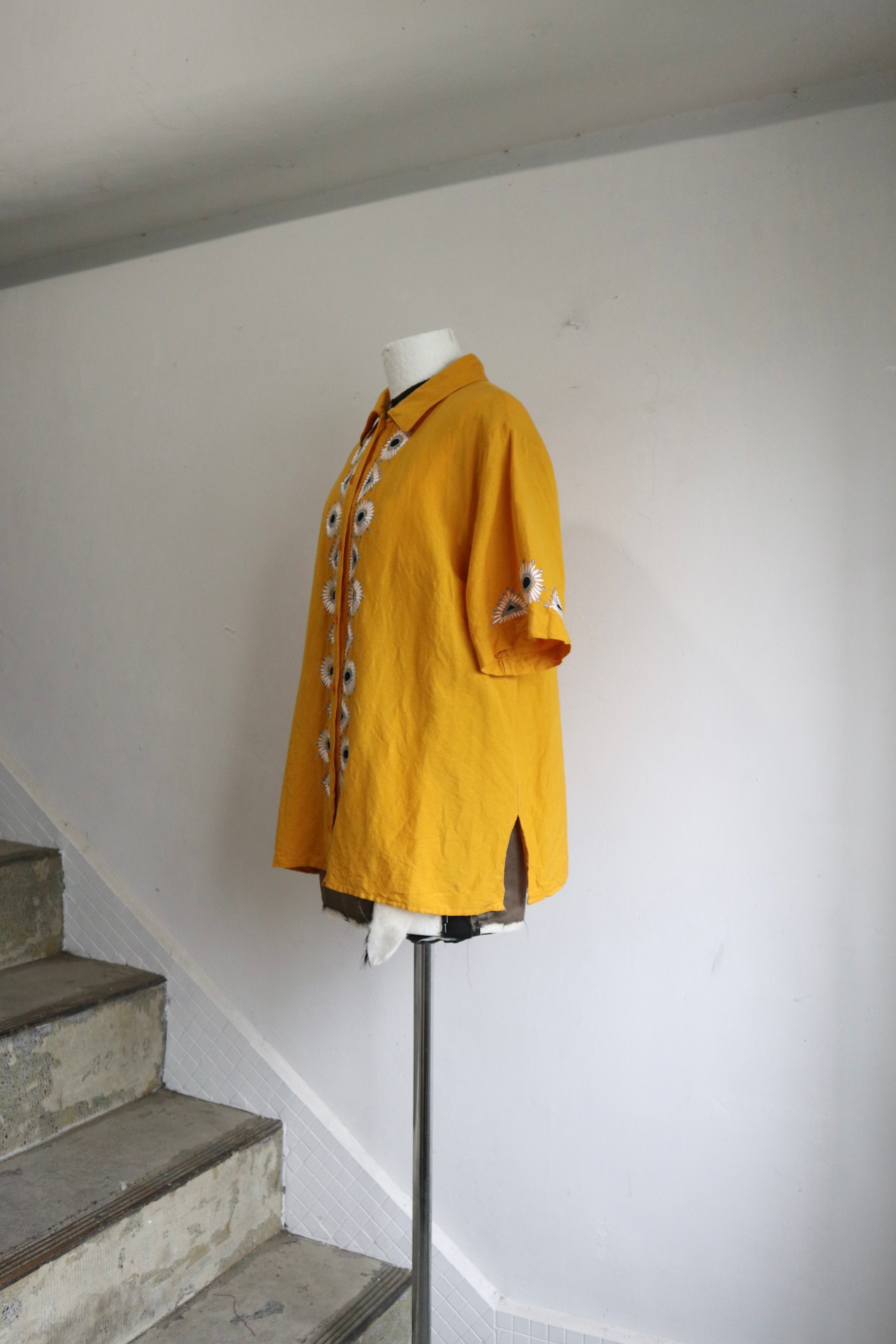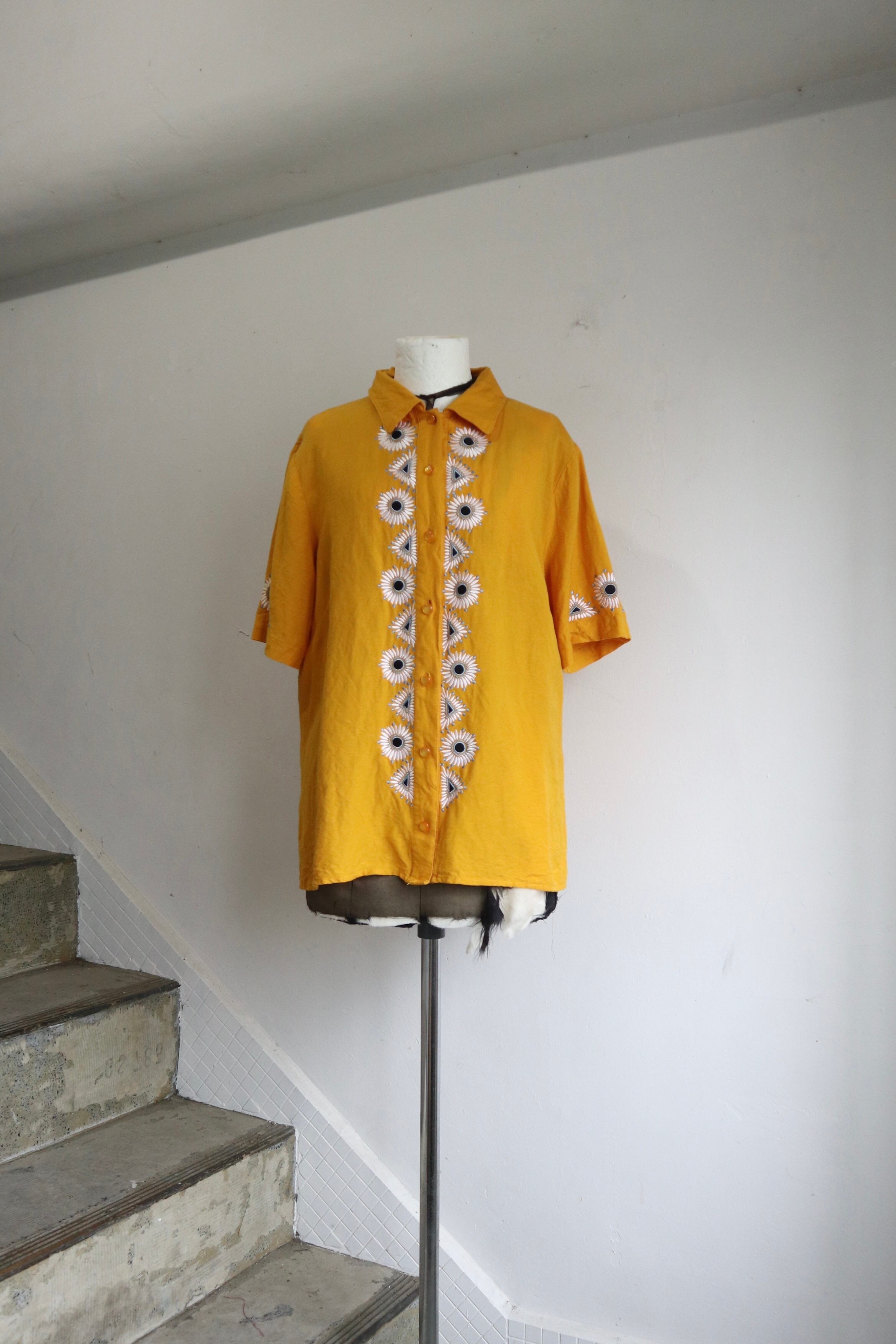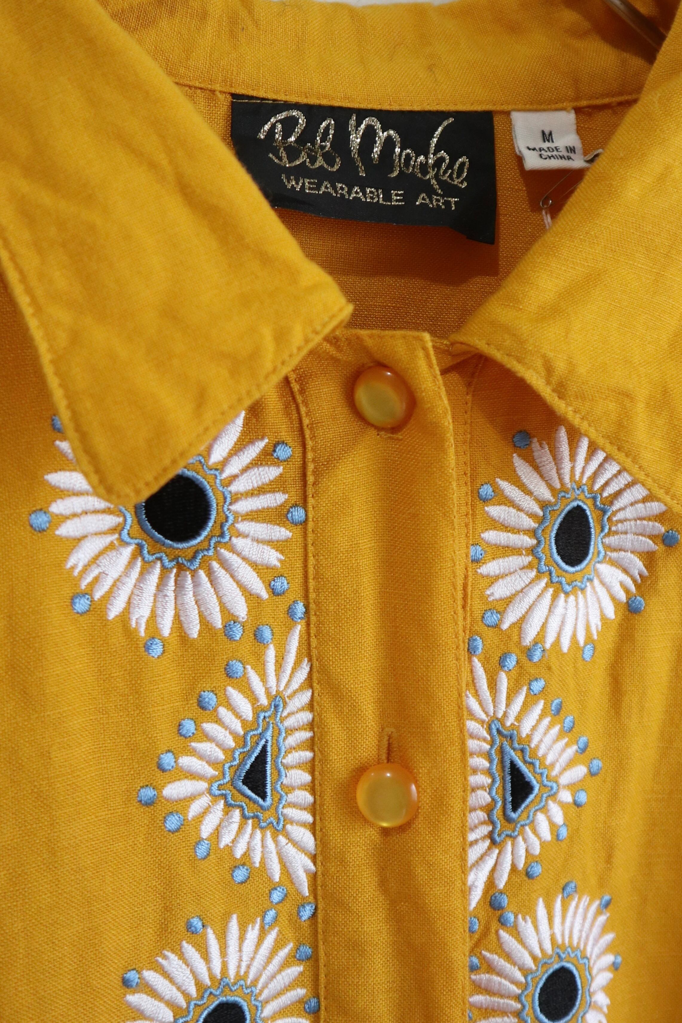水色のお花モチーフの刺繍が可愛らしいブラウス