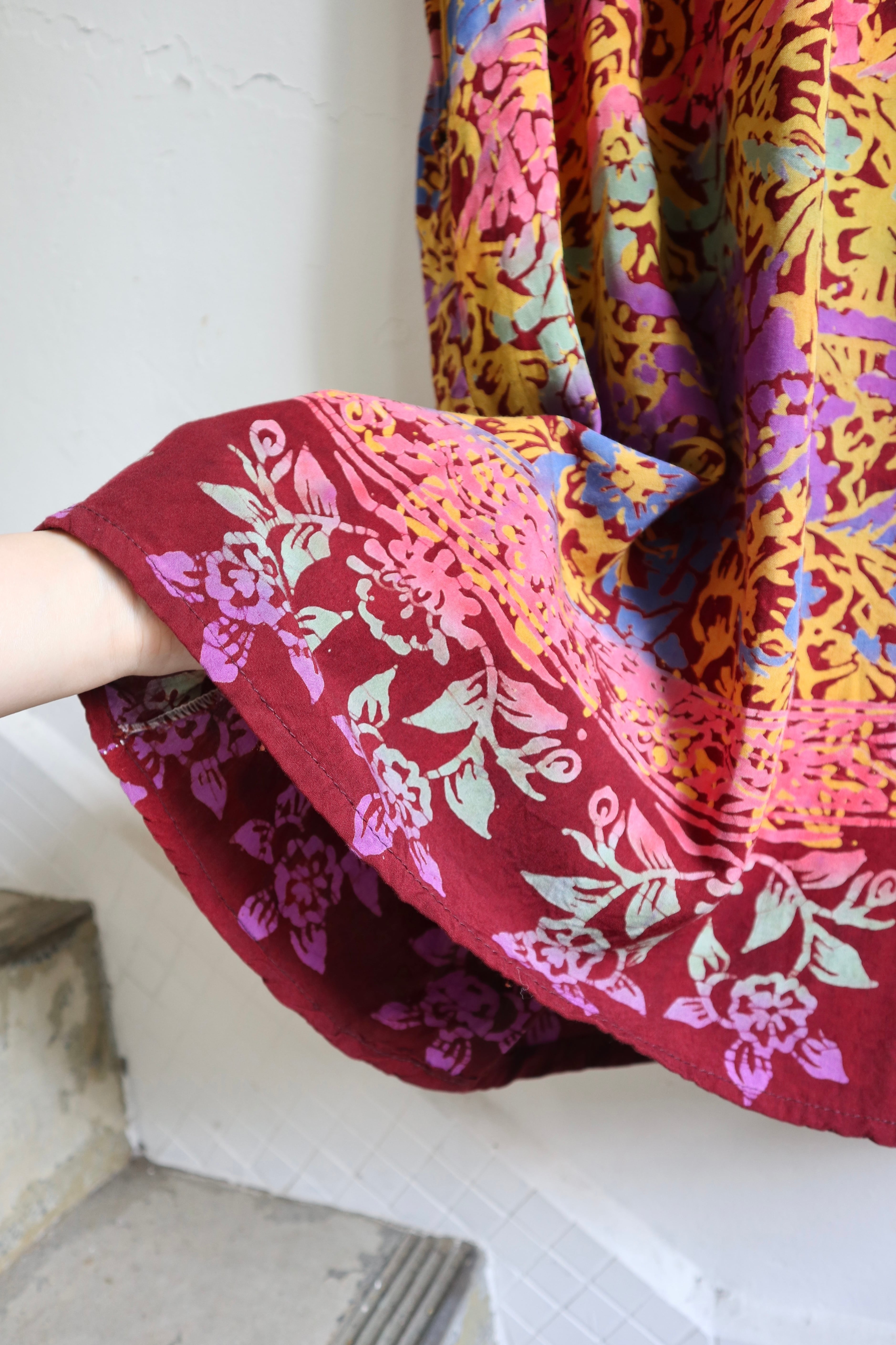 深い赤をベースに総柄のプリントが大人可愛いワンピース