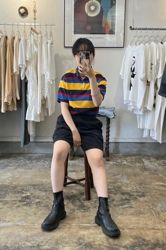 マルチカラーの配色が綺麗でシンプルなコーディネートでも様になる一枚です