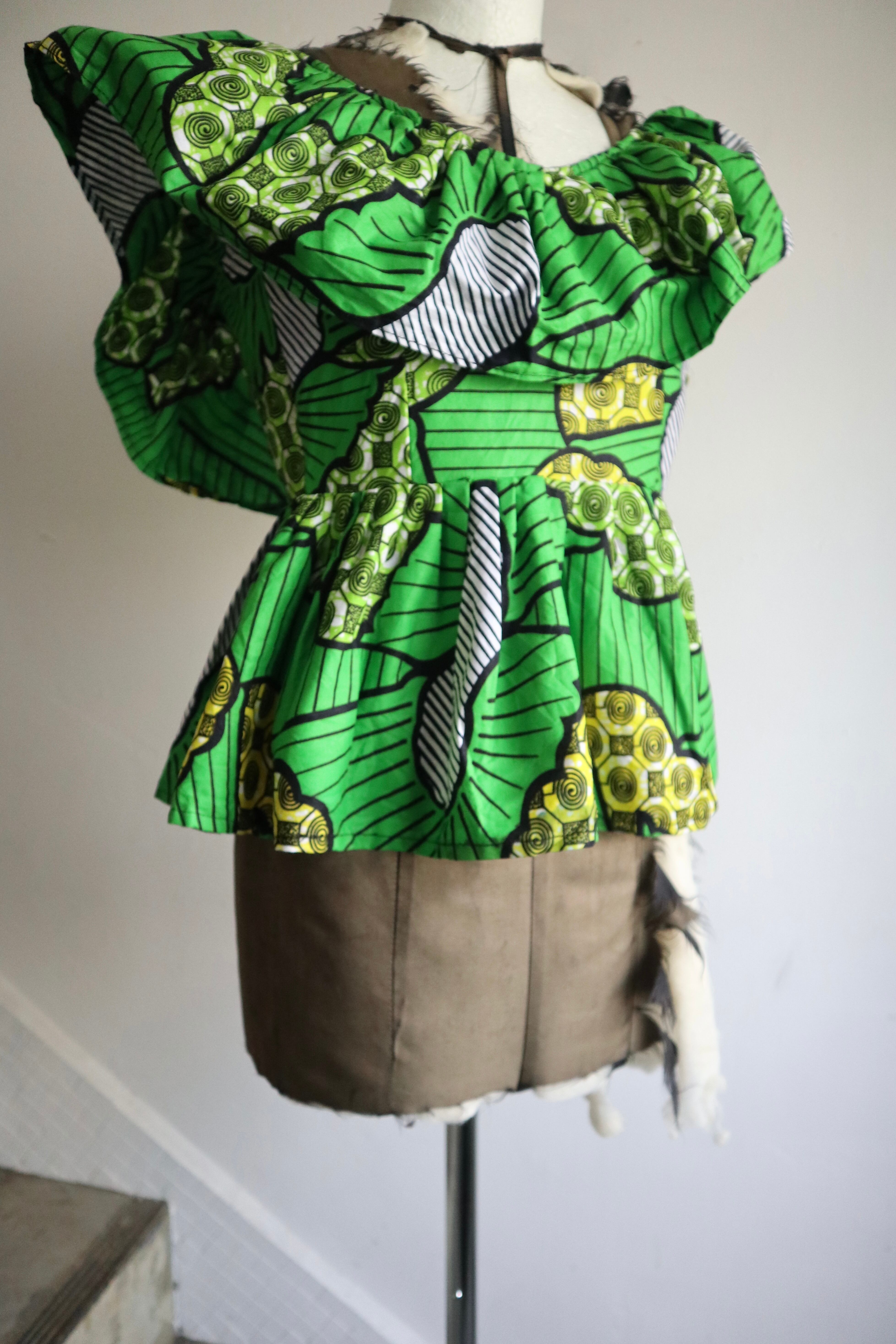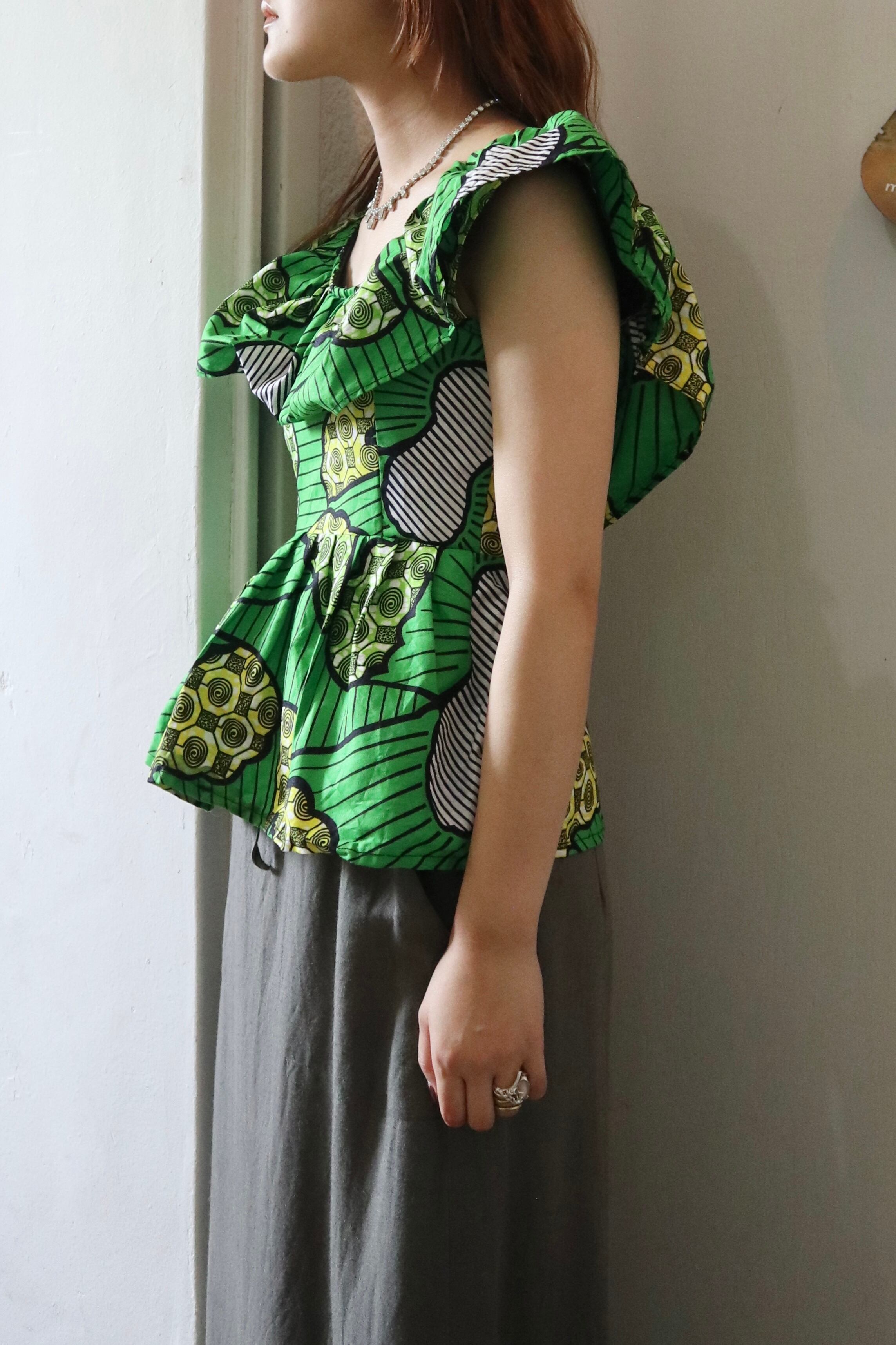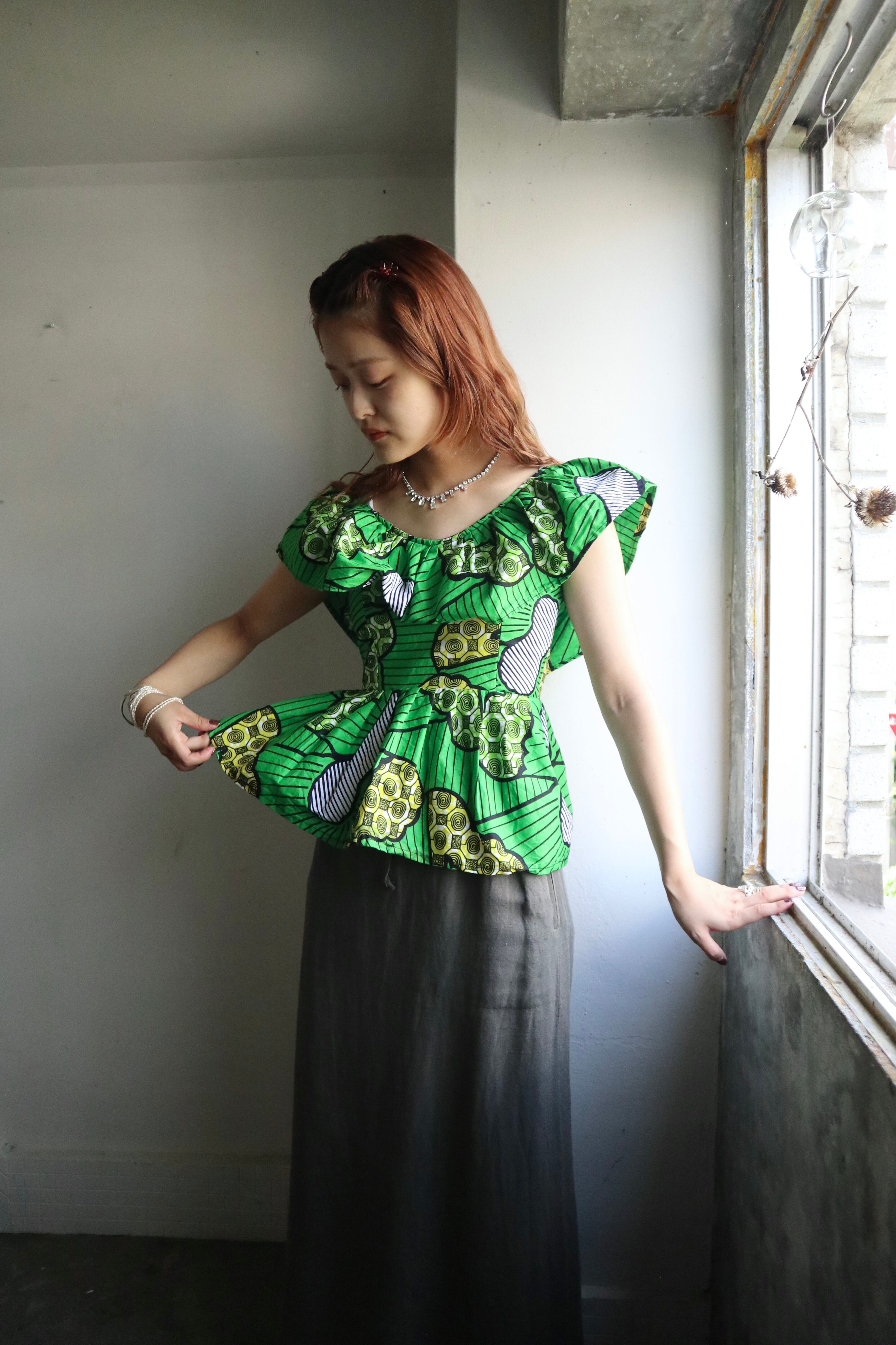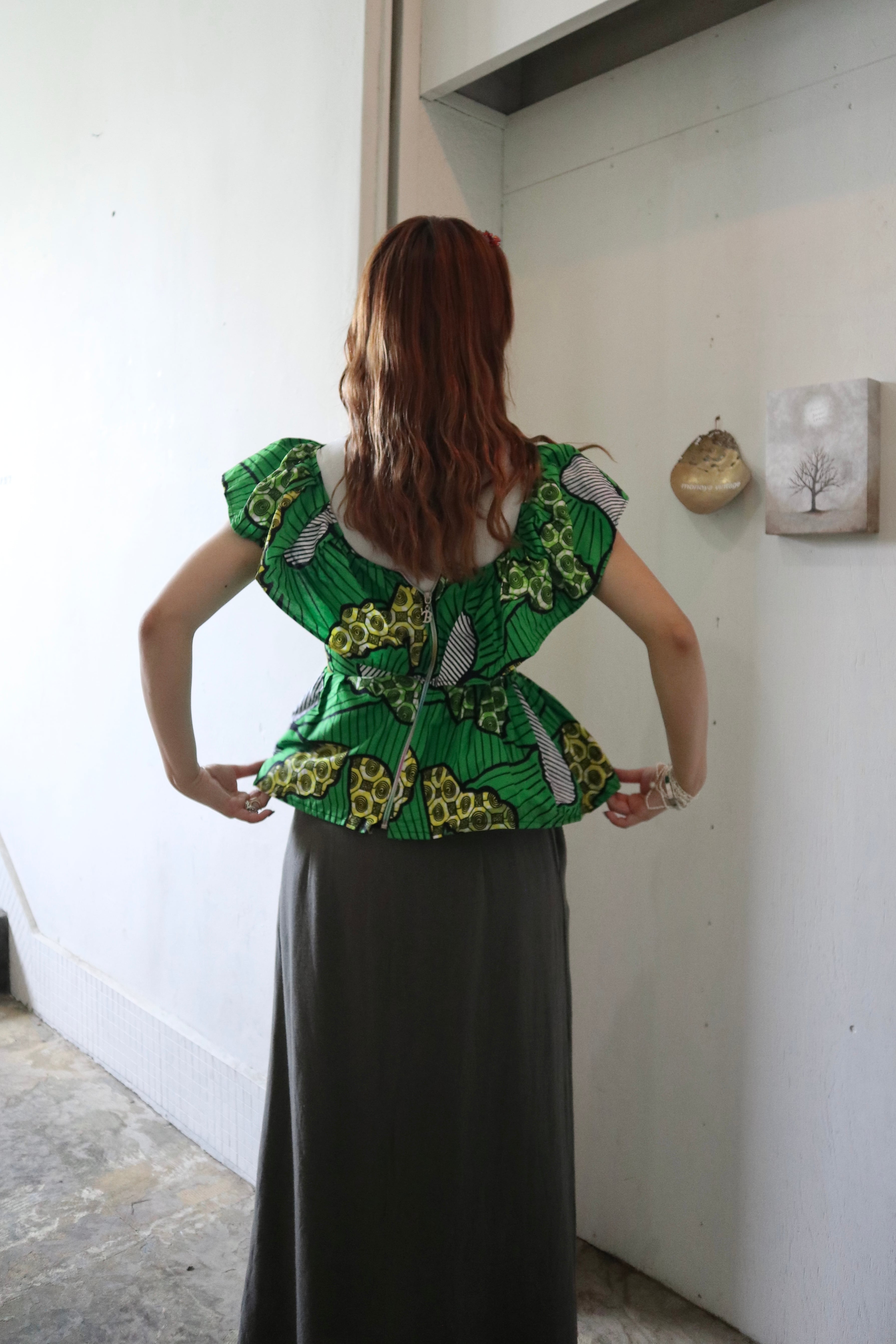 前後ろ2wayでお楽しみ頂けるアフリカンバティックのビスチェ