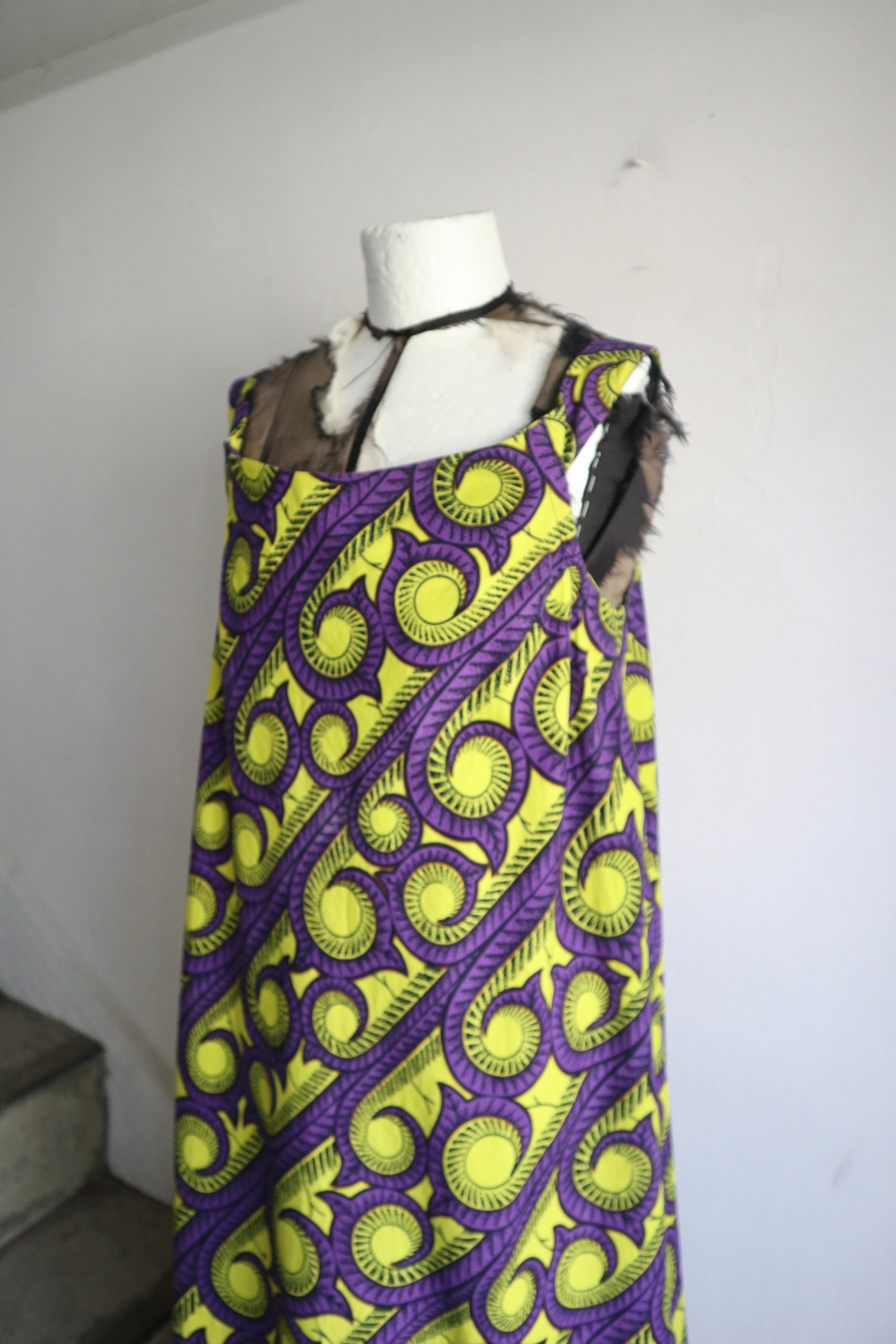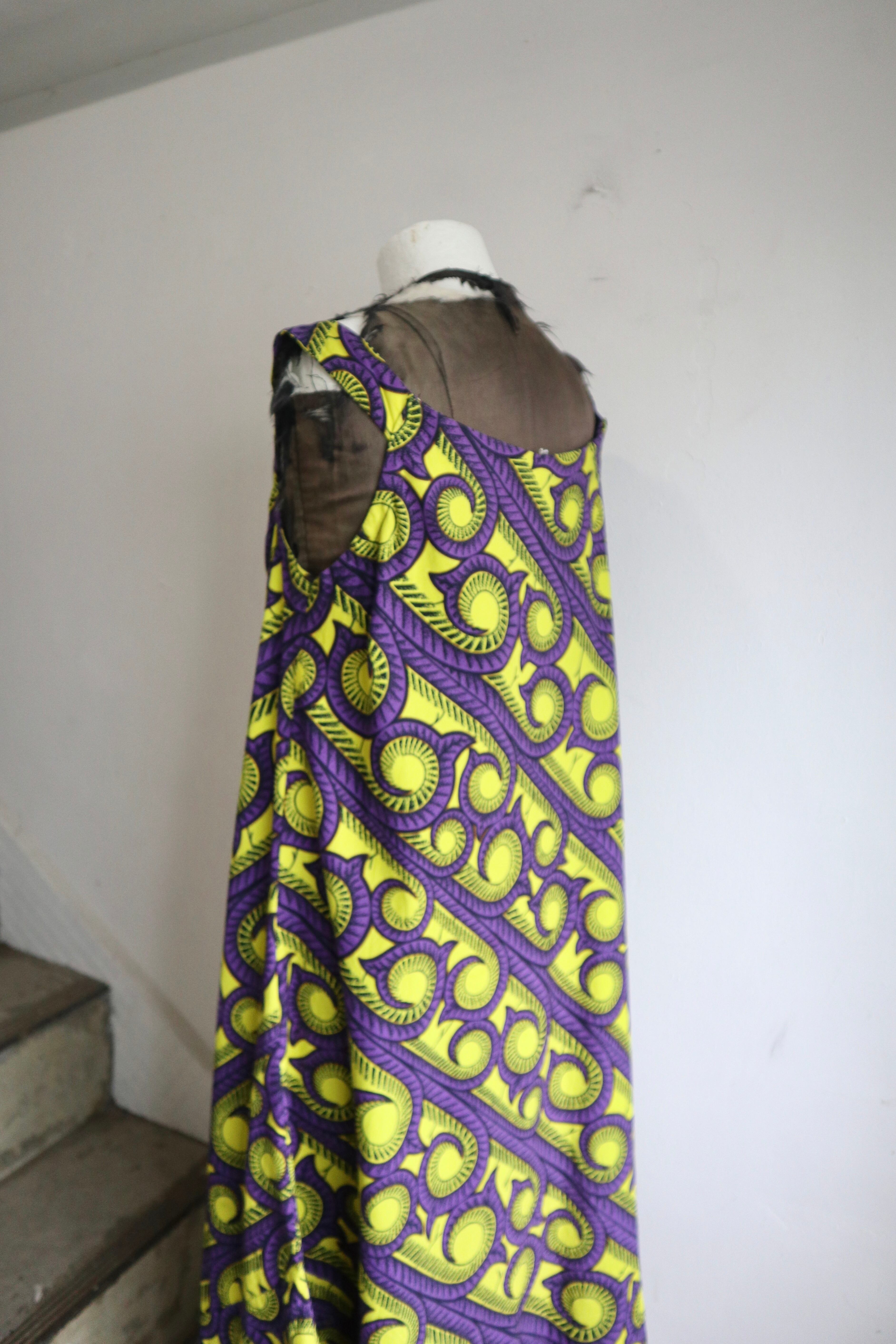 深い紫にイエローカラーが華やかすぎず普段使いしやすい一着