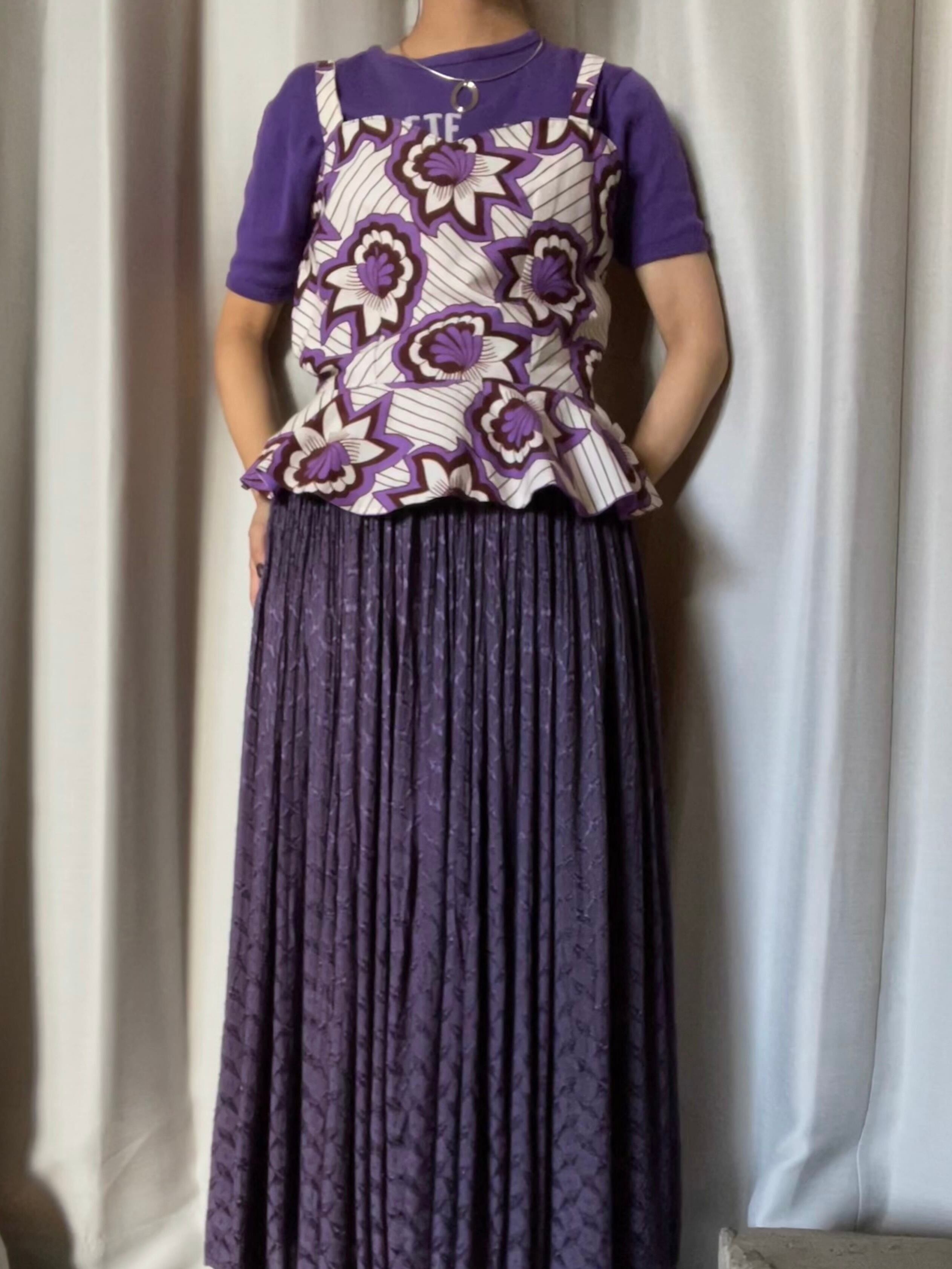 白ベースに紫色の大柄、裏地も綺麗な紫色がポイントに。