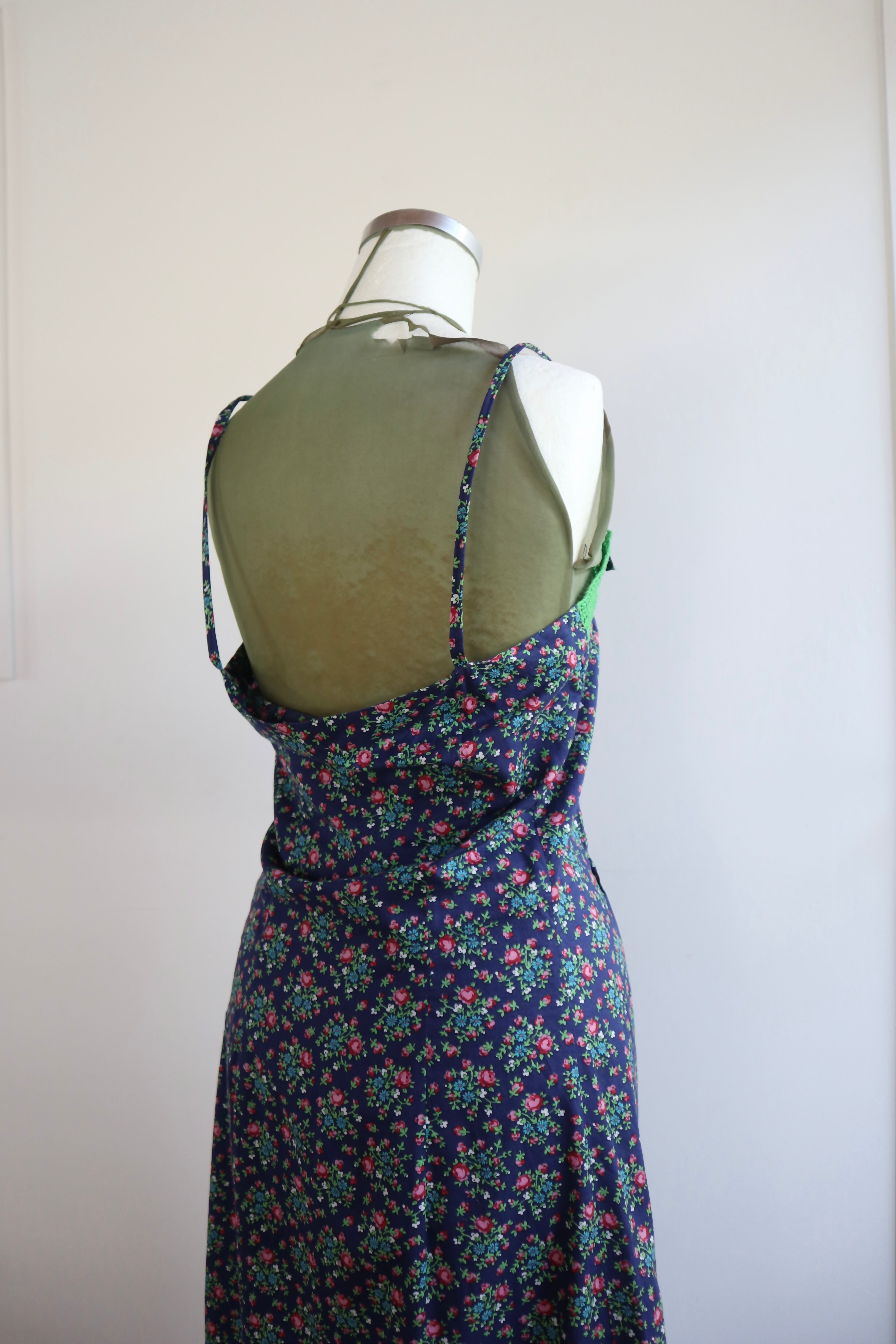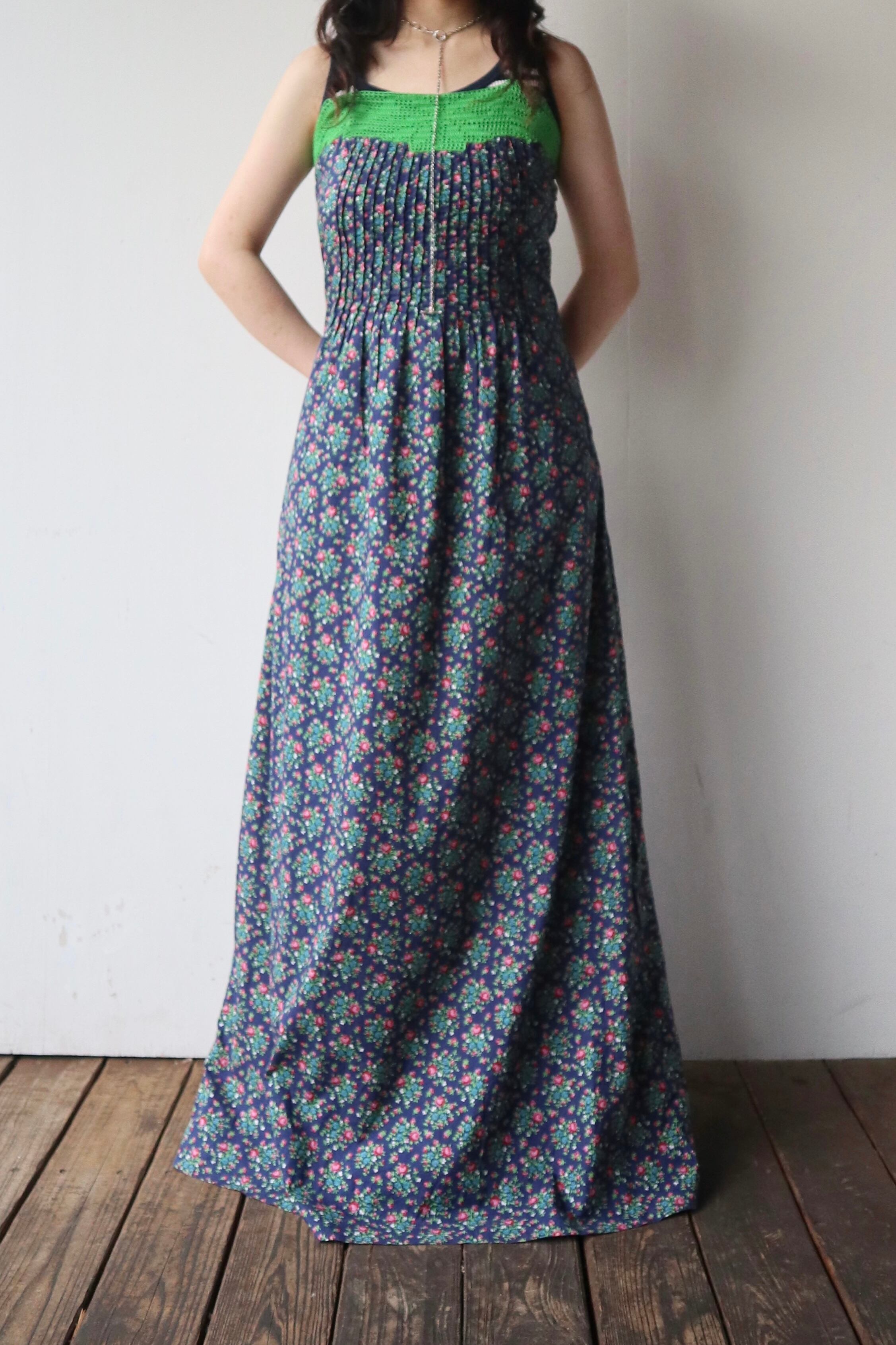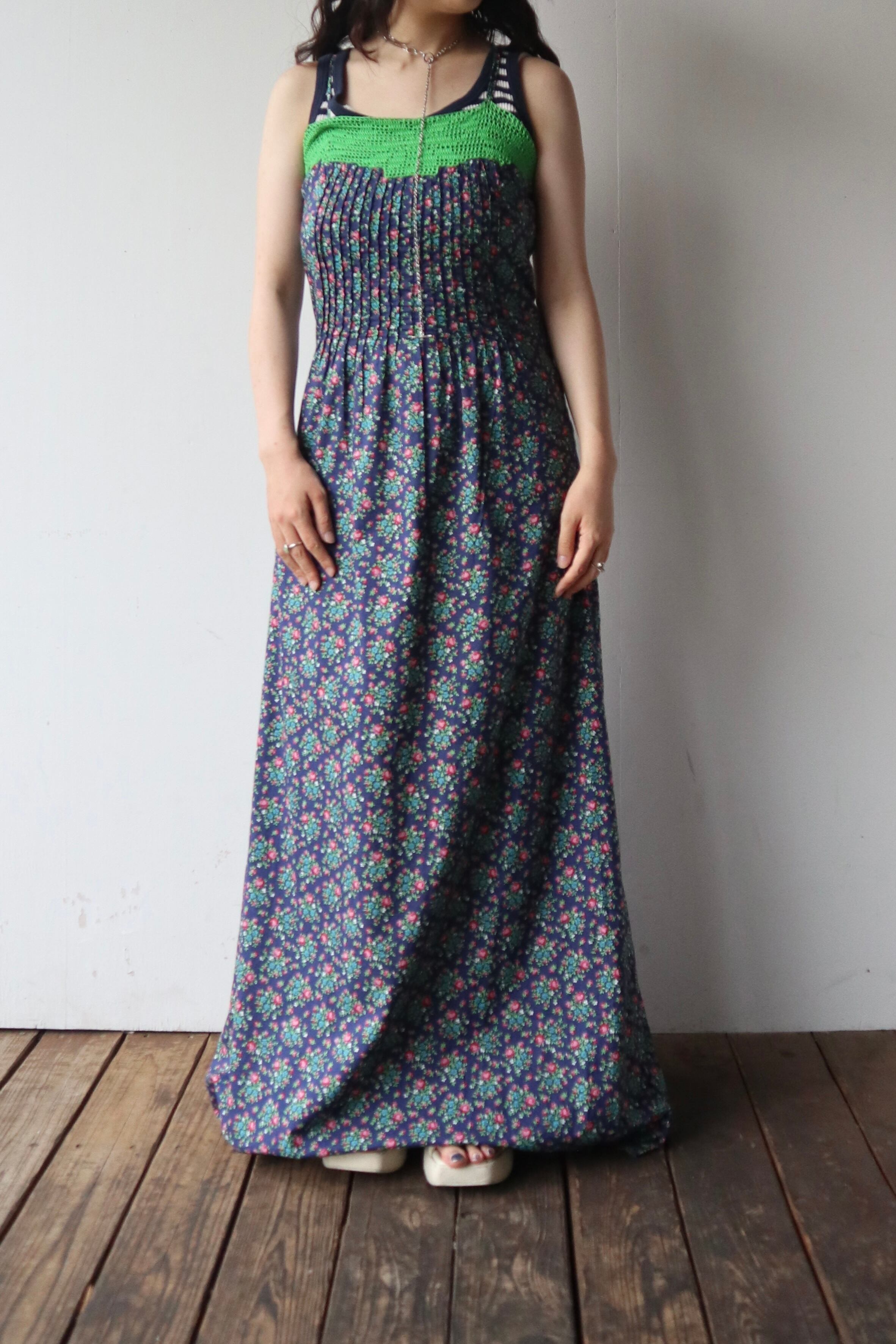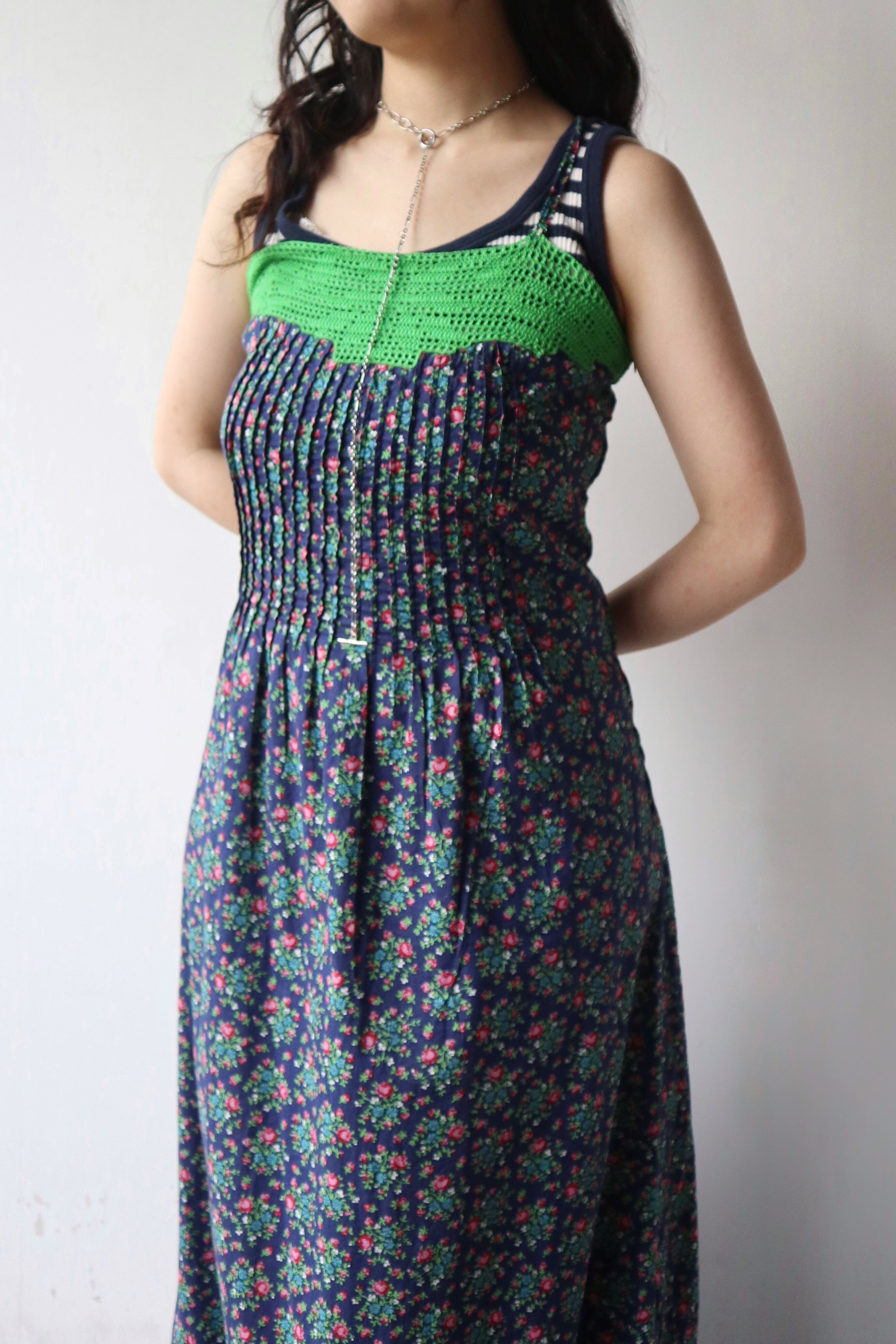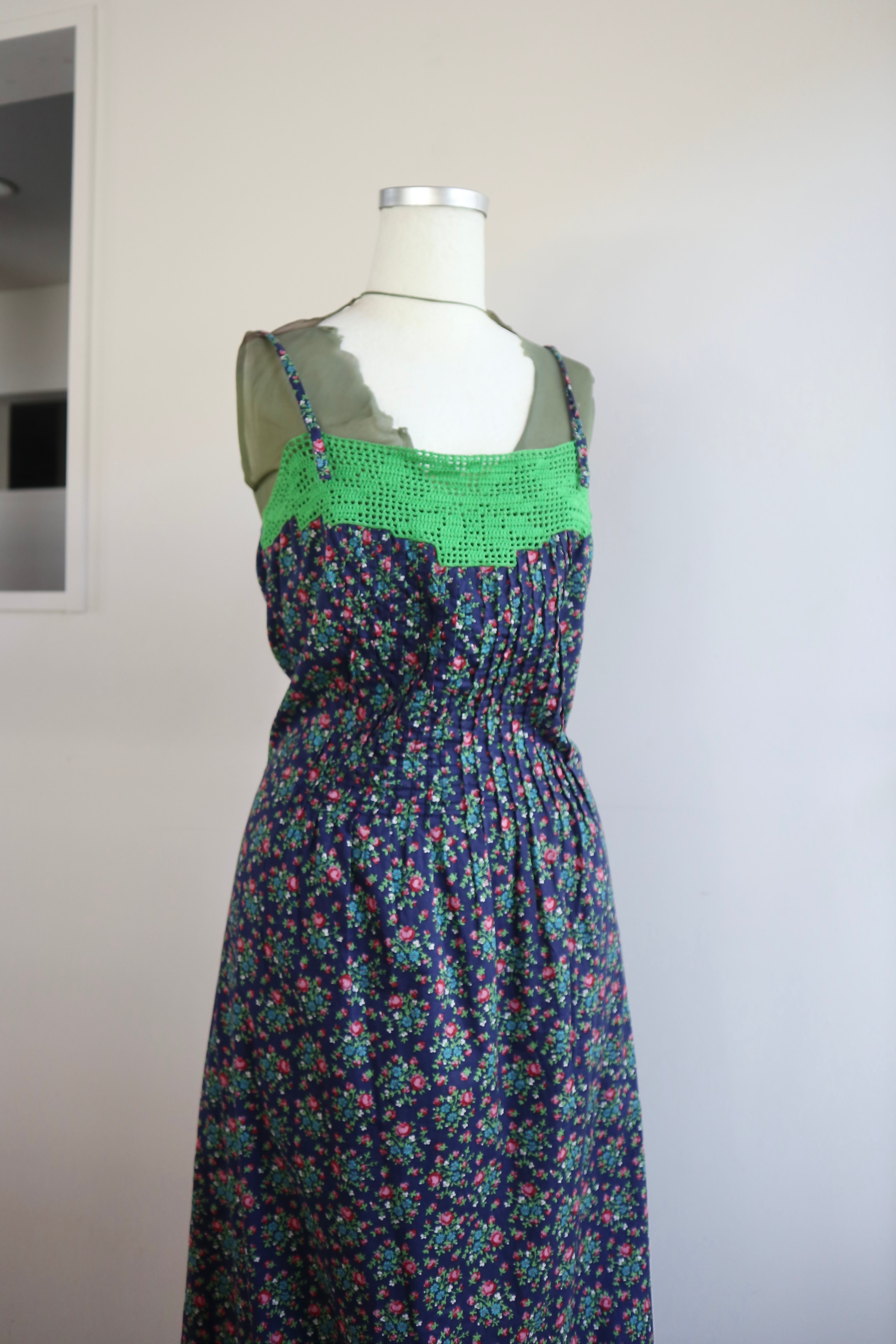 鮮やかなグリーンのメッシュ編みニットの切り替えと