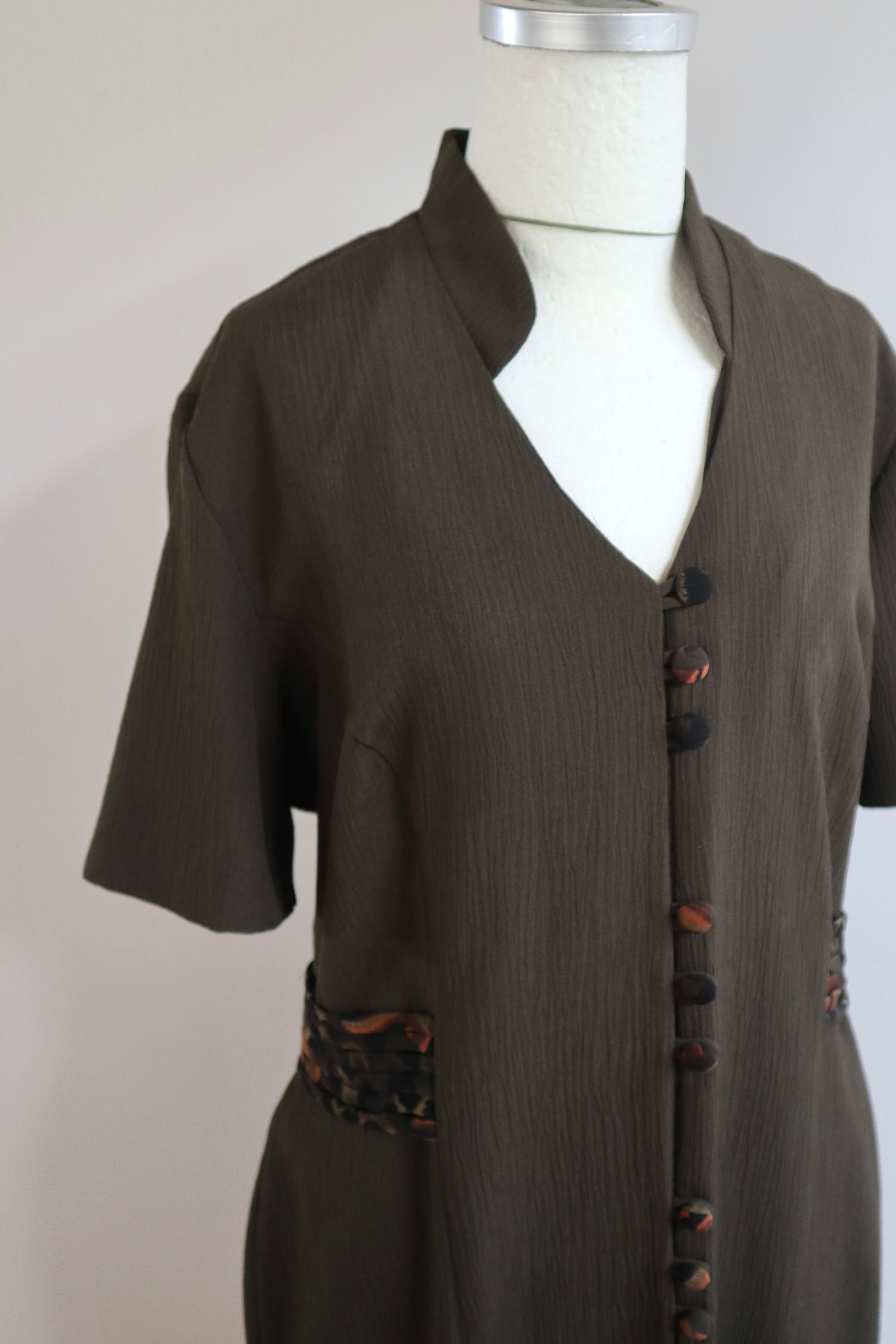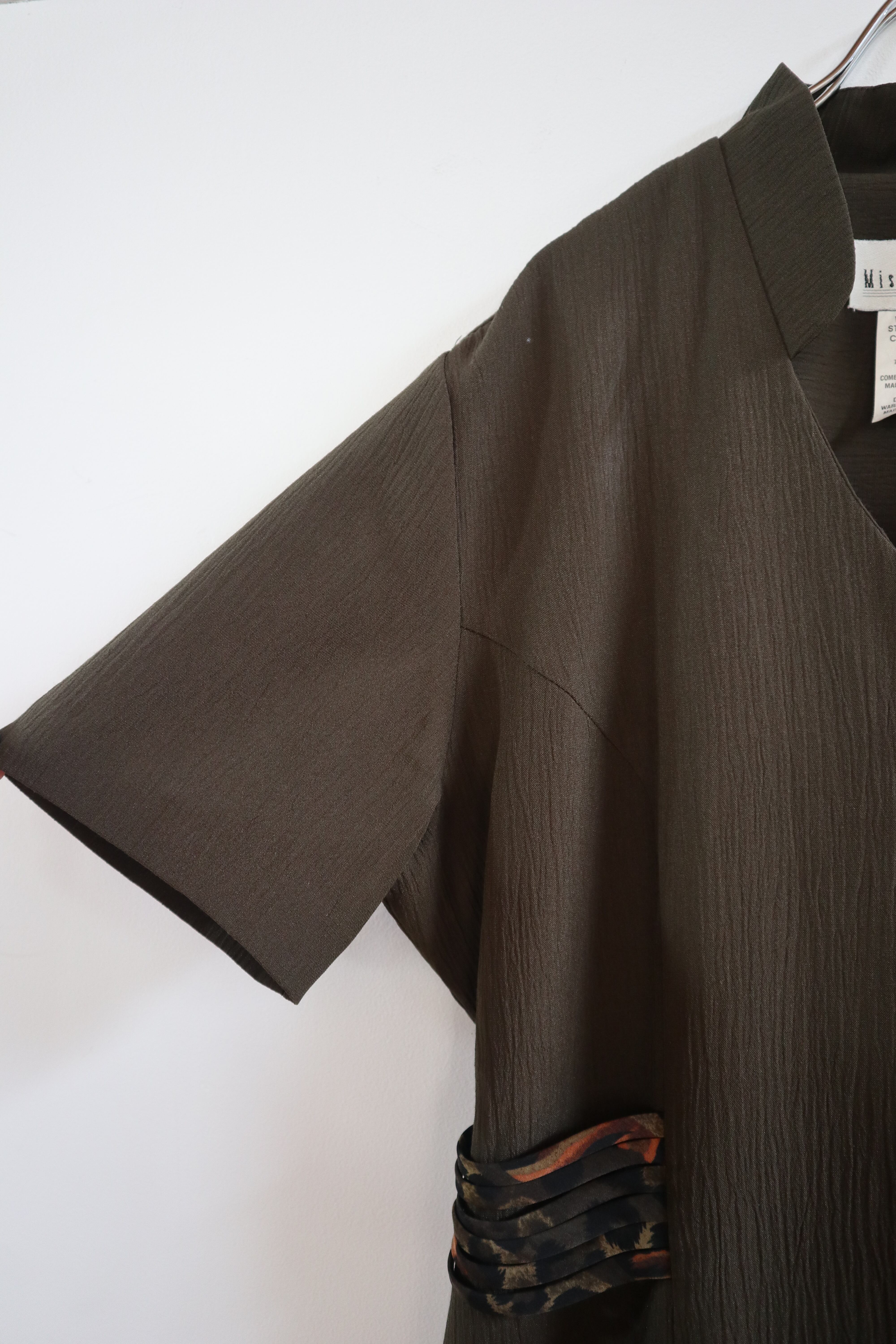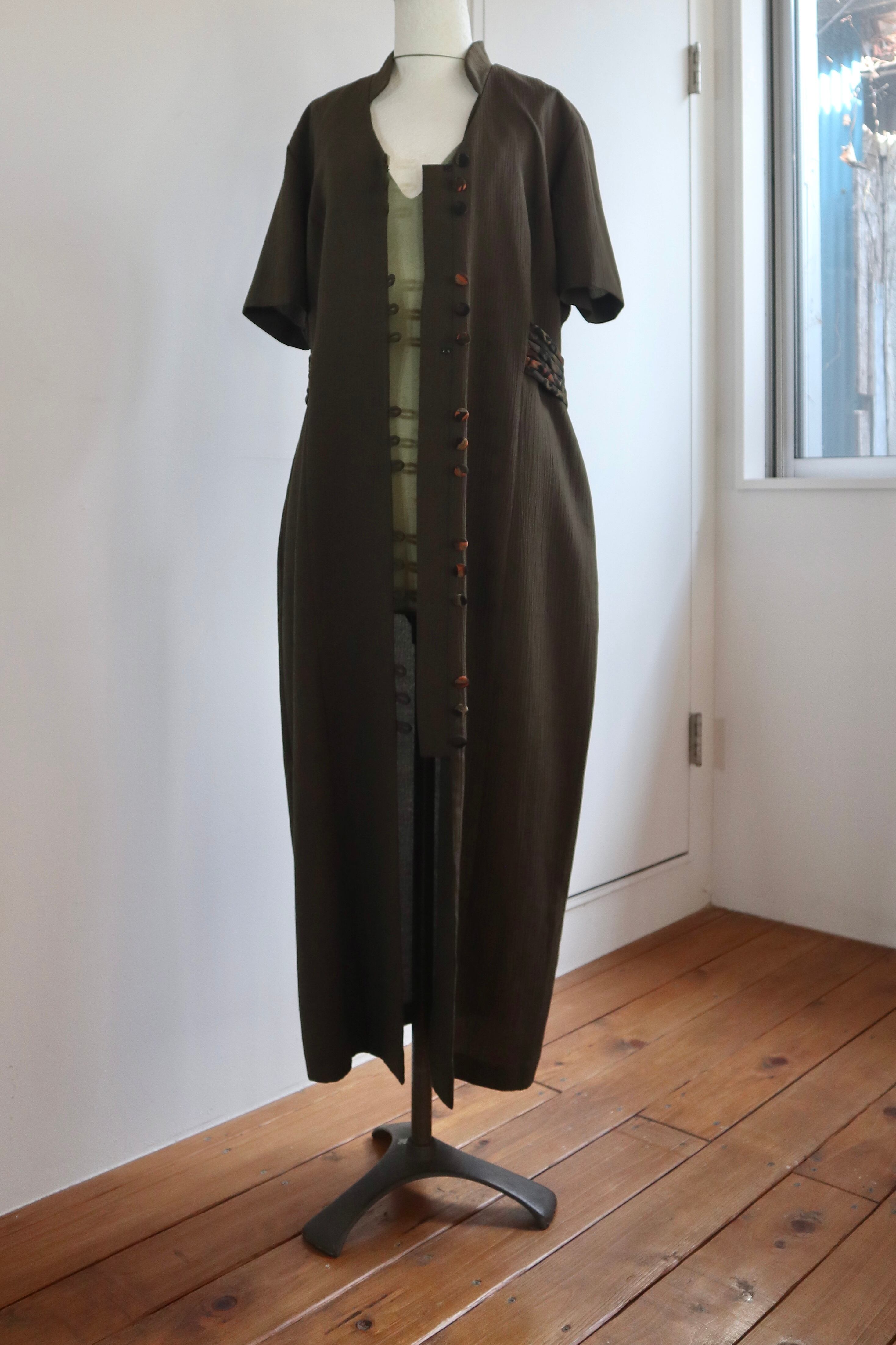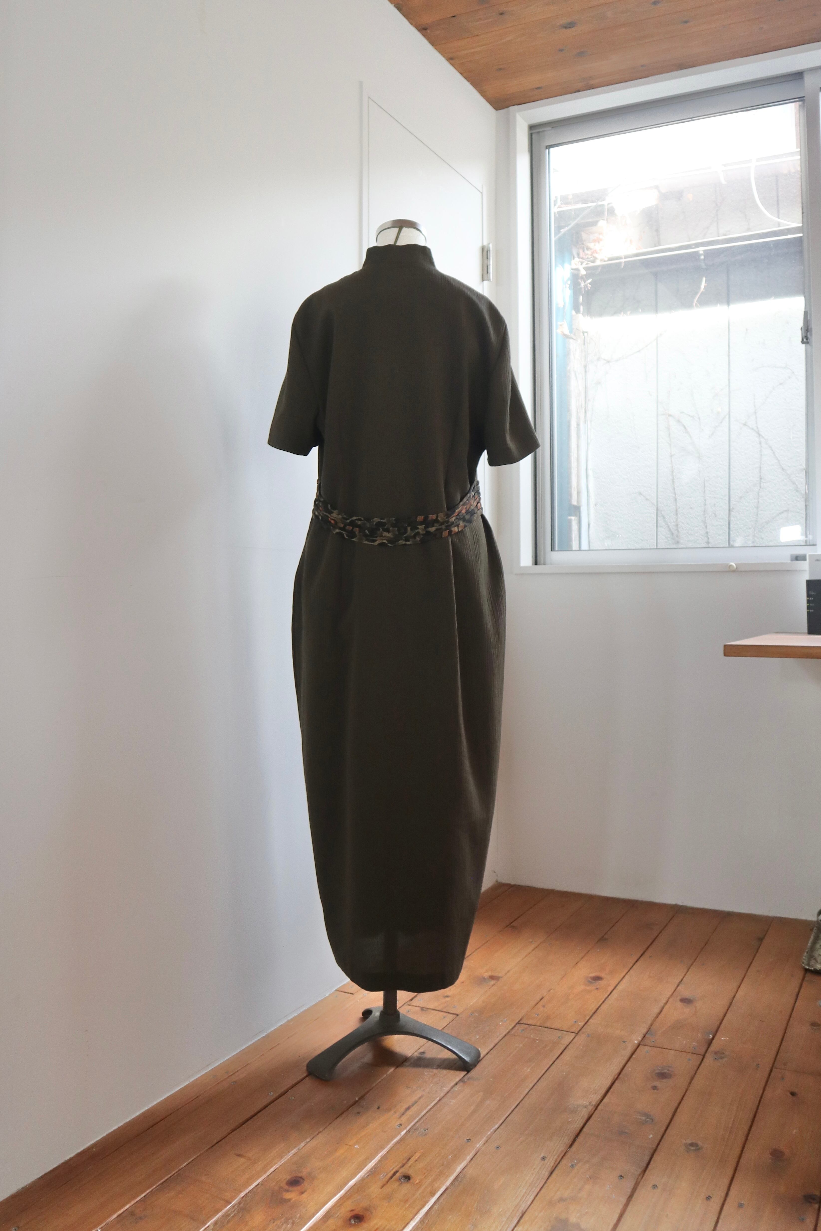 ポリレーヨン素材の細かいワッシャー加工が施されたワンピース。