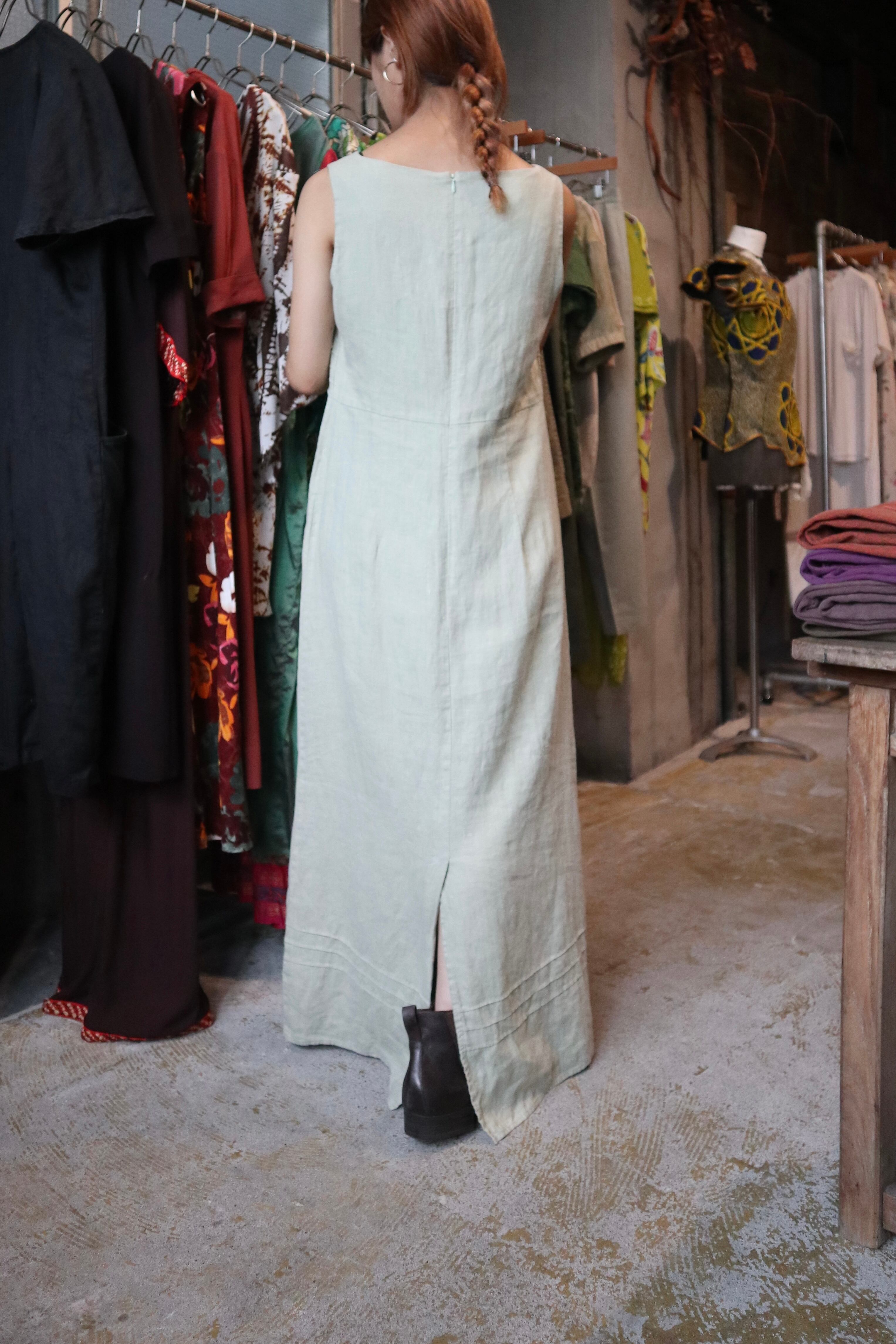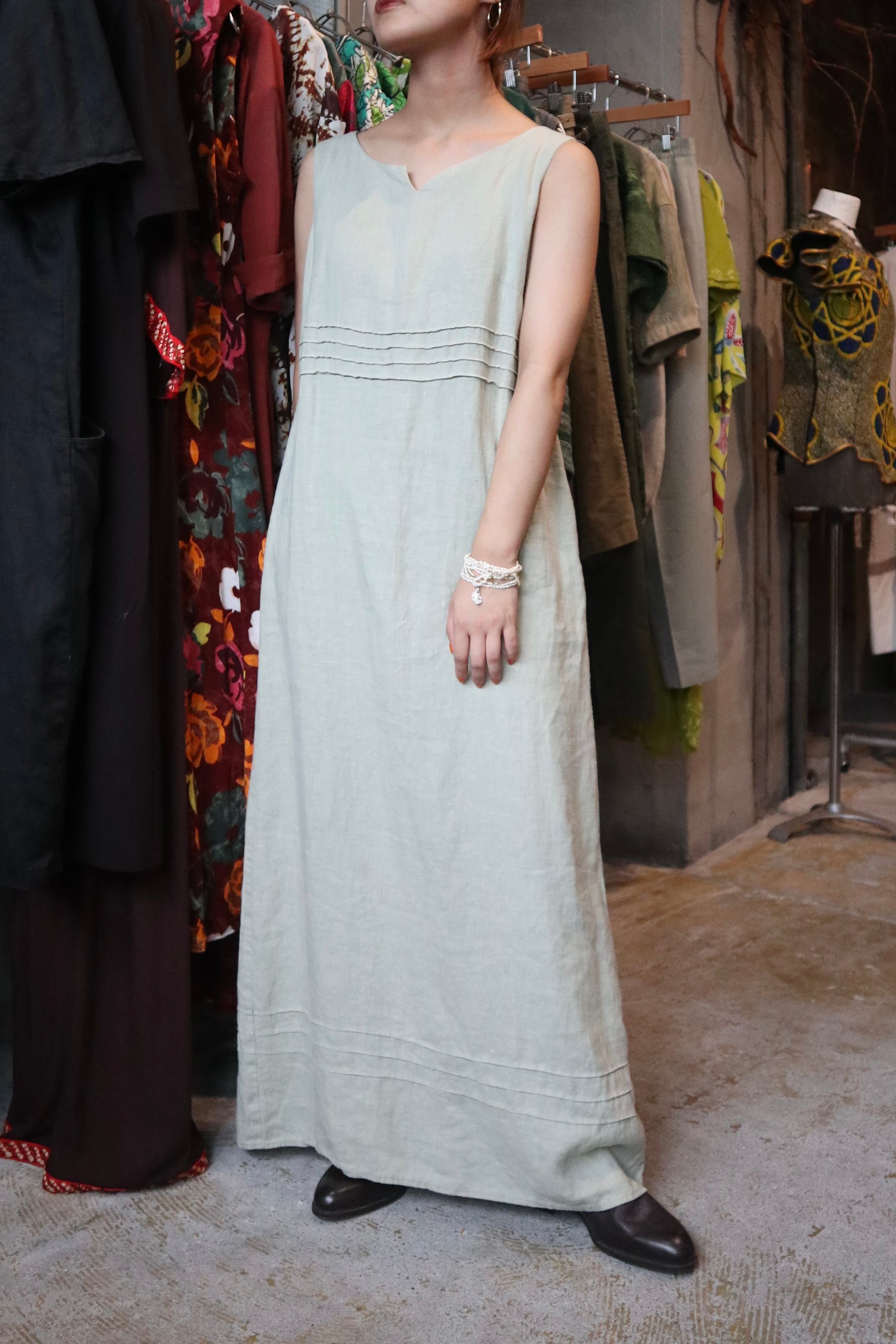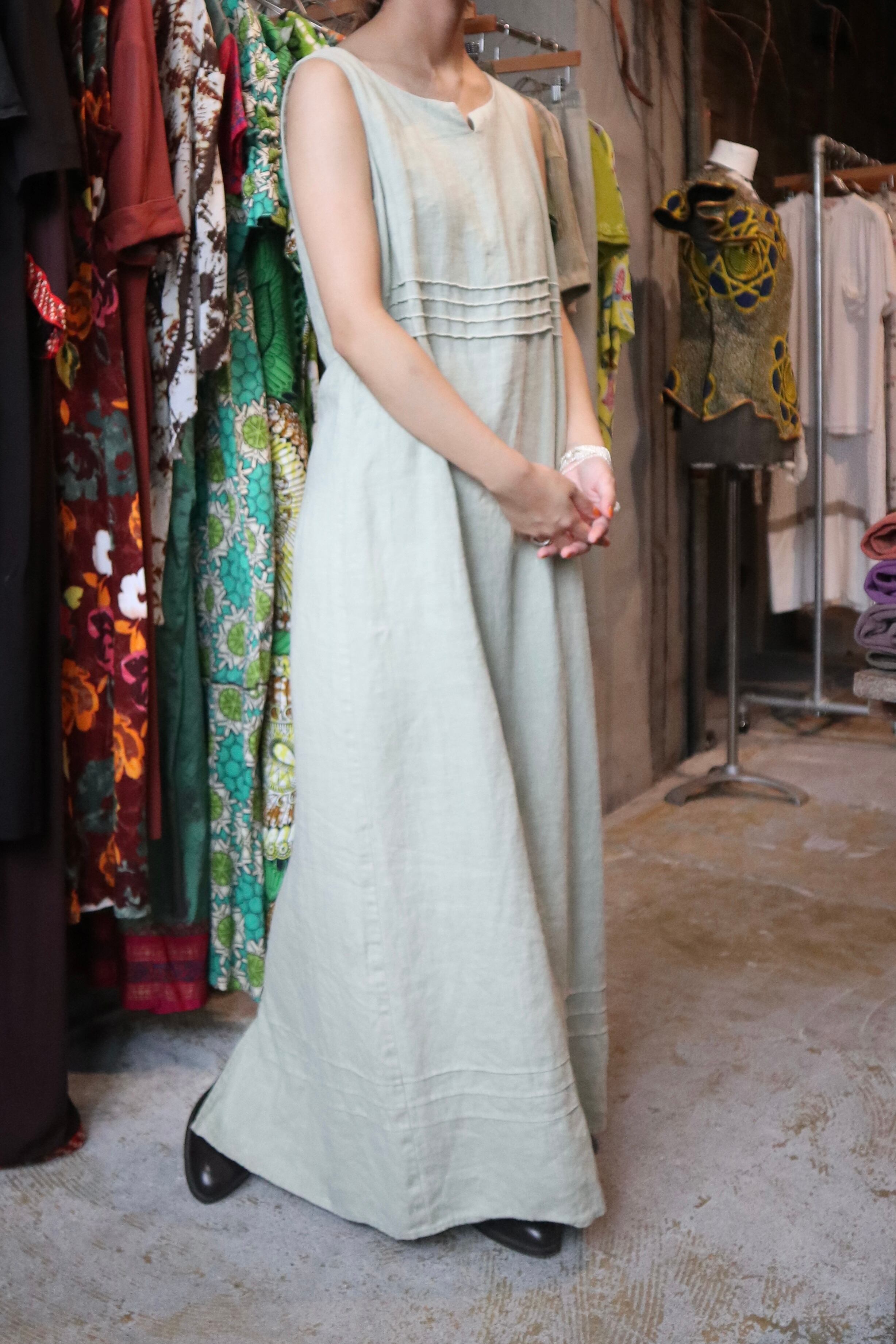 淡いグリーンにリネン素材が爽やかなワンピース。
