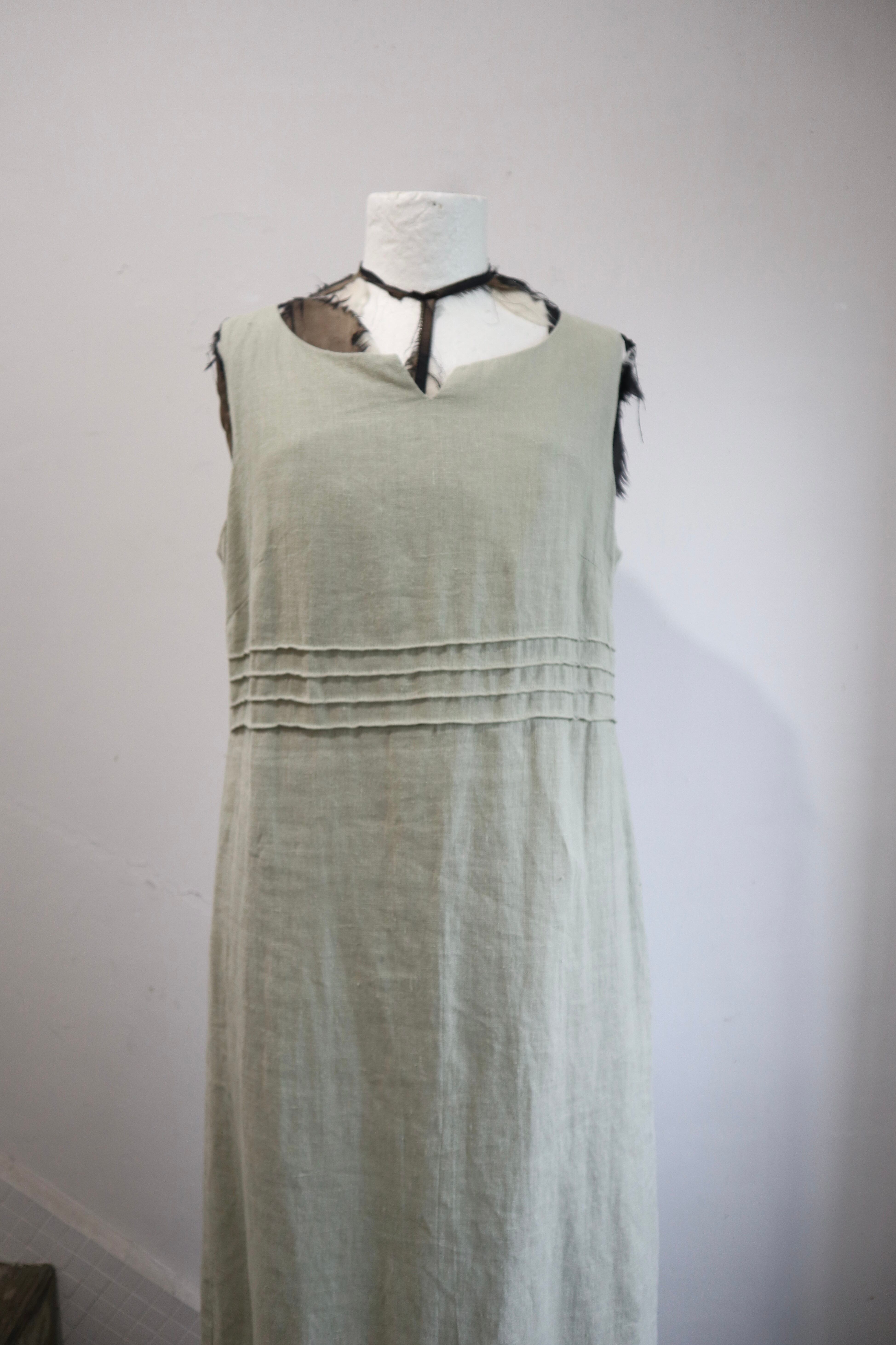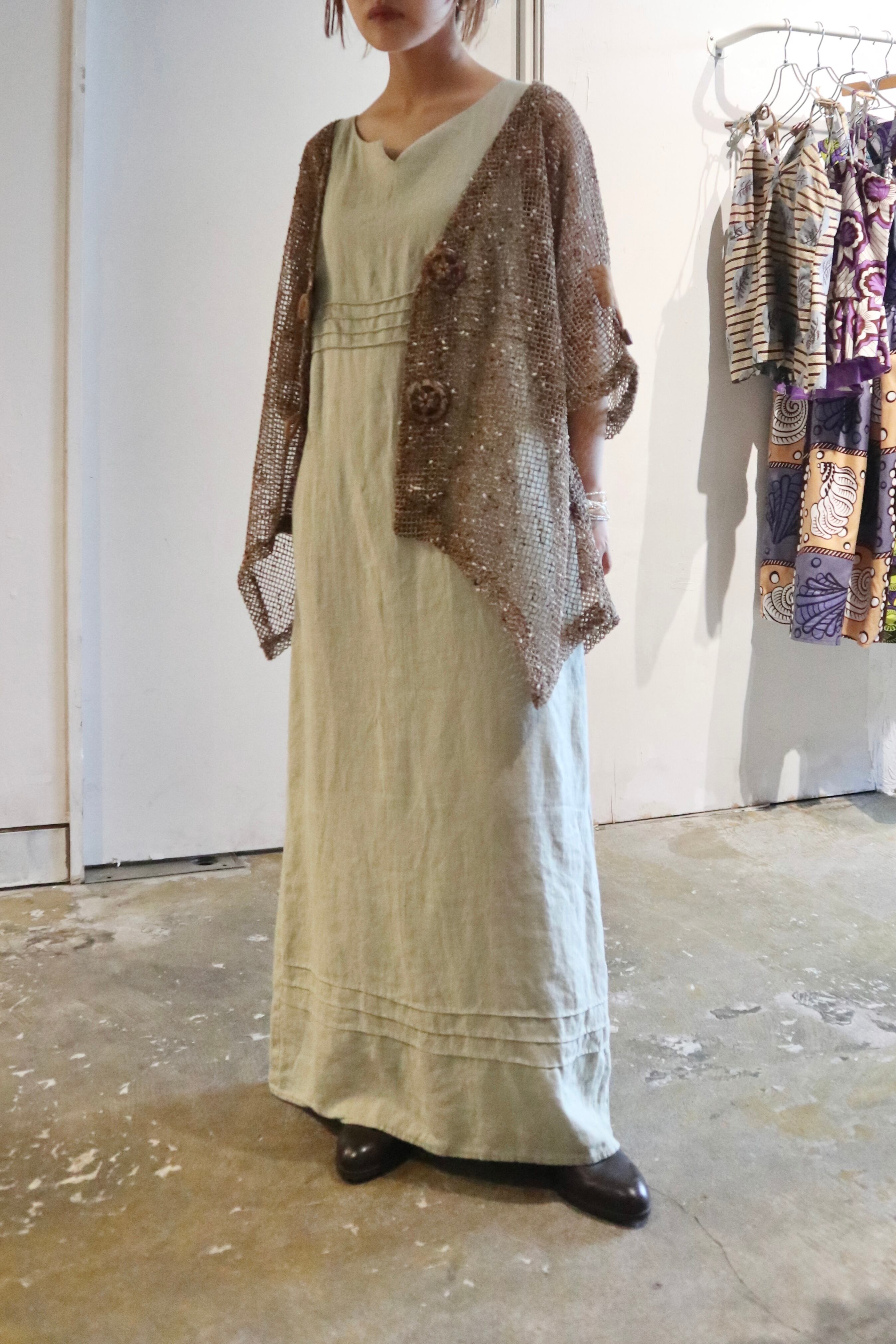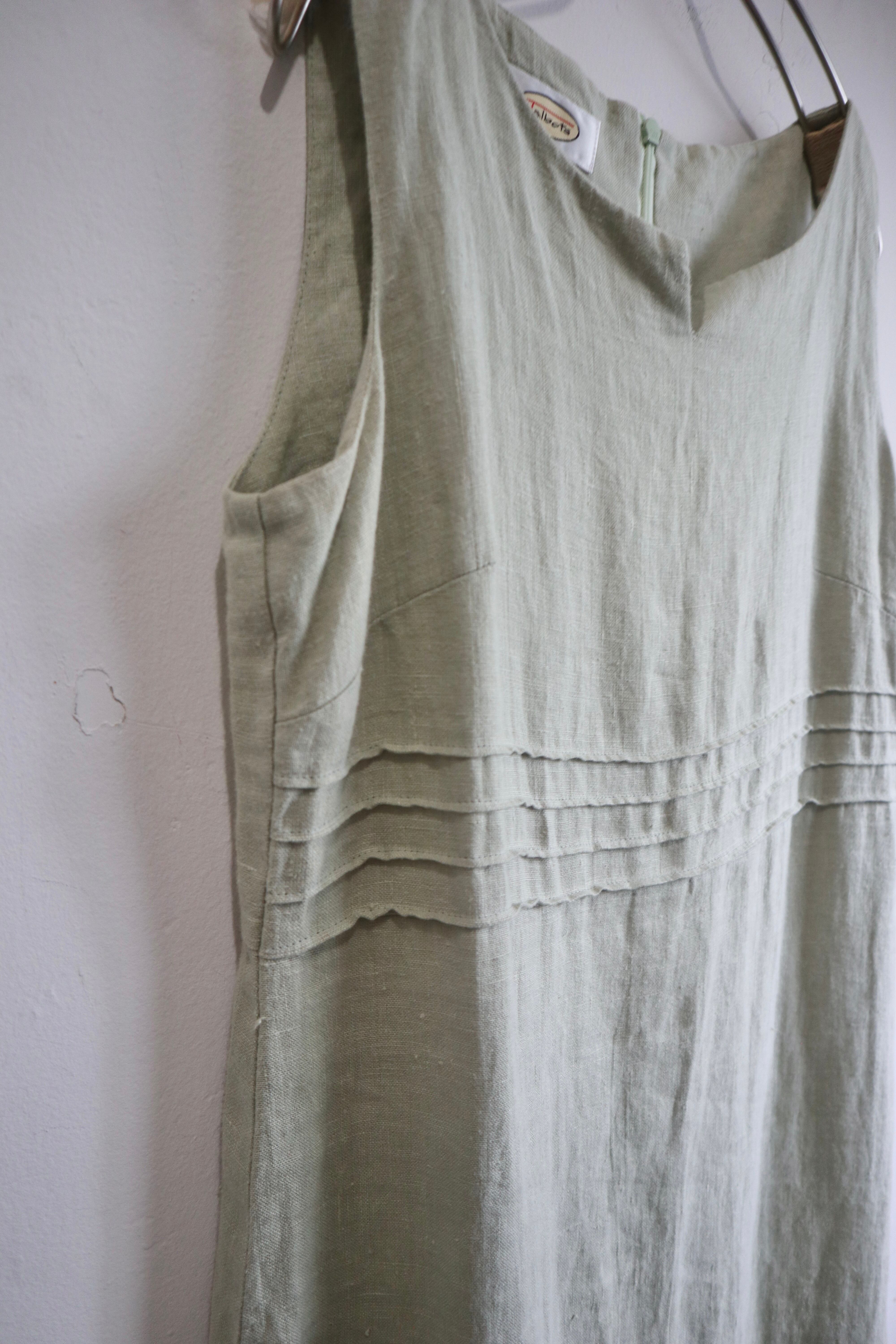 淡いグリーンにリネン素材が爽やかなワンピース。