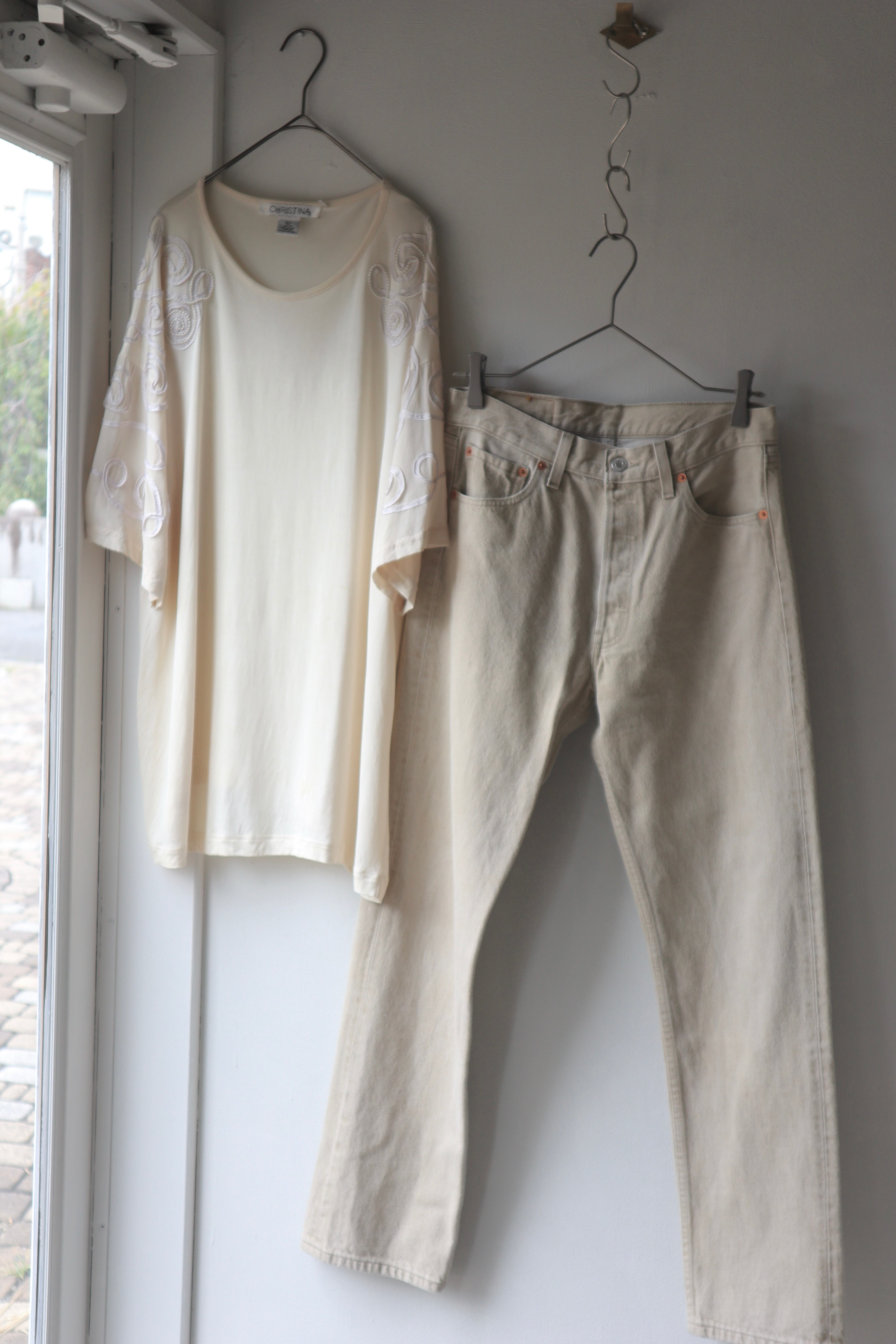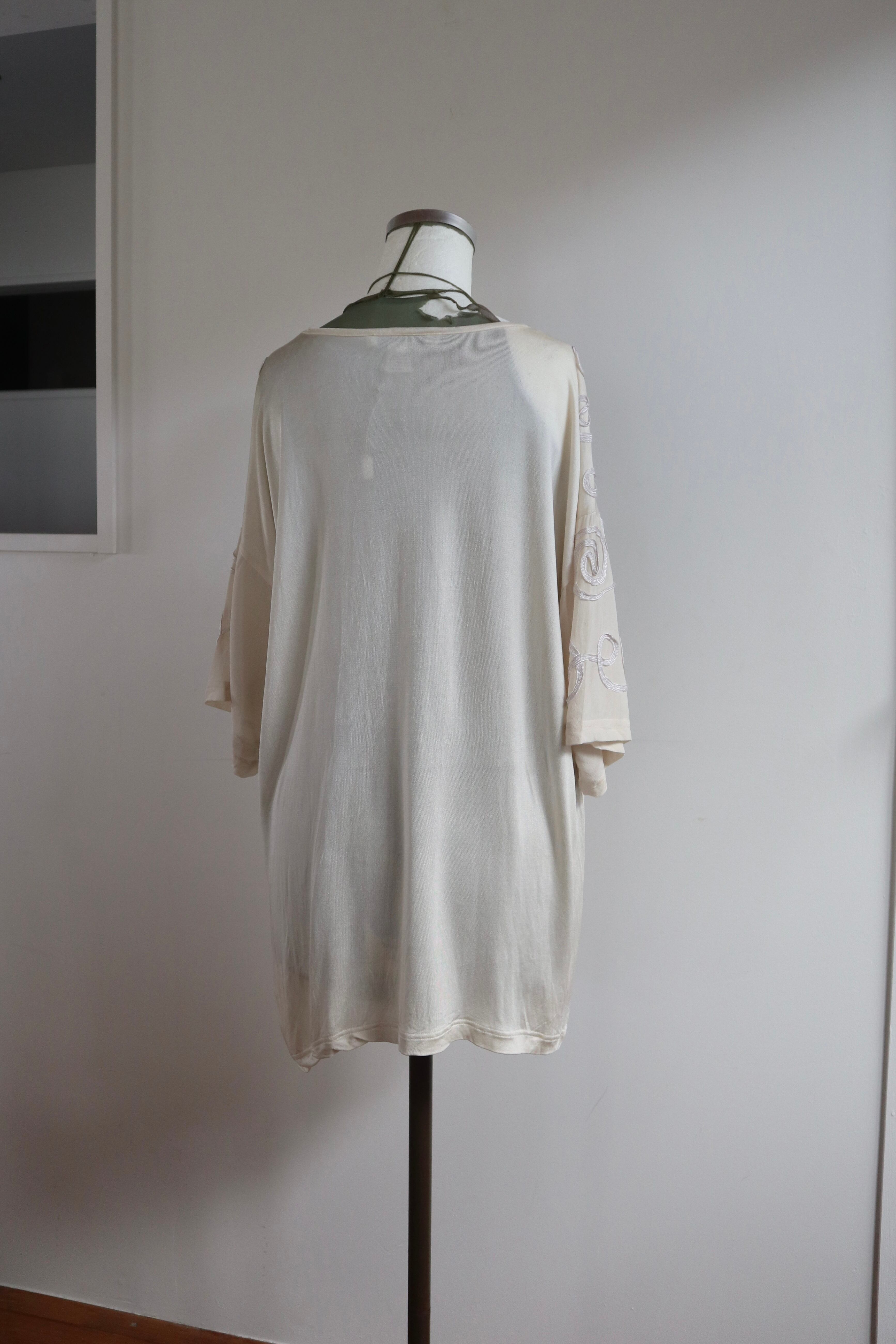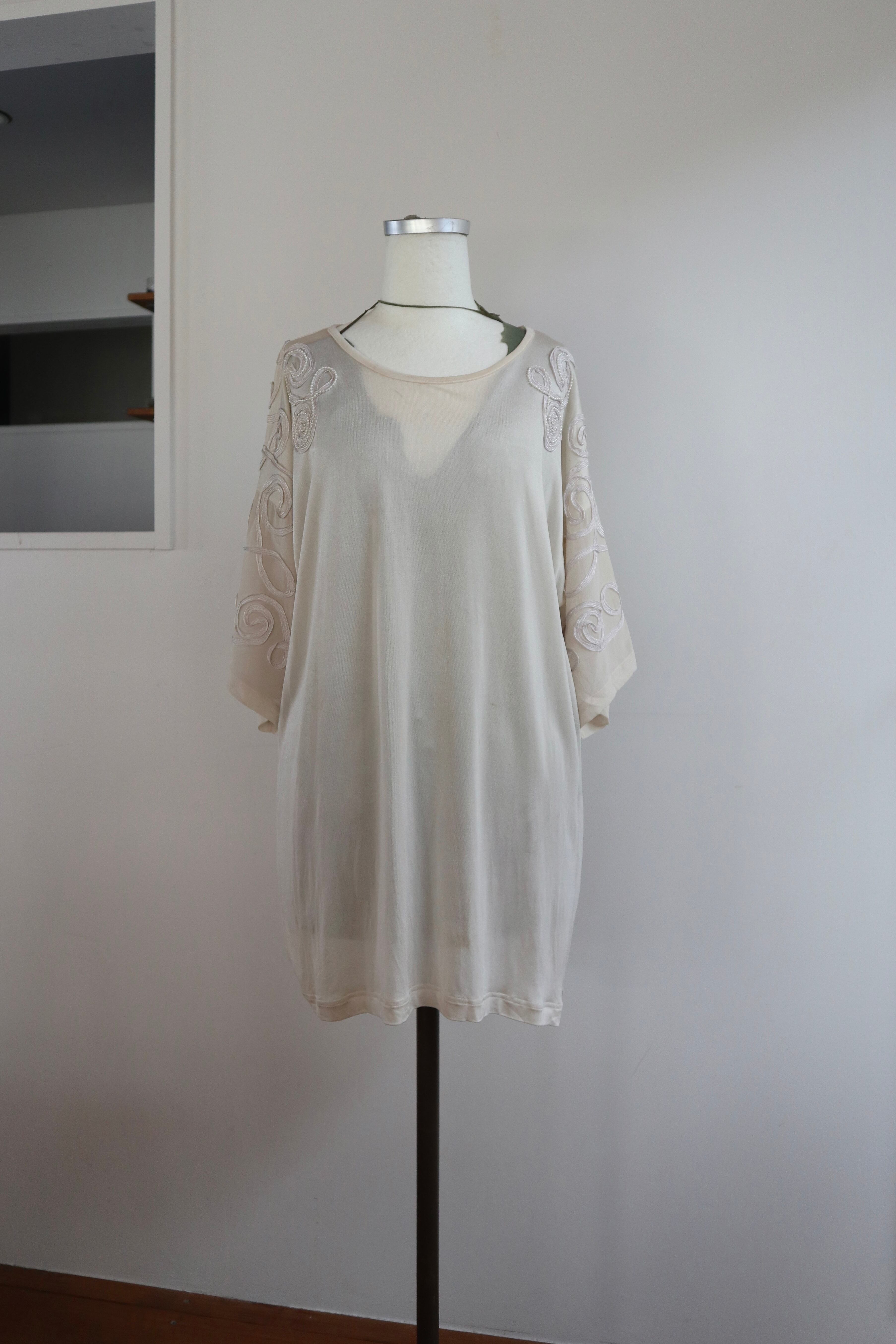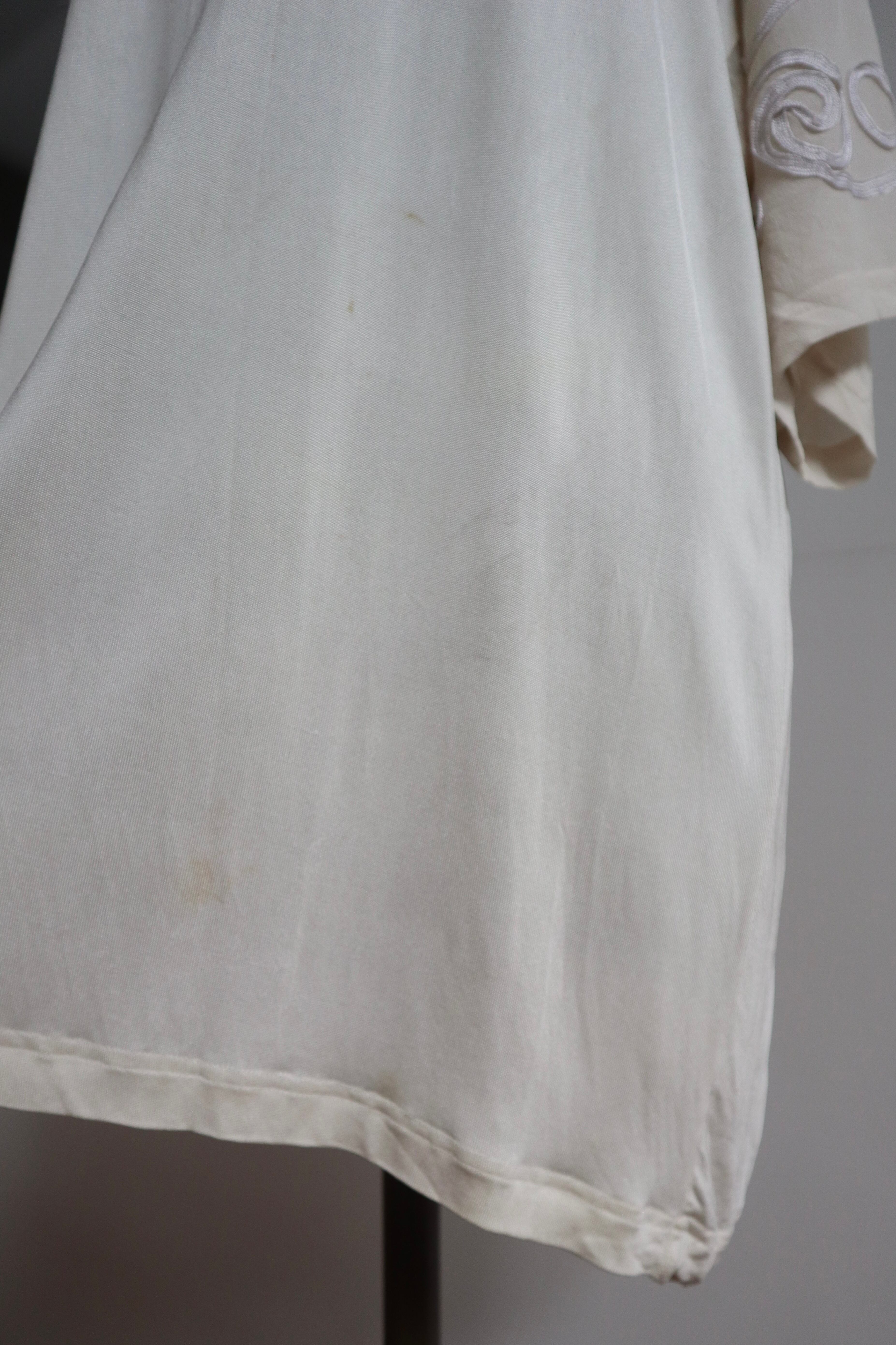 繊細なシルク素材にくるくると装飾刺繍が立体的に施されたヴィンテージシルクトップス