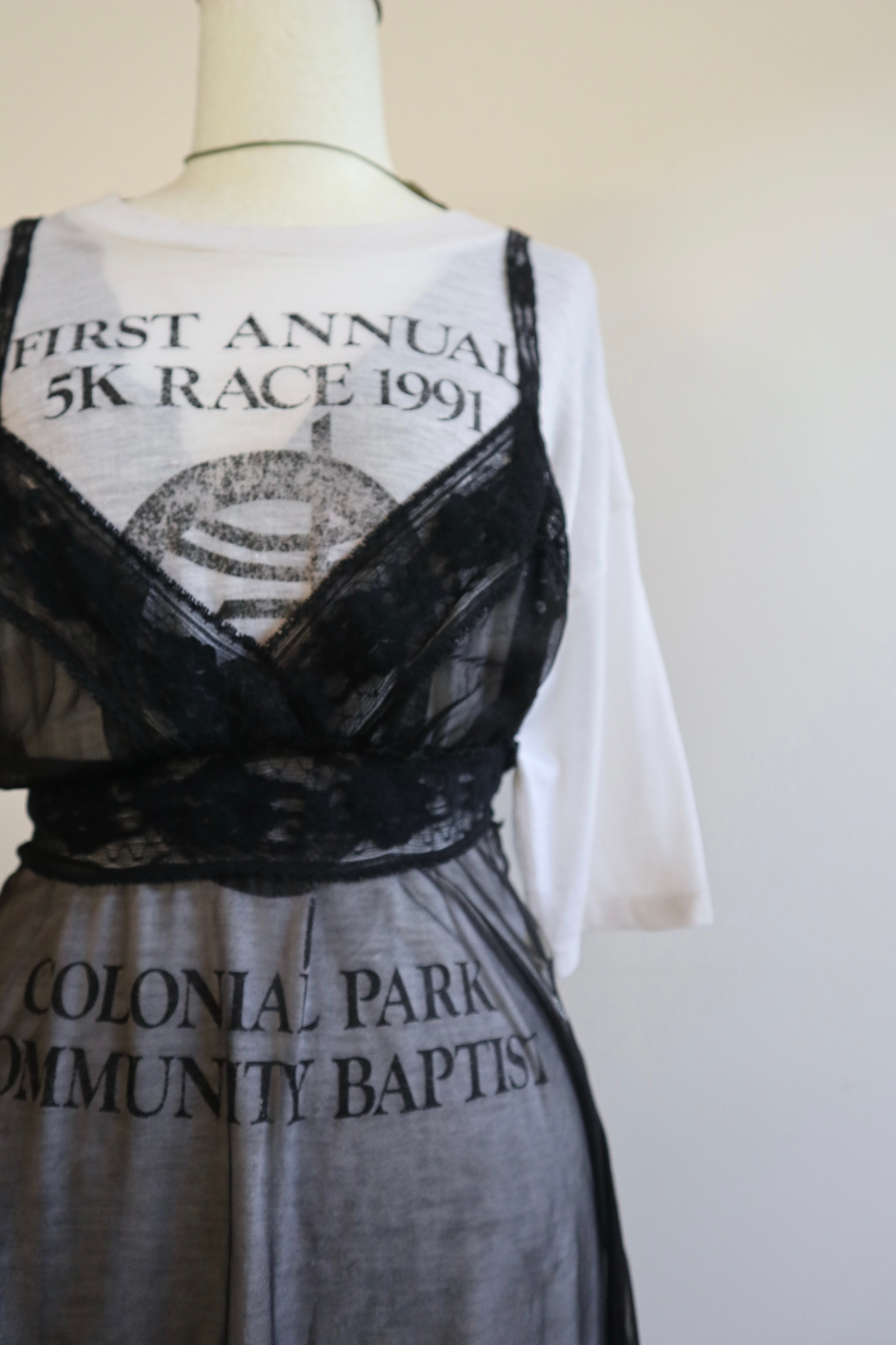 レースの肩紐を縛り着丈を調節することも可能です。