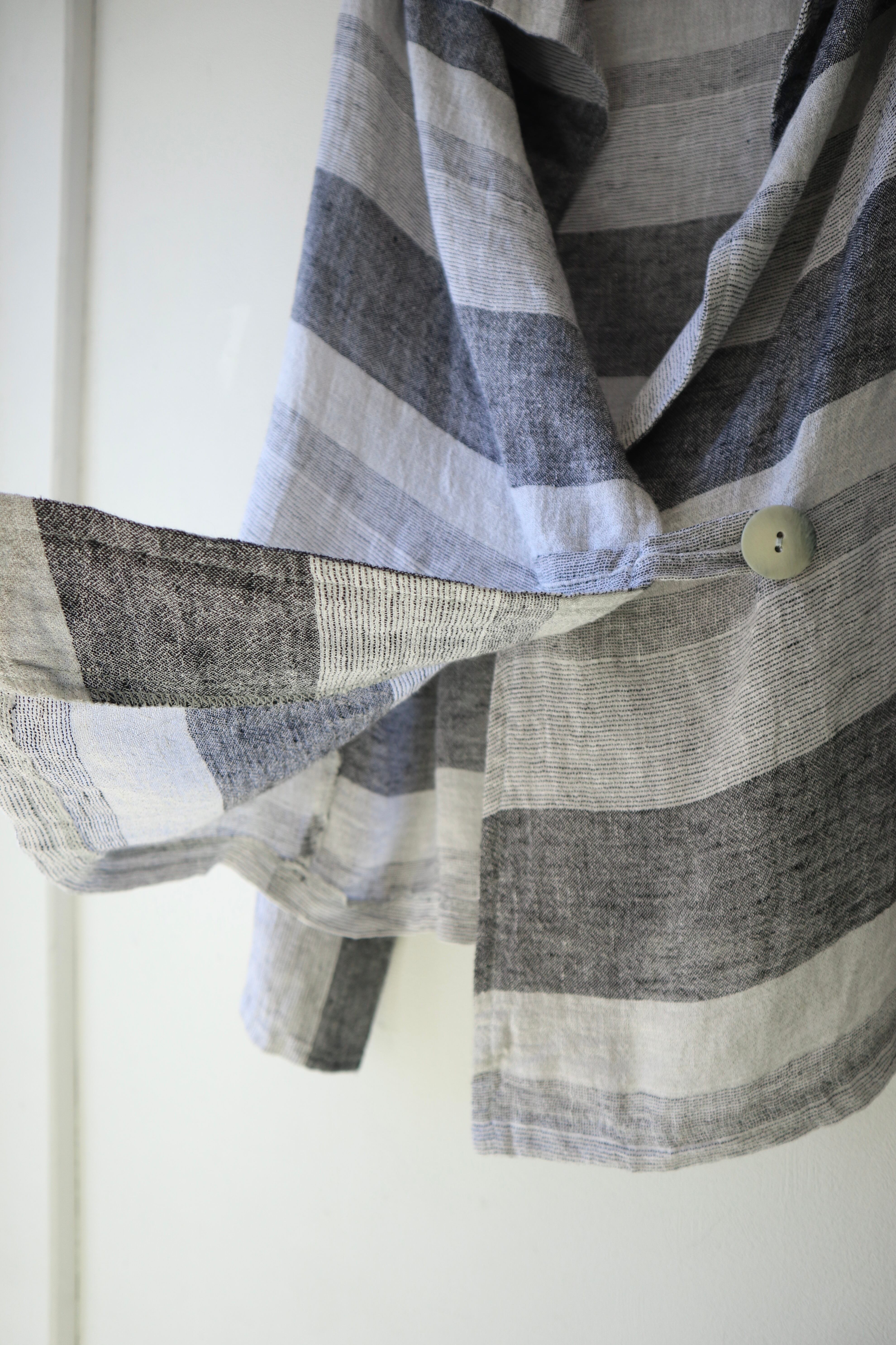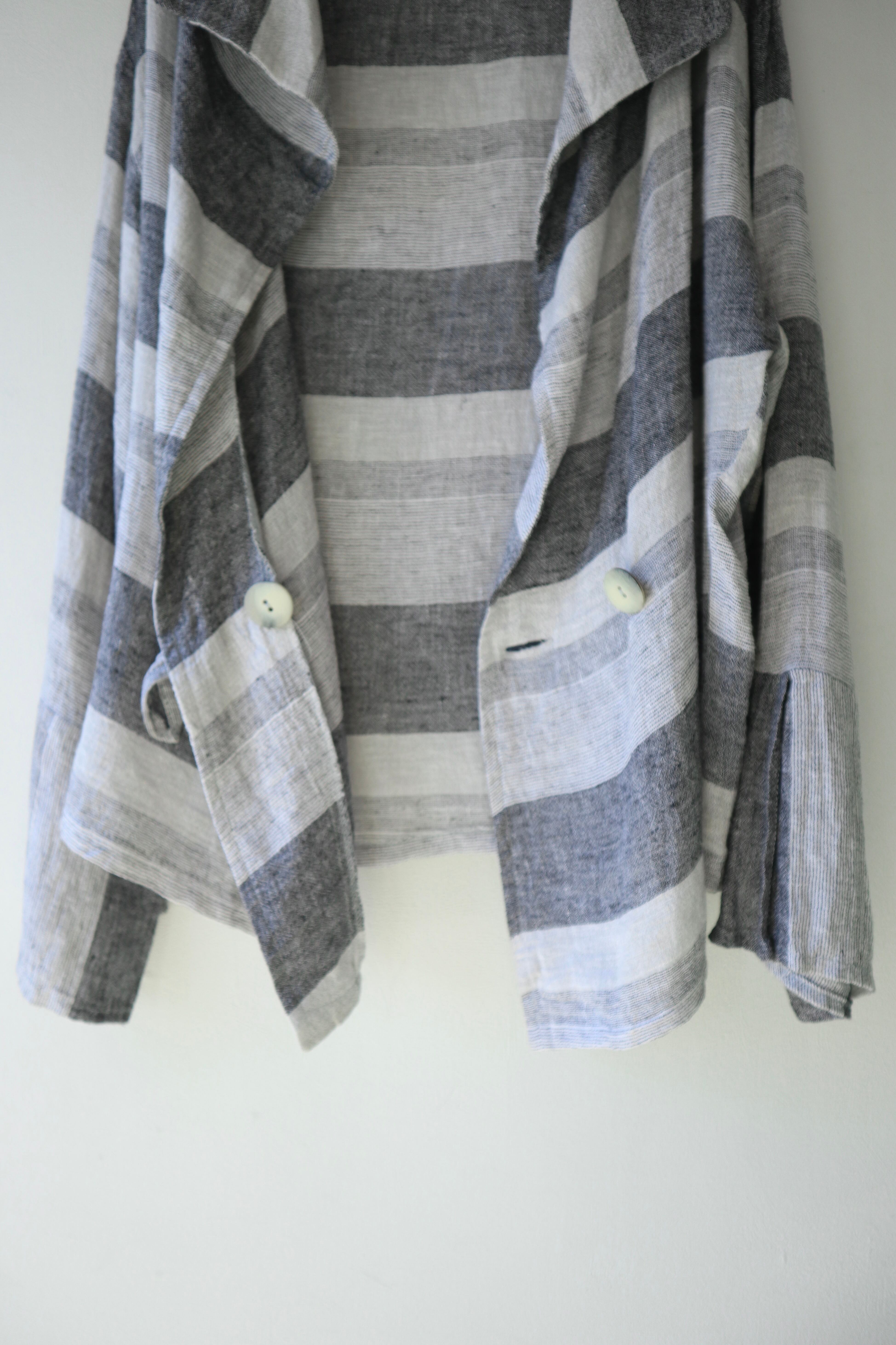 フロントに大きなボタンがついたリネンジャケット