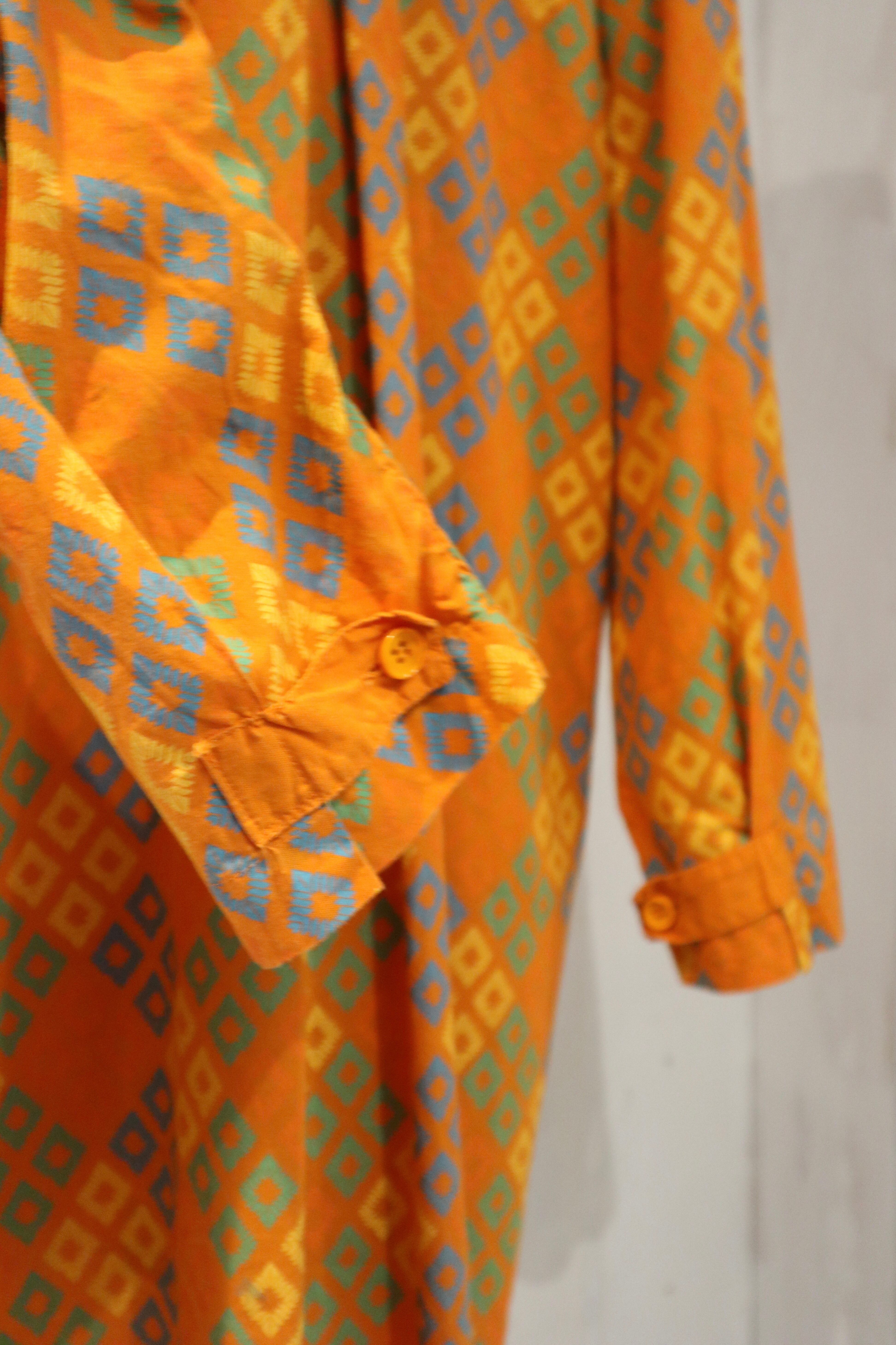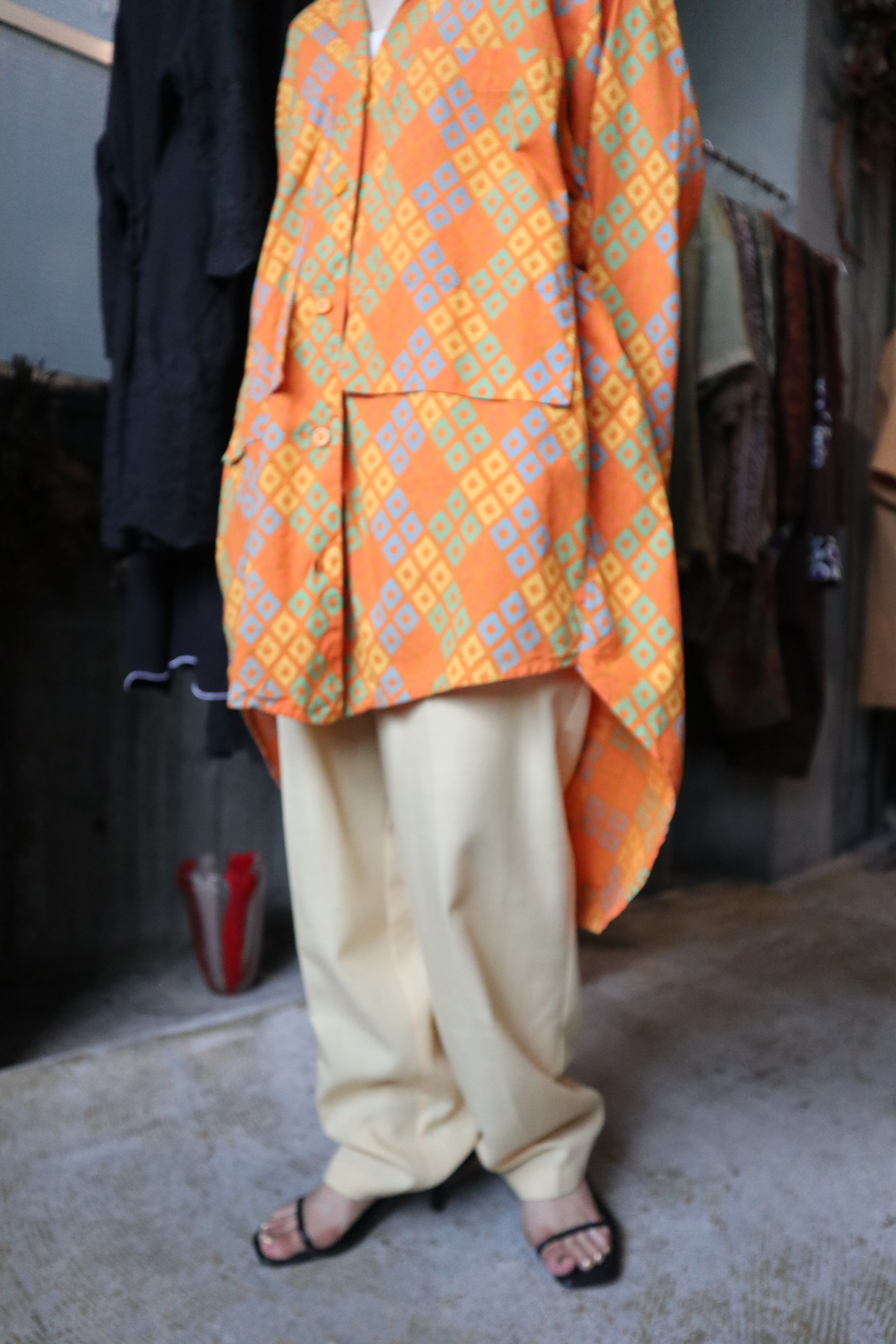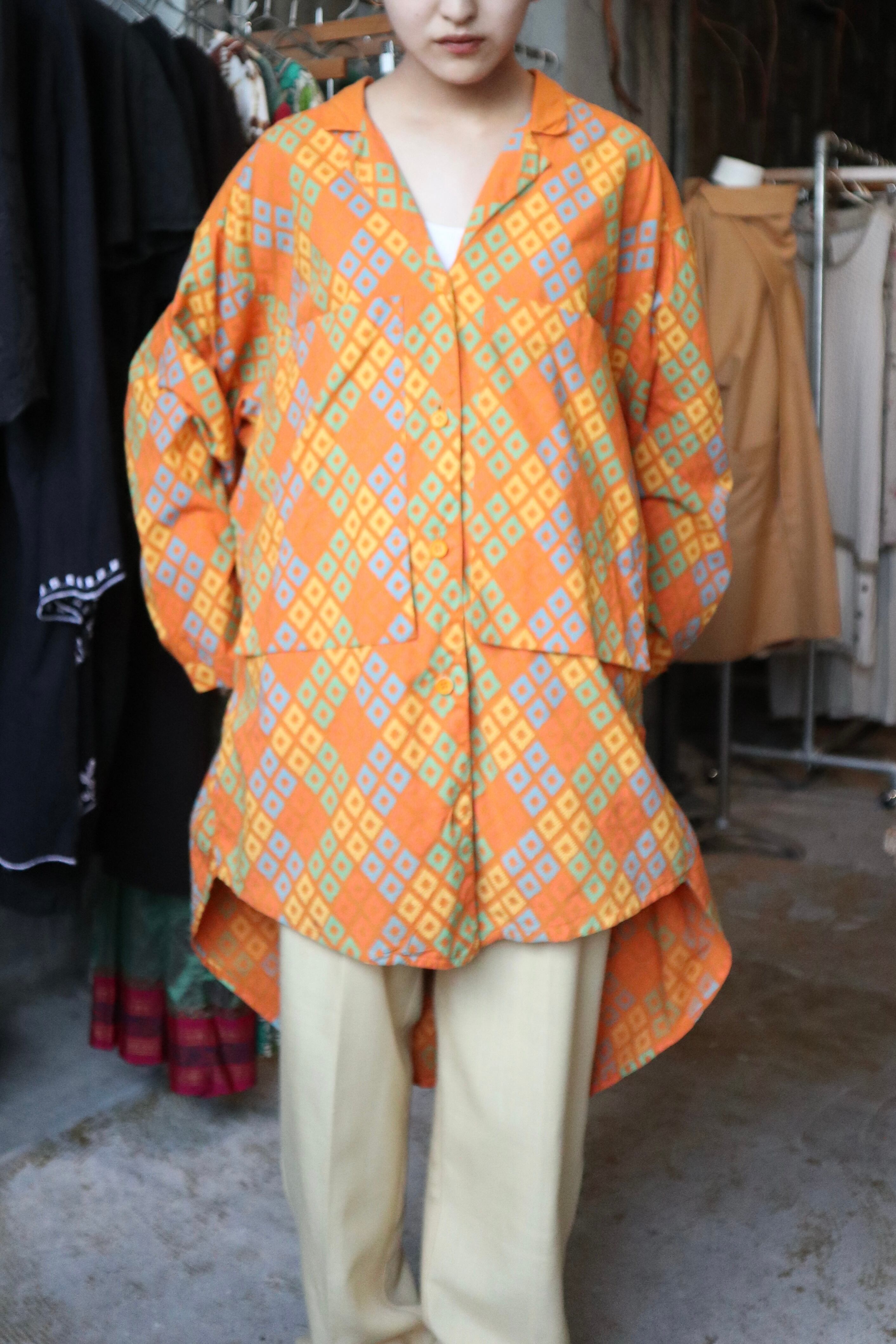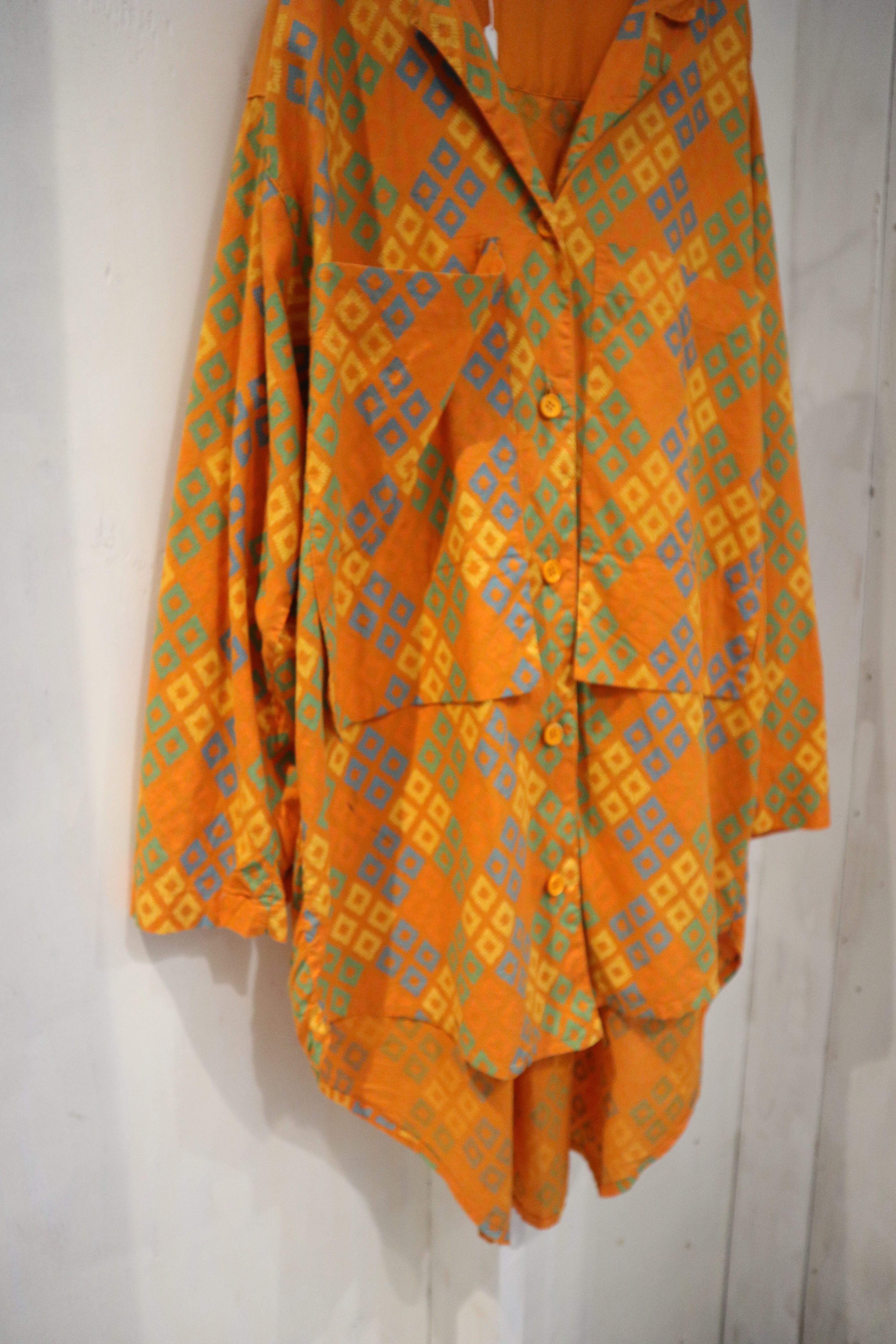 カラフルな柄に胸元の大きなポケットが可愛い一着
