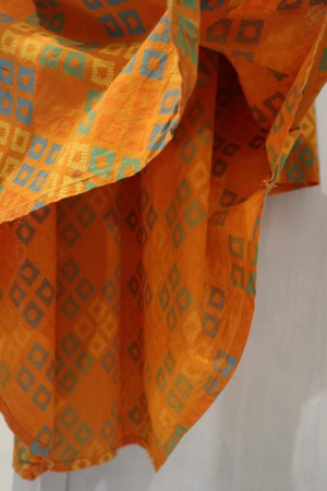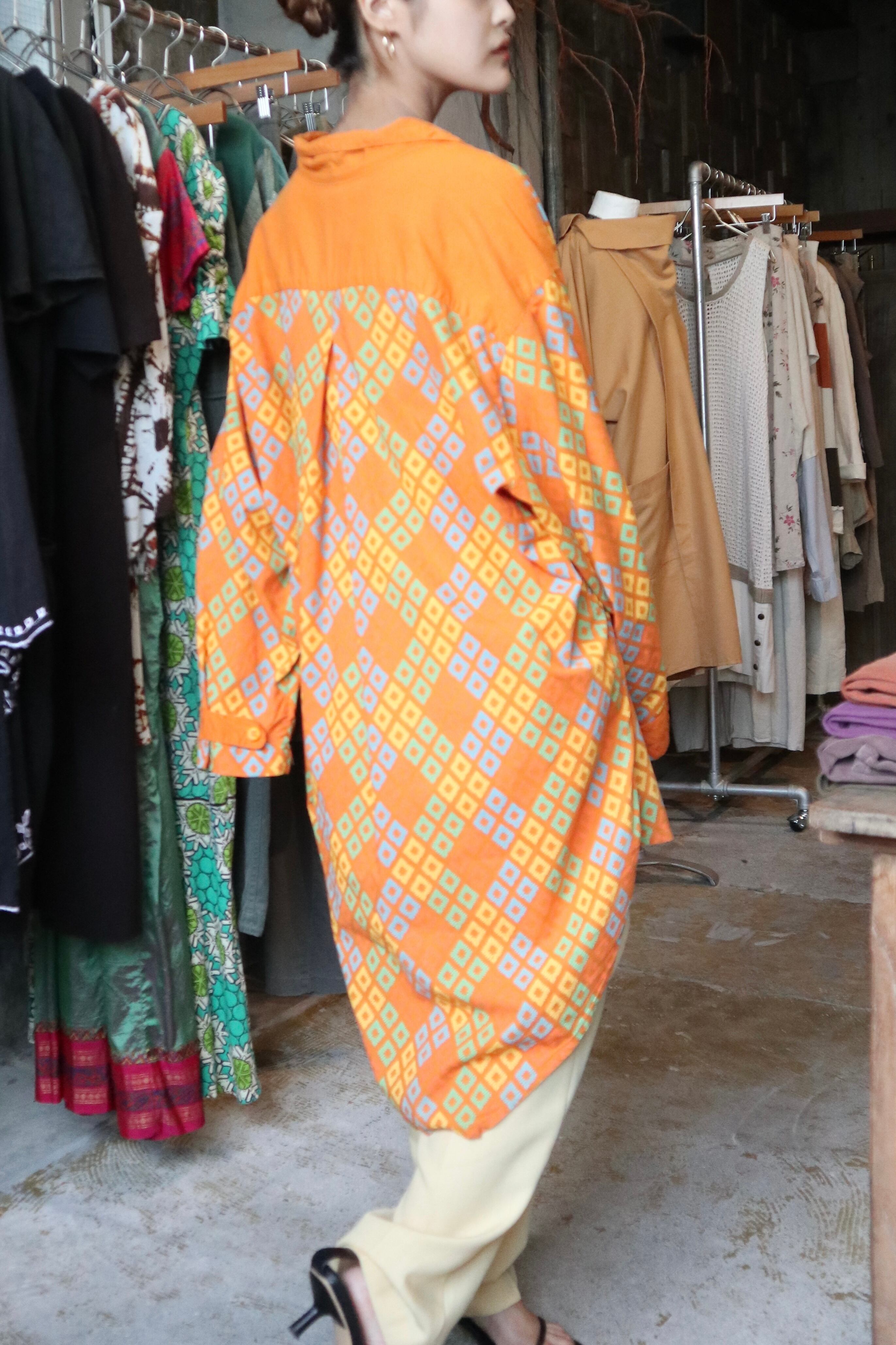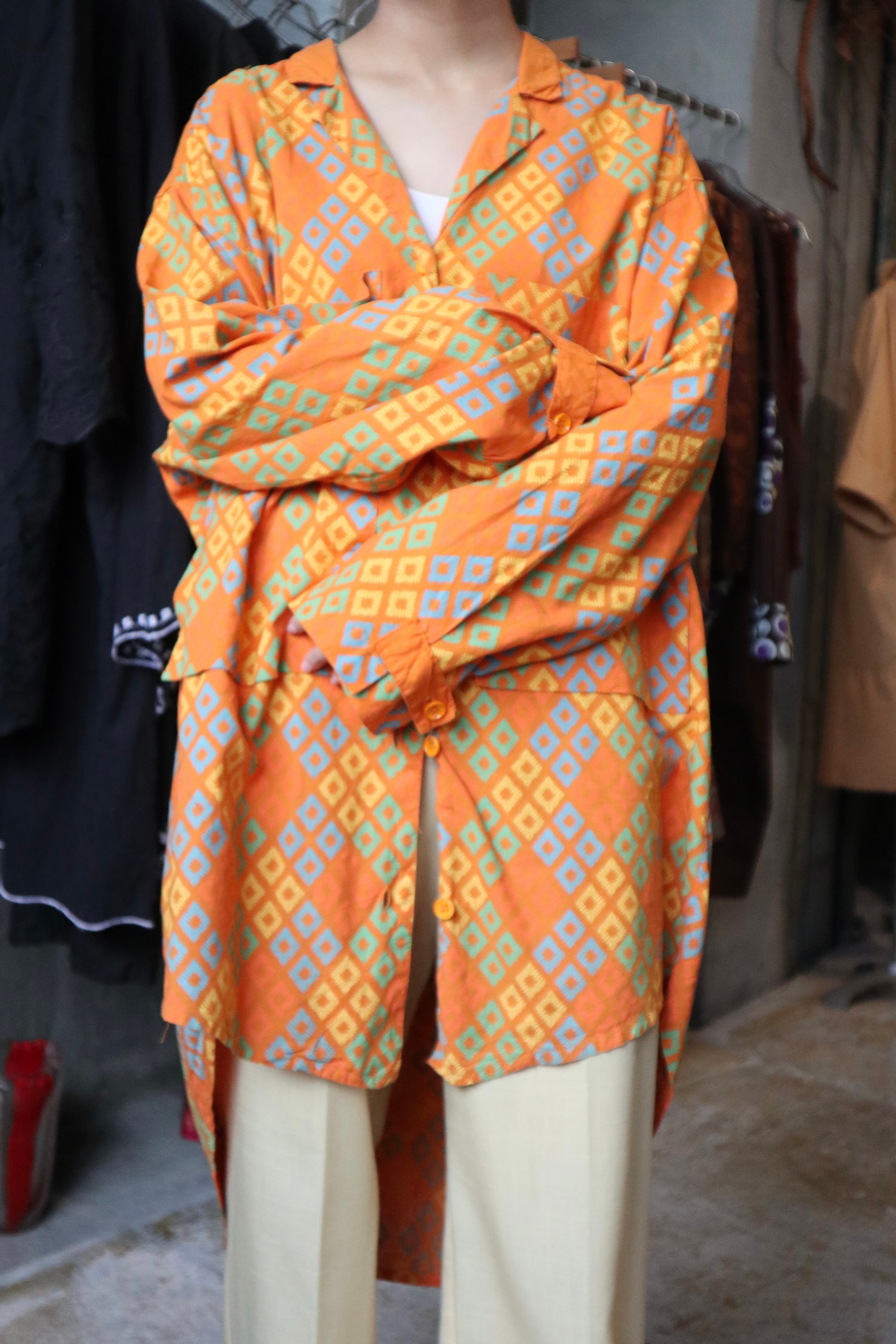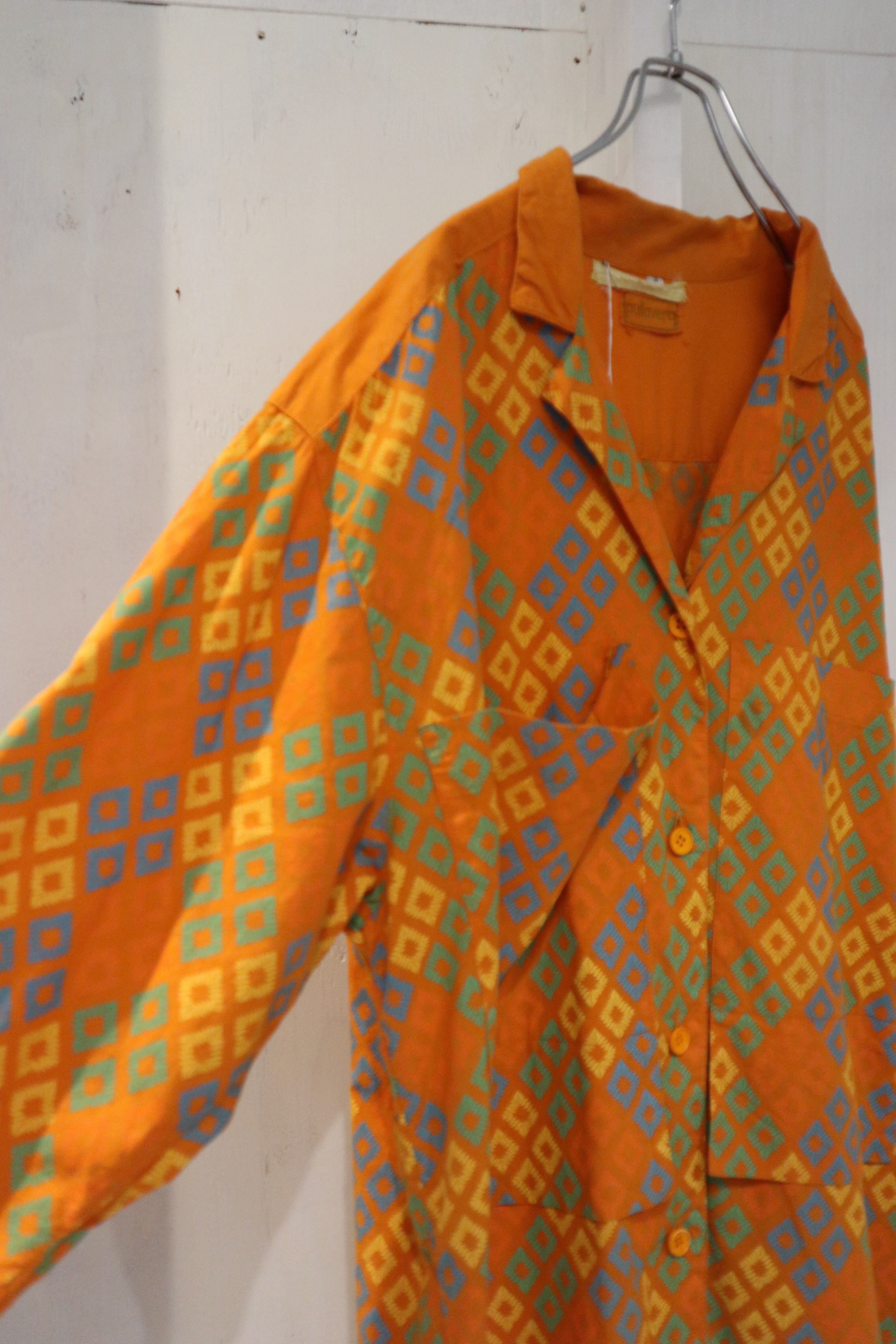 カラフルな柄に胸元の大きなポケットが可愛い一着