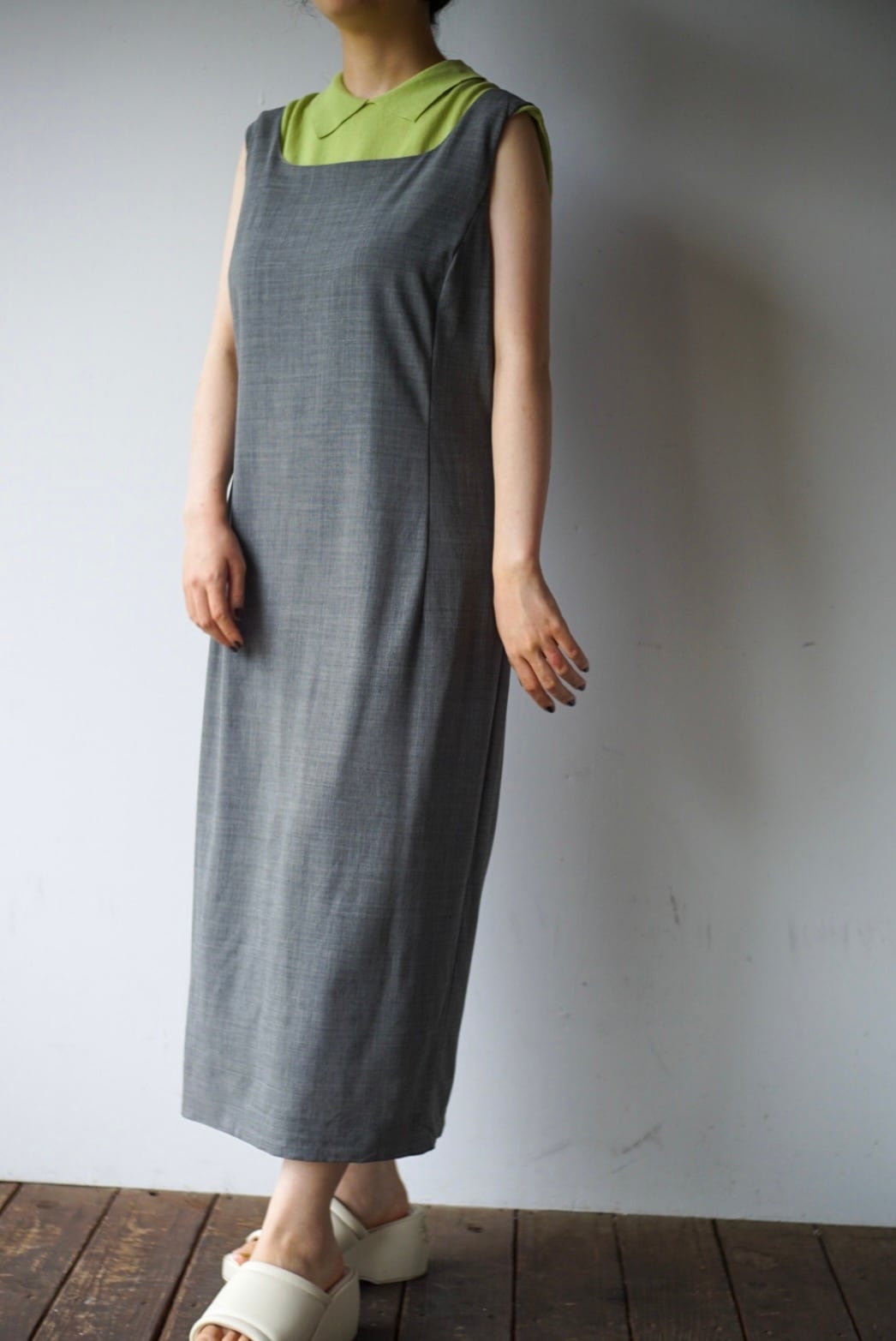 ストレートなIラインシルエットに後ろの裾にはスリットが入り、グレーカラーがシックで大人可愛いワンピース