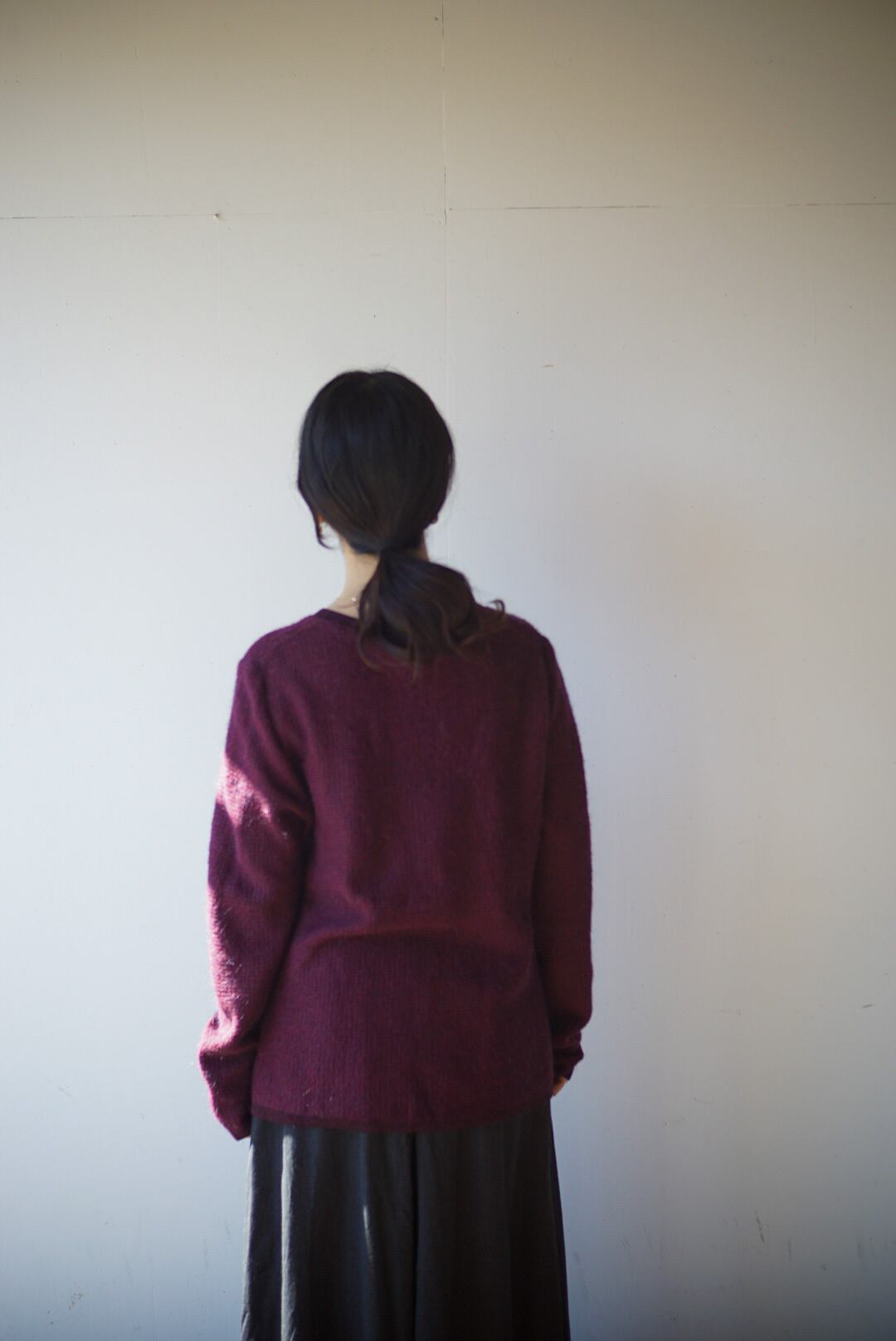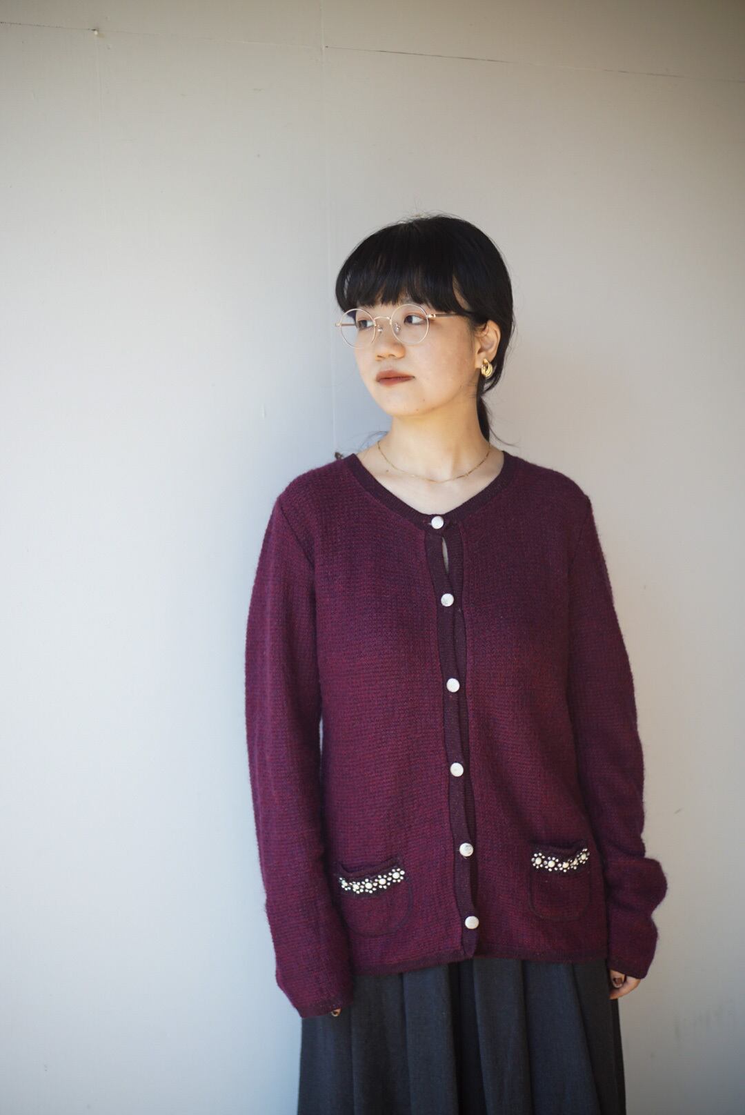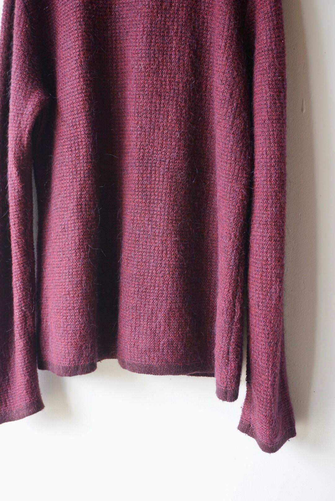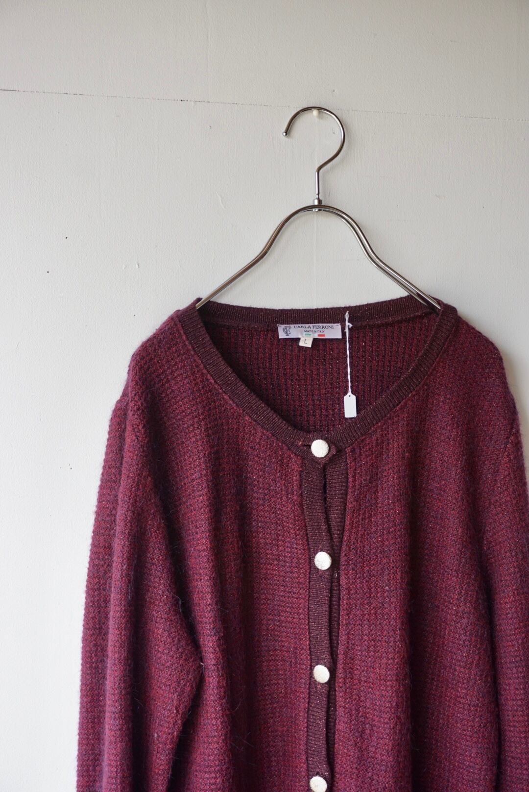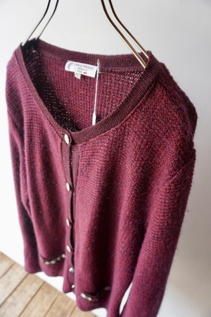 バーガンディーカラーのモヘアニットカーディガン