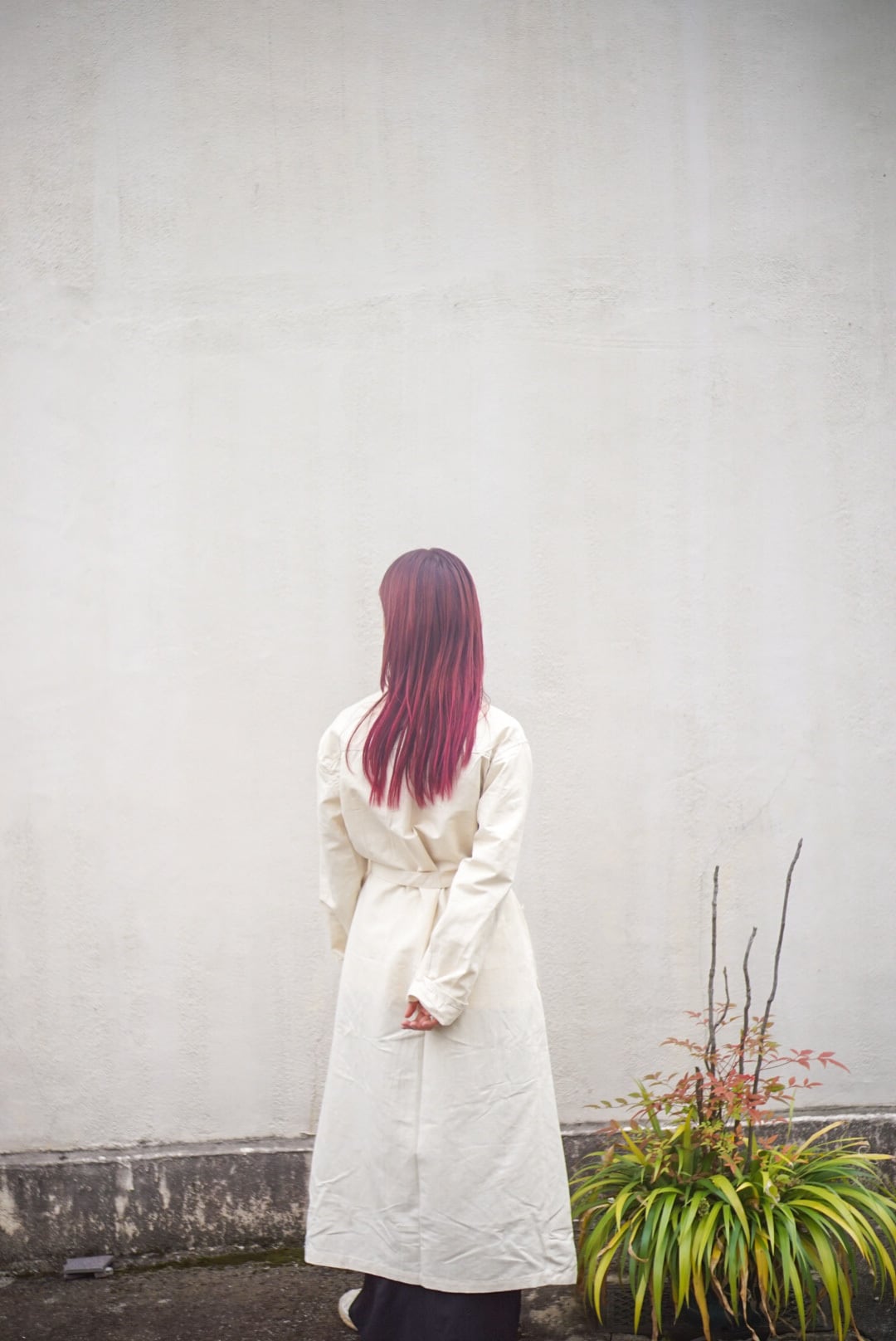 オープンカラーで大きな襟がポイントになり、背中のベルトでウエストマーク可能です