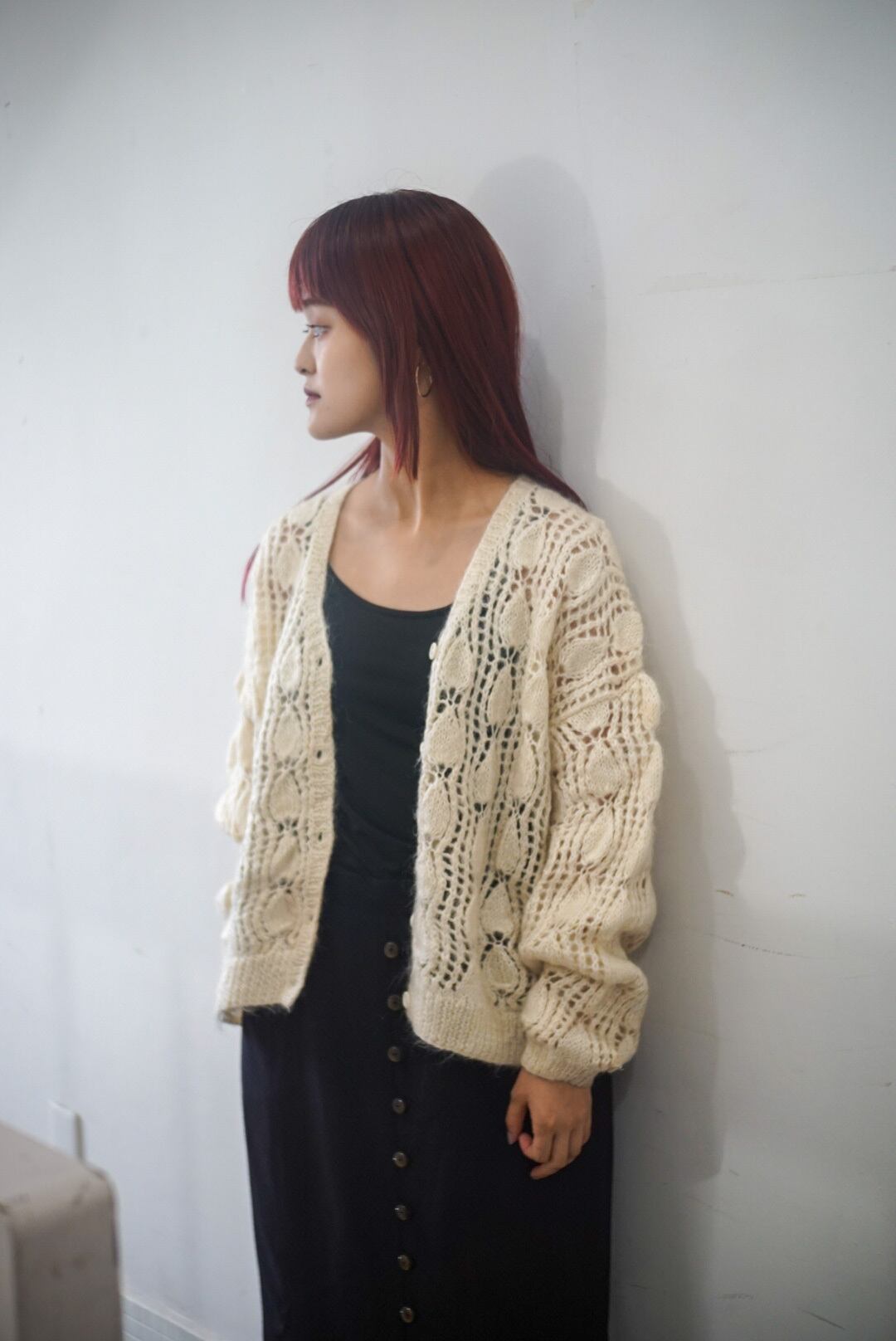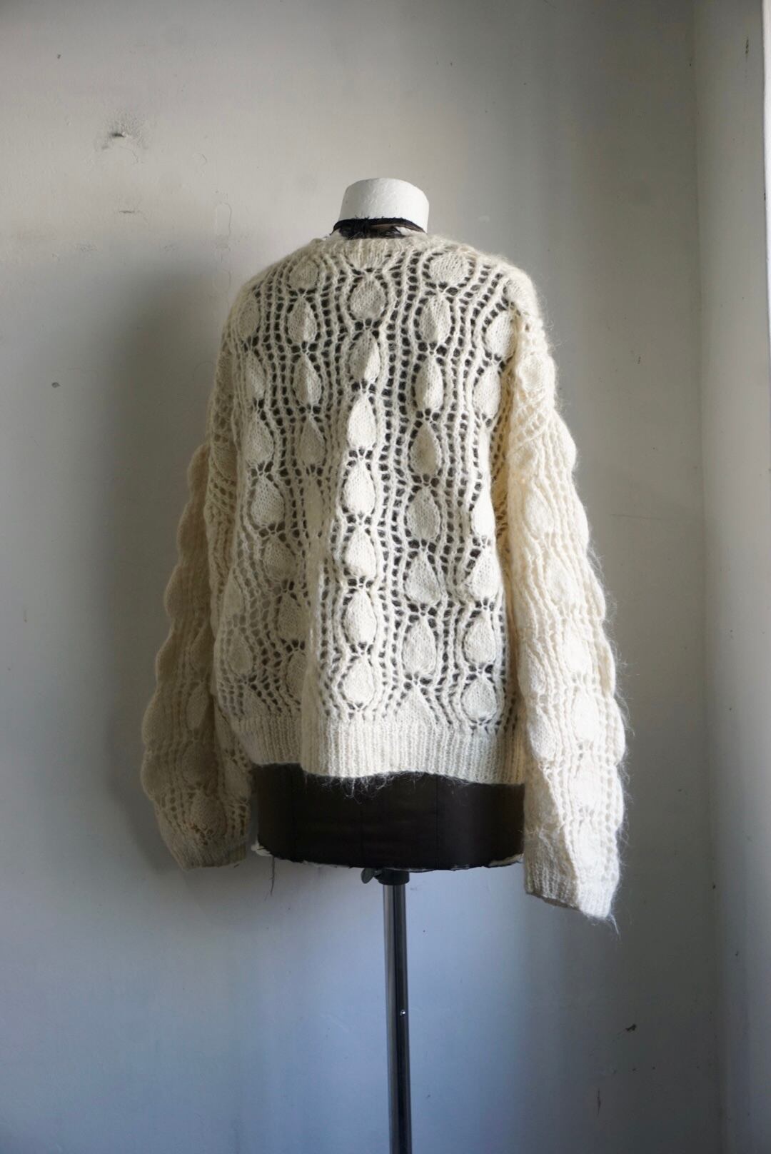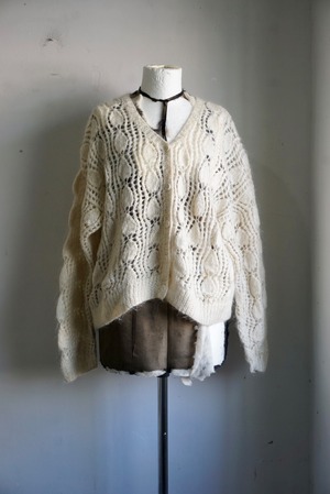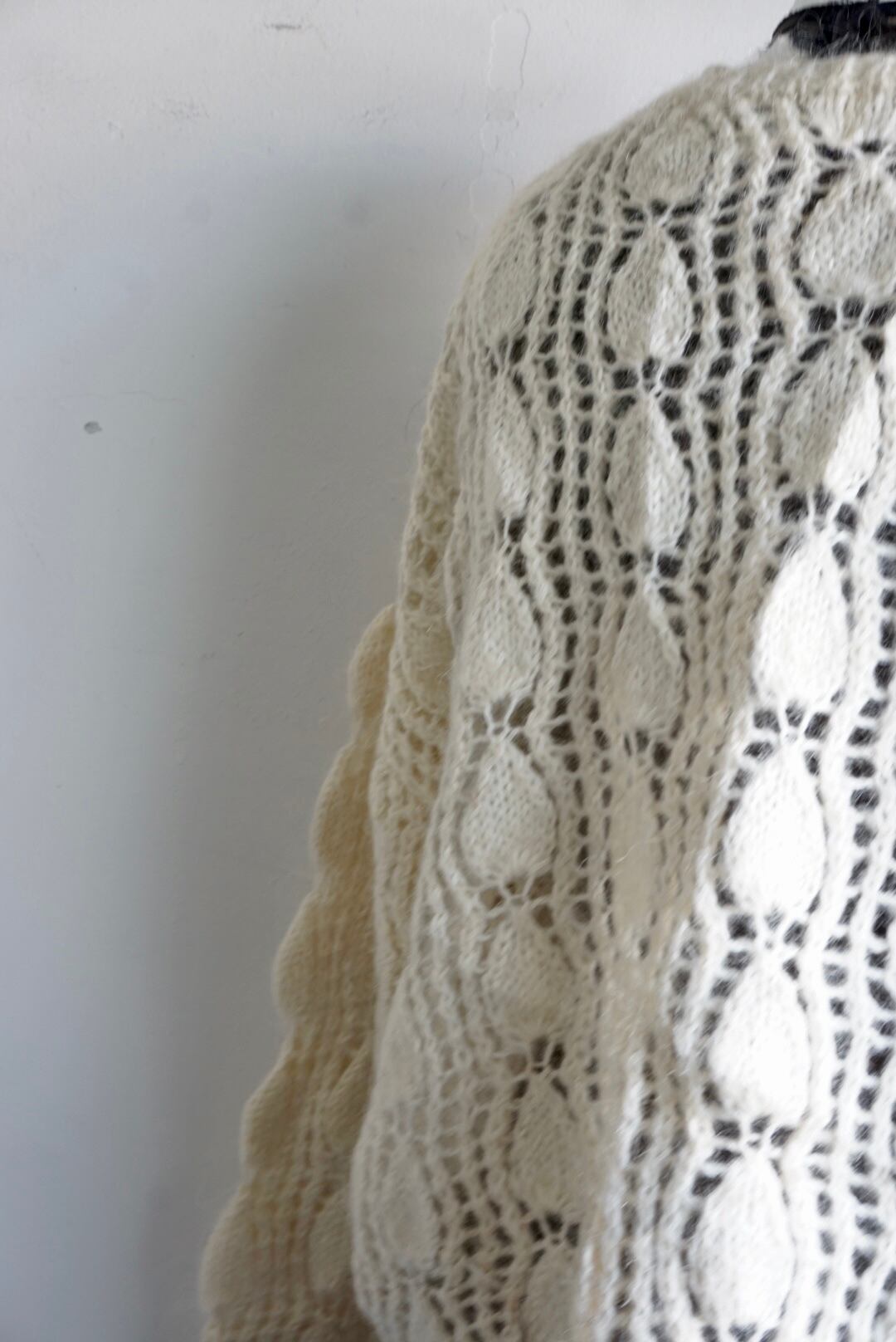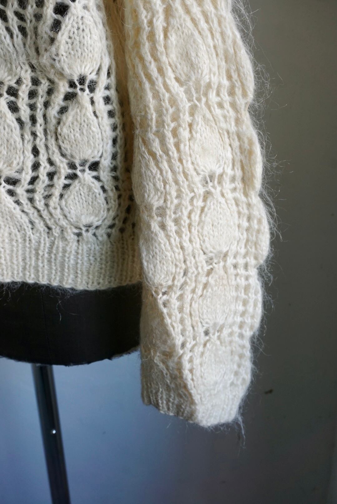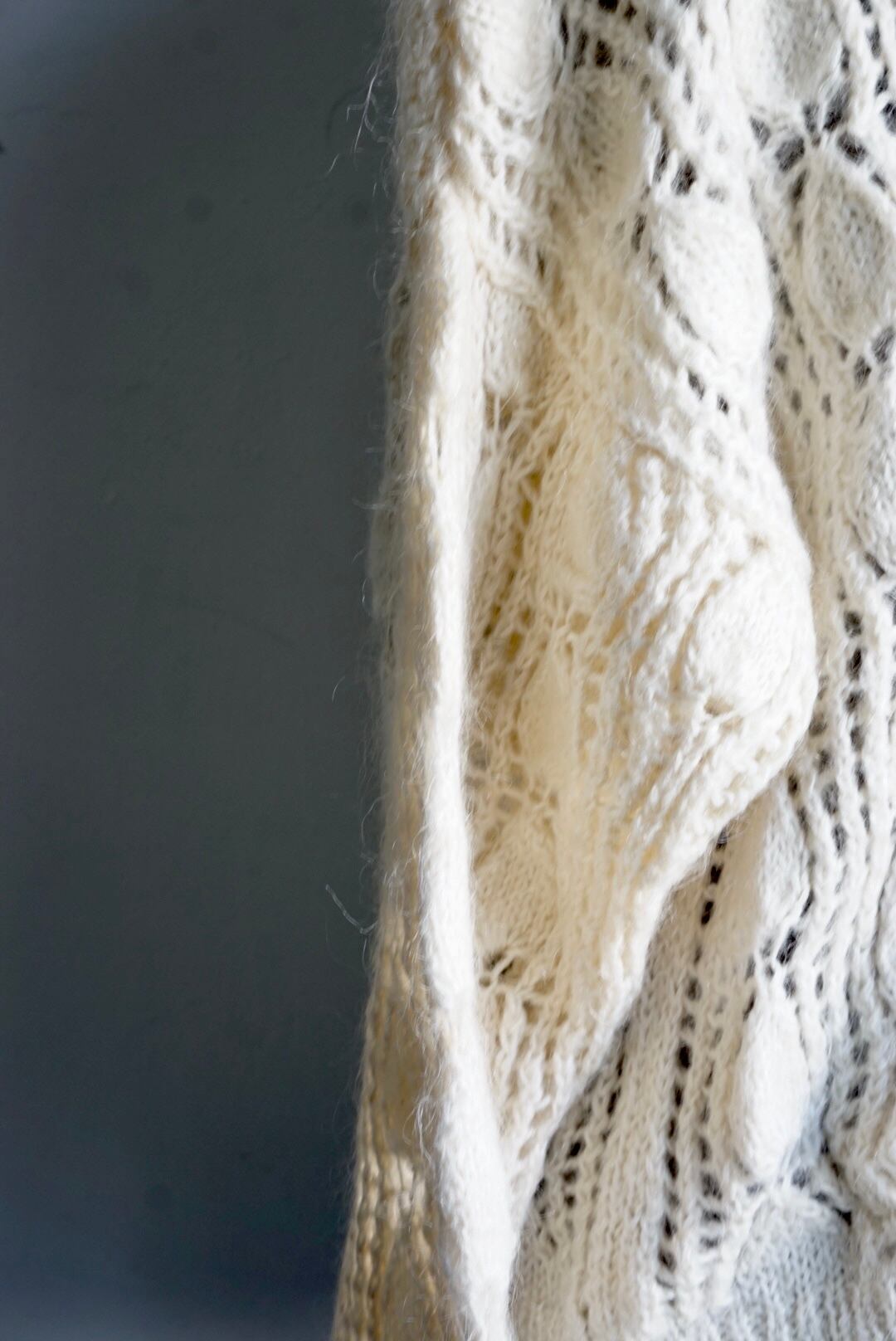 毛足の長いモヘアの素材が入っていて、柄が大きくざっくりと編まれています。