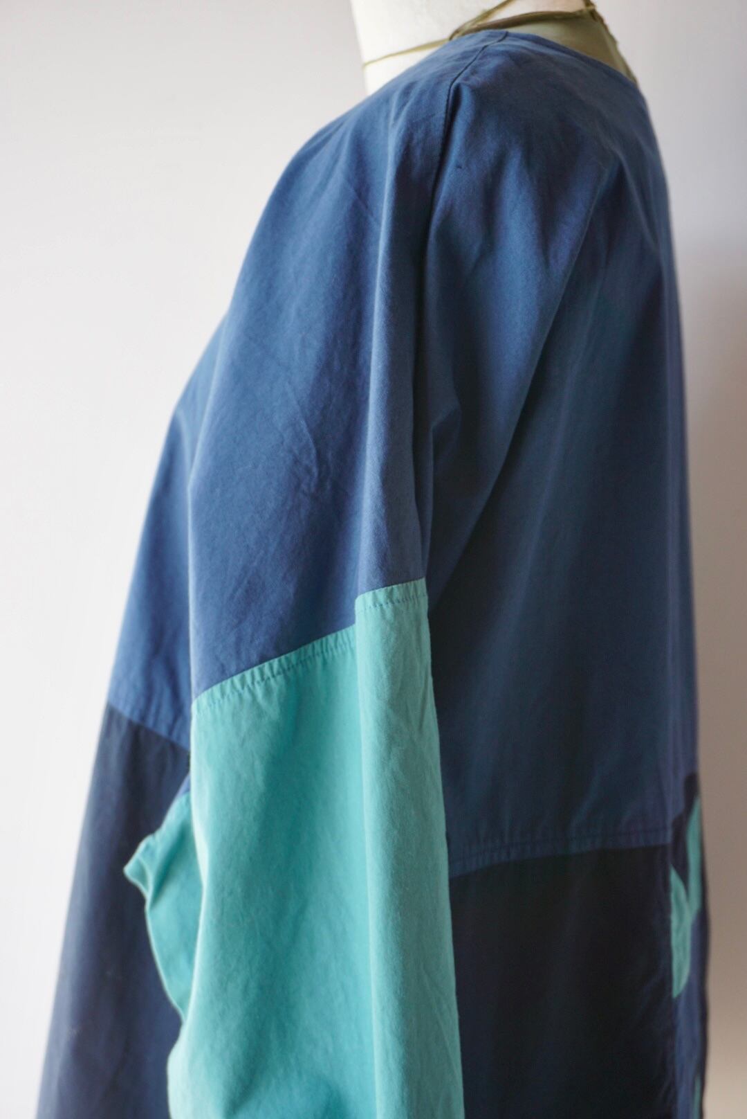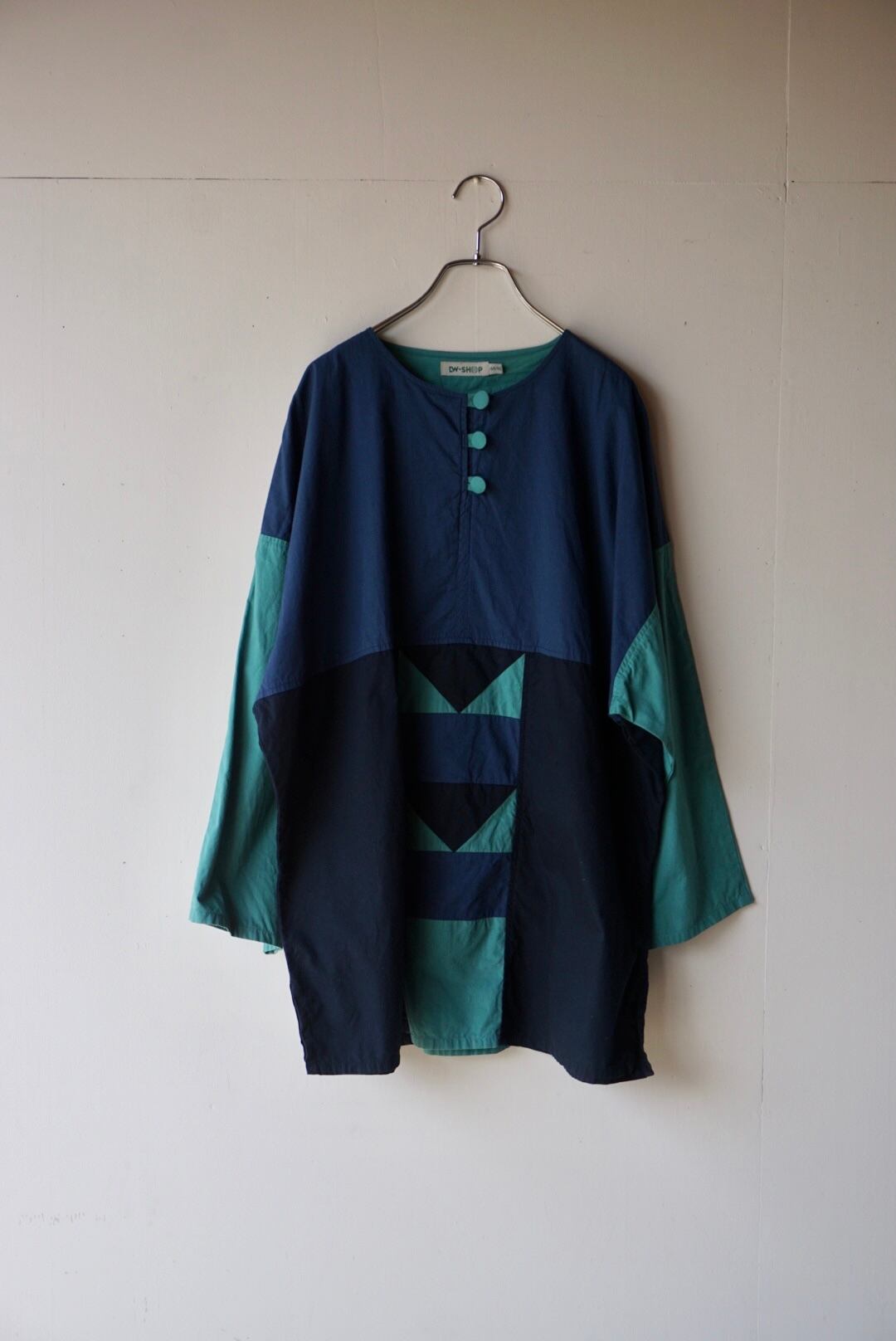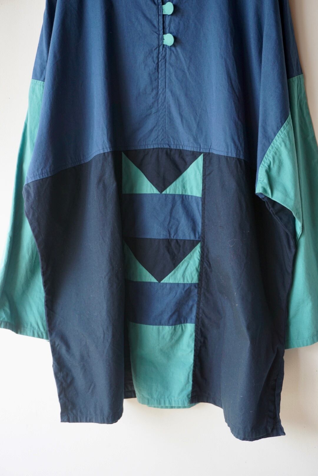 パッチワークなような切り替えデザインがユニークで寒色カラーが大人可愛い1着