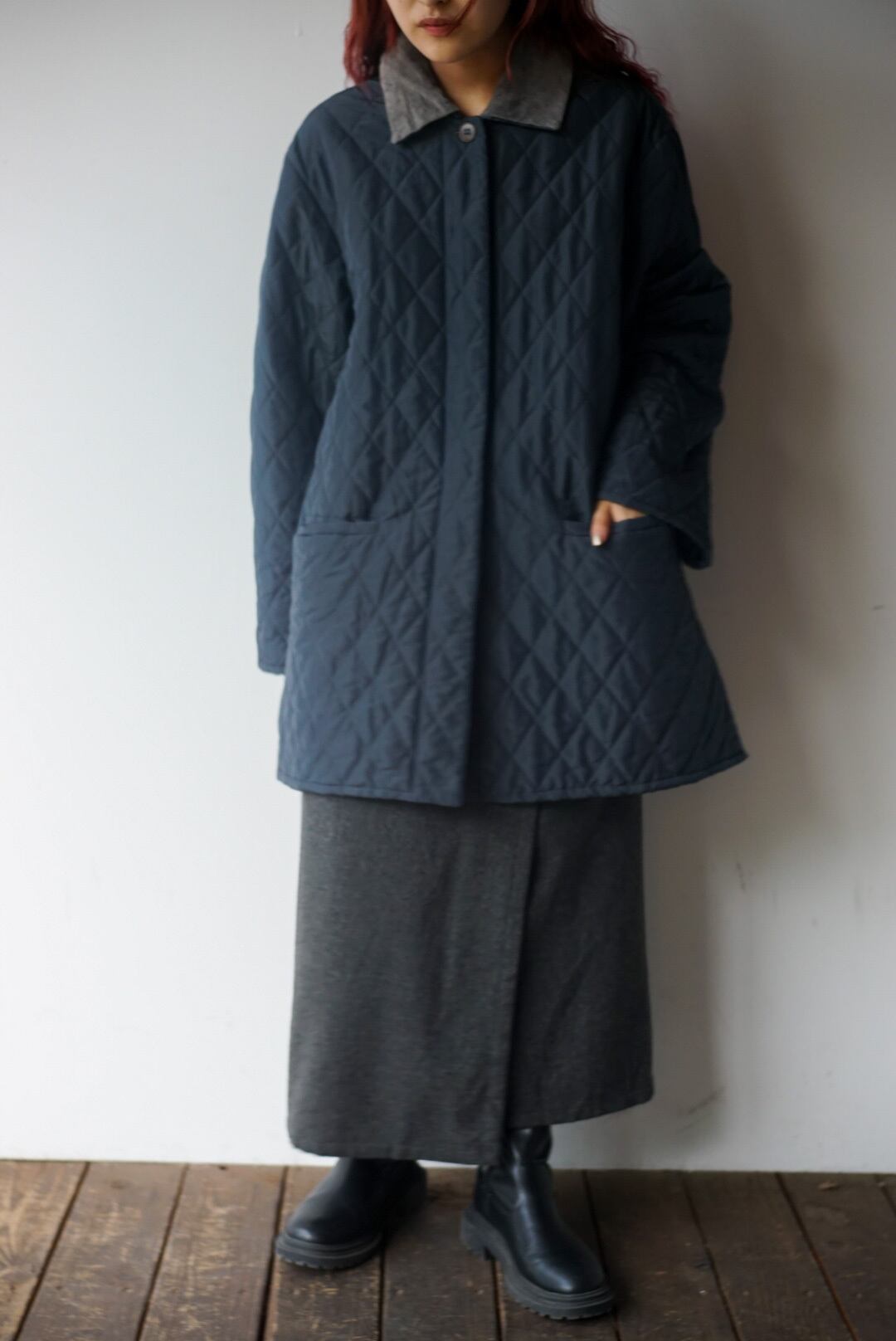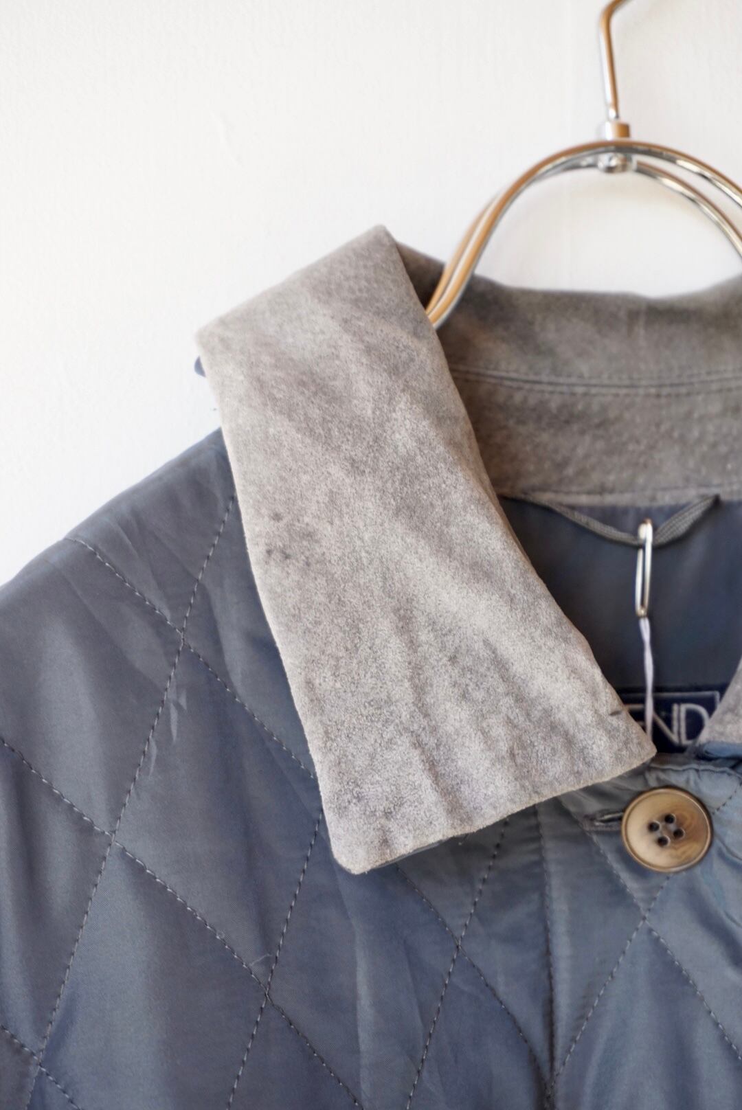 襟はスウェードのような生地で異素材なデザインがポイントになります