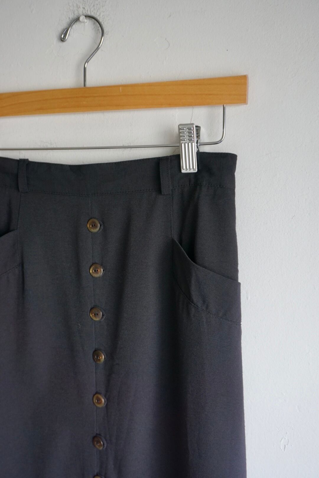 ボタンの下から深いスリット入りのデザインが動きやすくさらっとしたビスコース素材が通年使いやすいアイテムです
