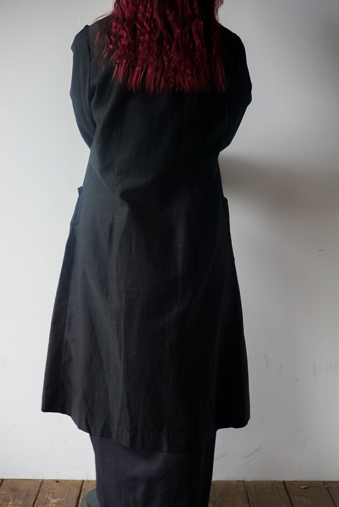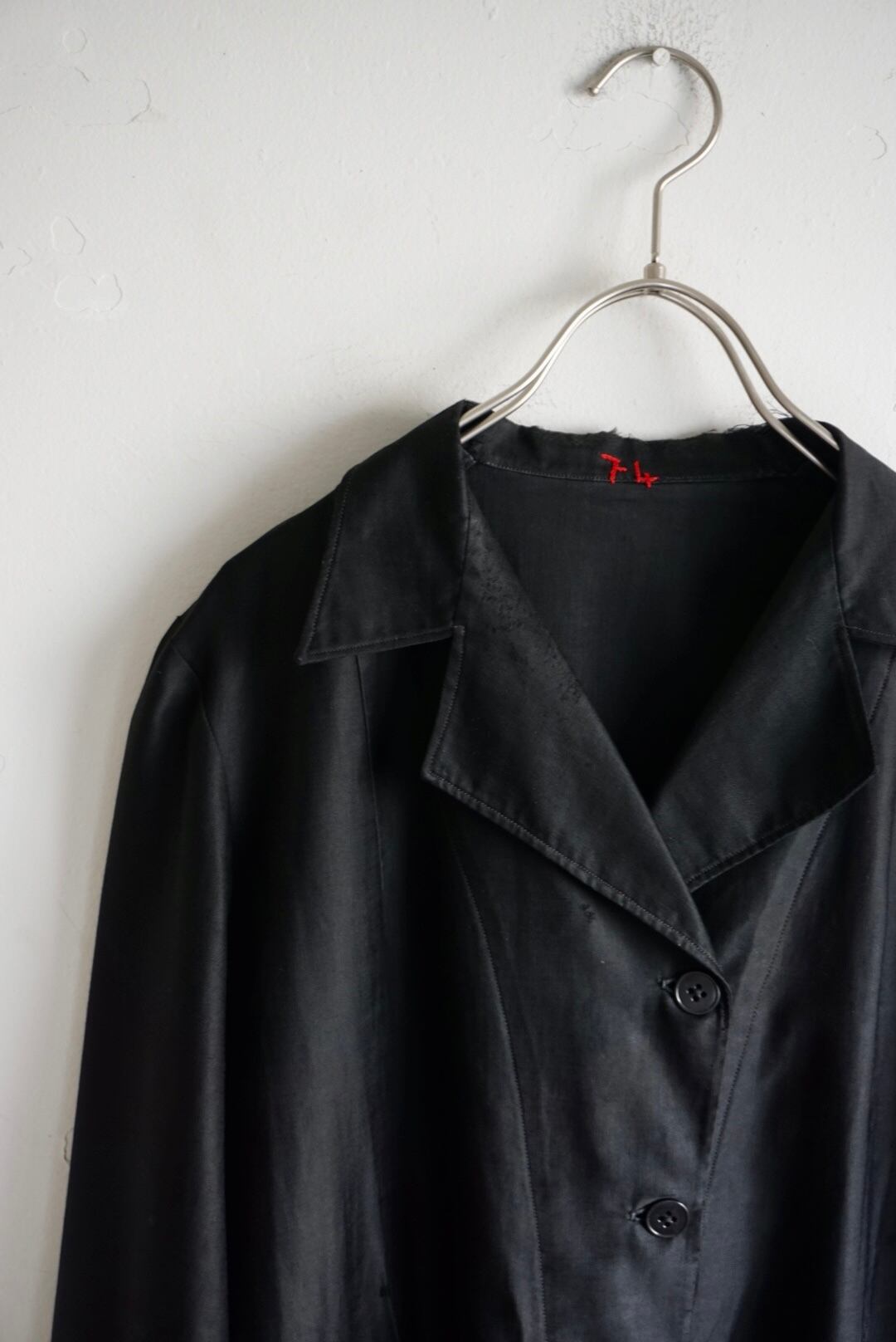 やや光沢感のある素材にAラインに広がるシルエットが綺麗でアンティークの風合いが残る洗練されたワークコート