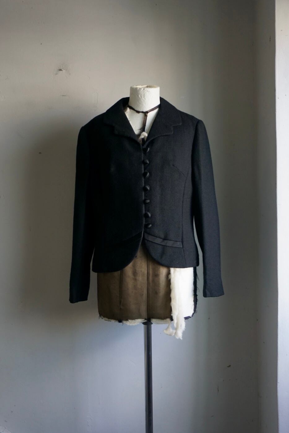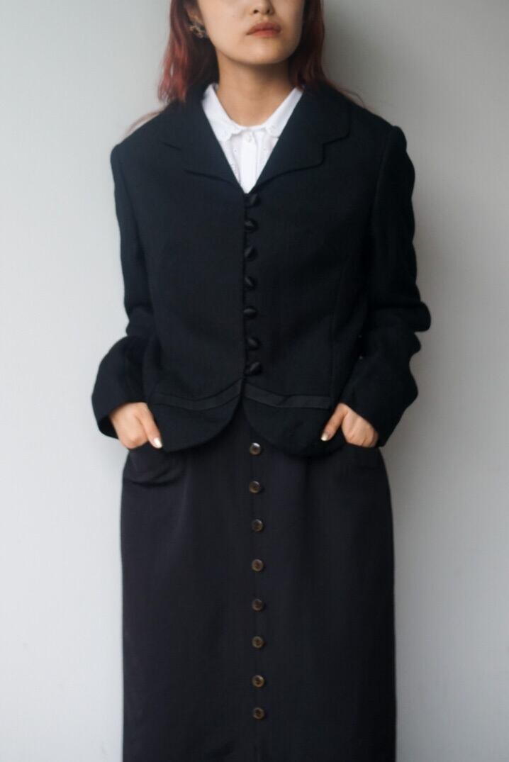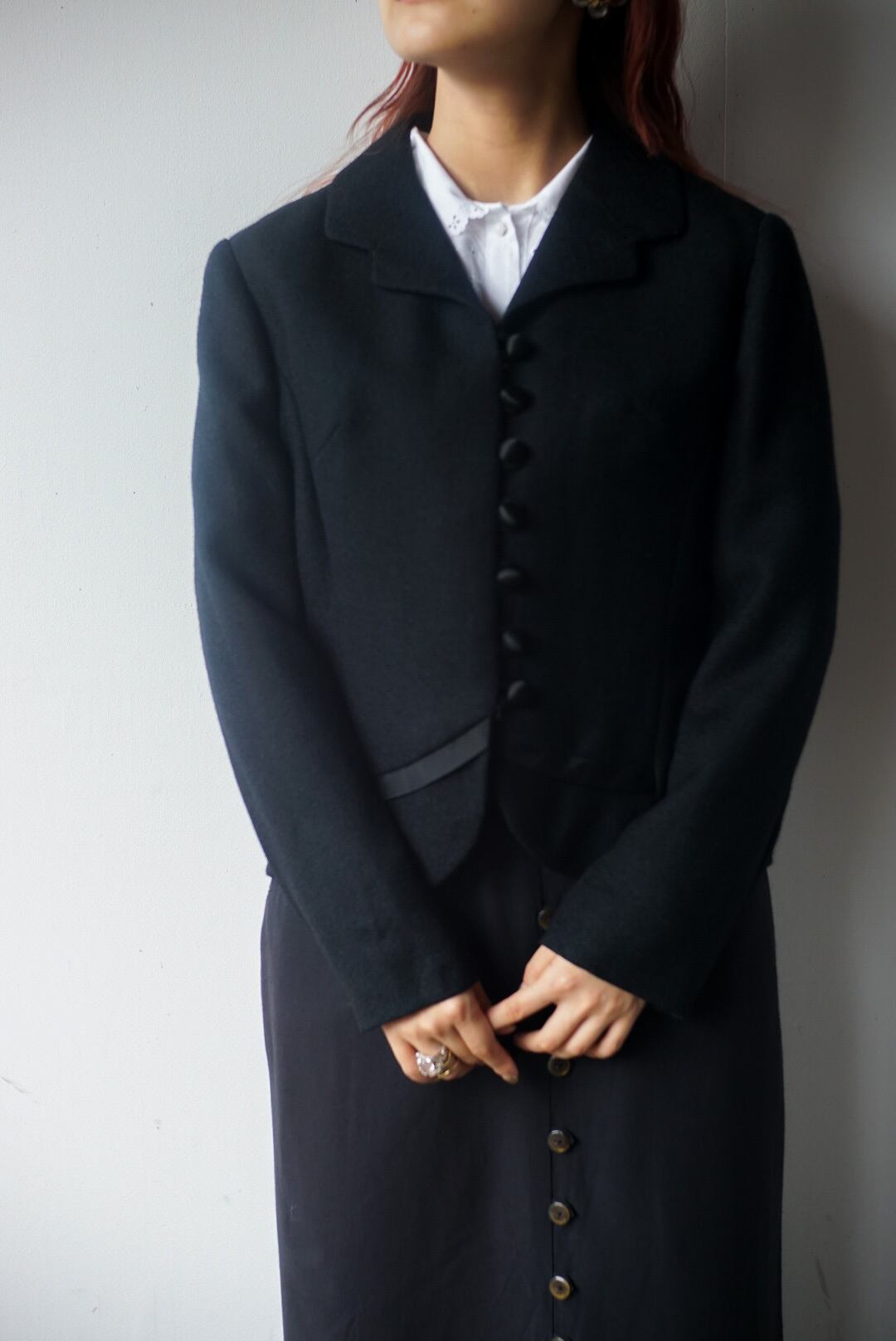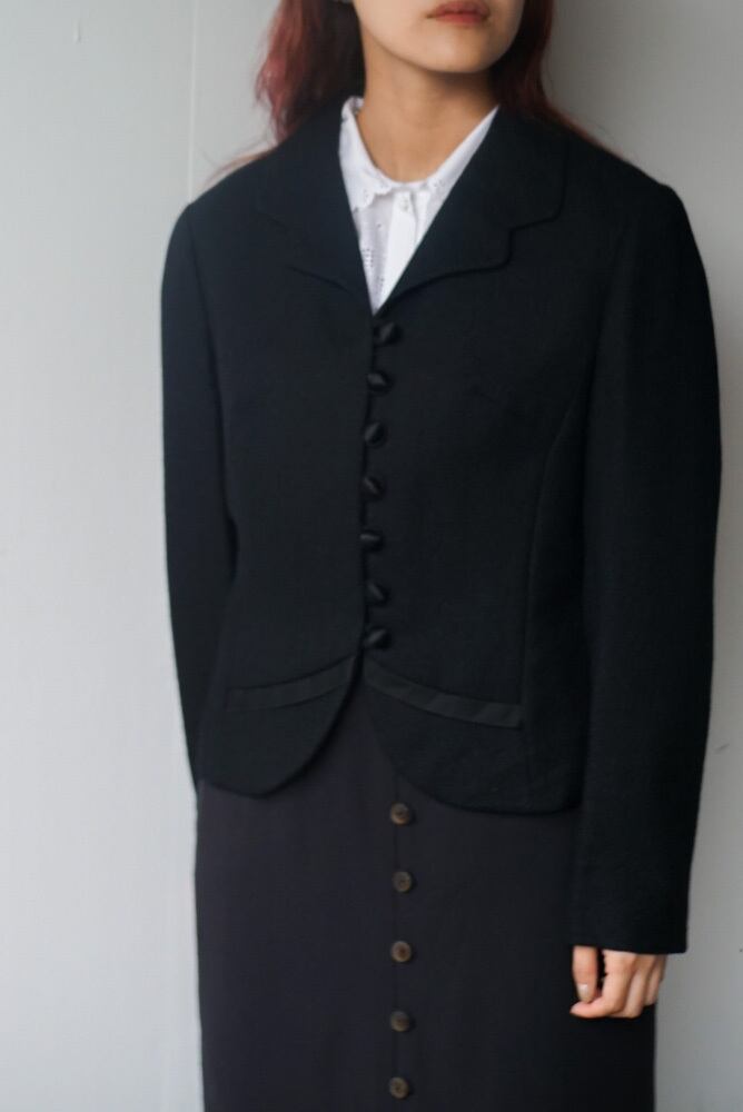 裾のラウンドしたシルエットやボタンのディテールがクラシカルなジャケット
