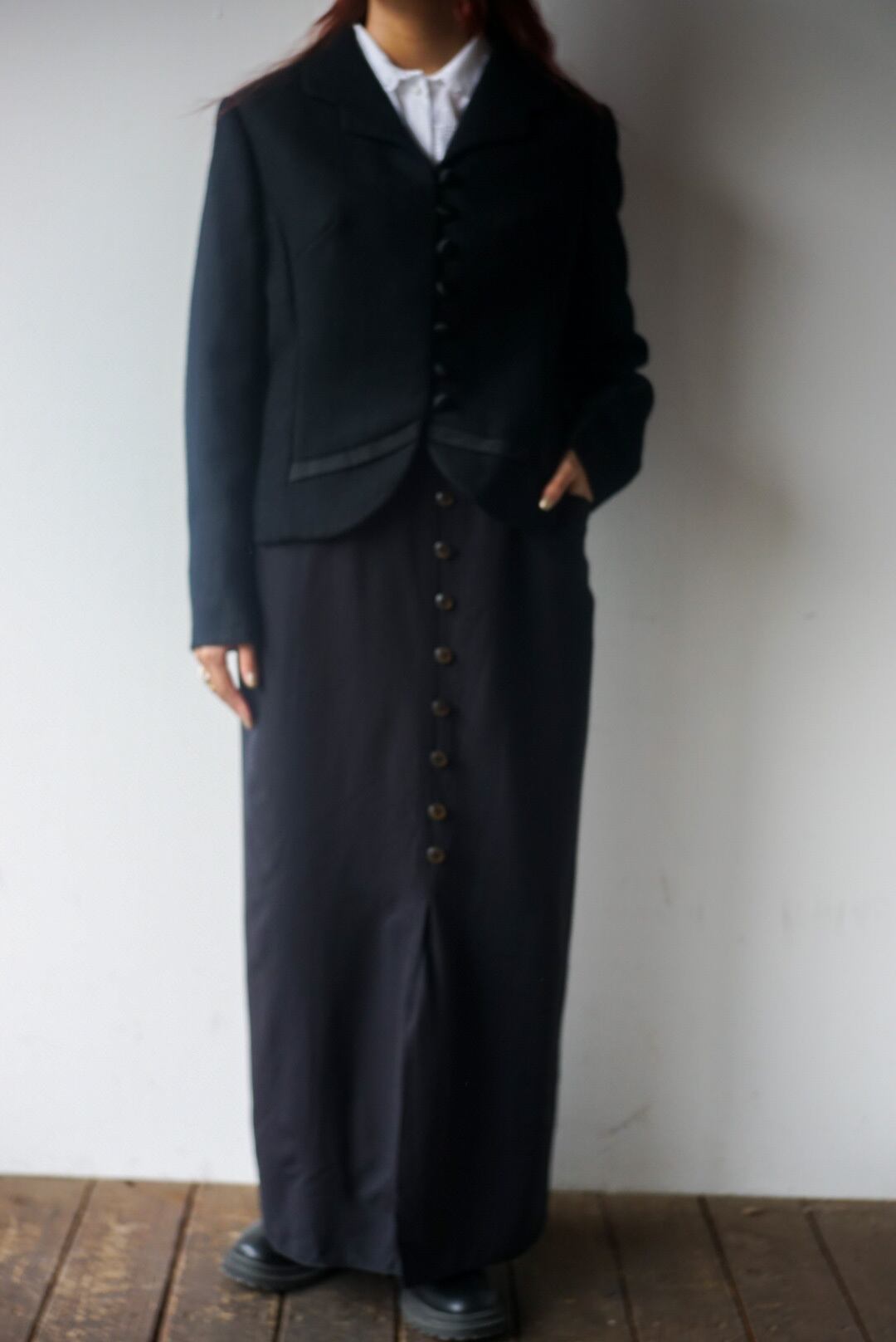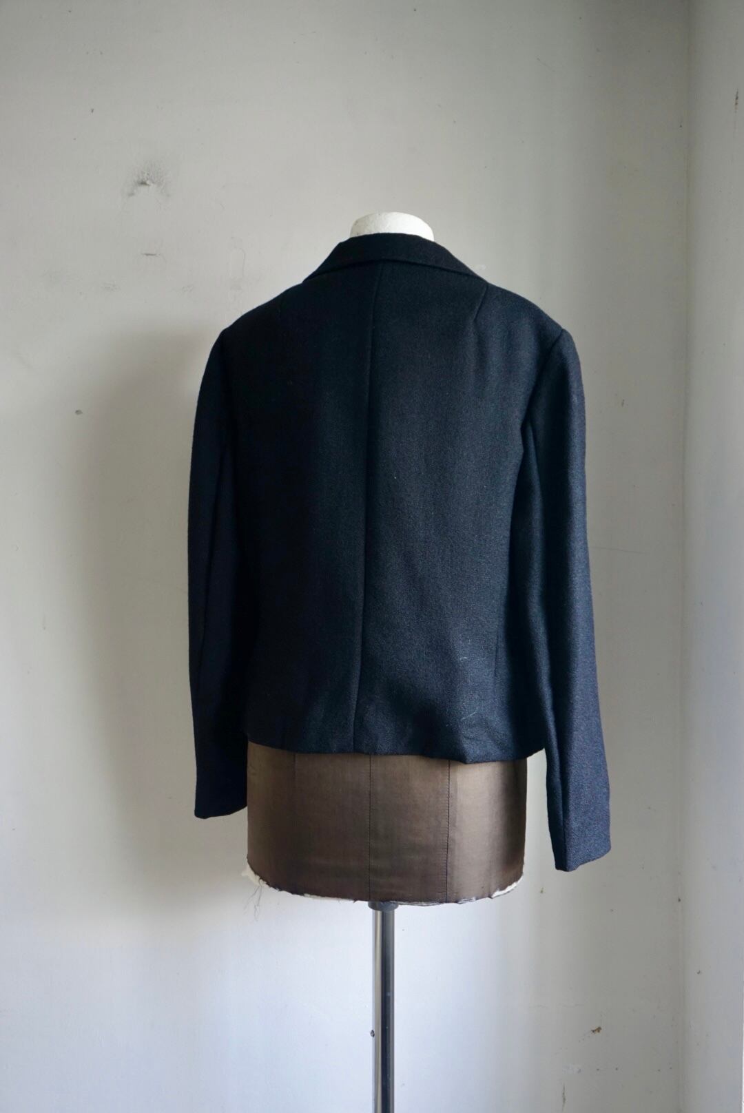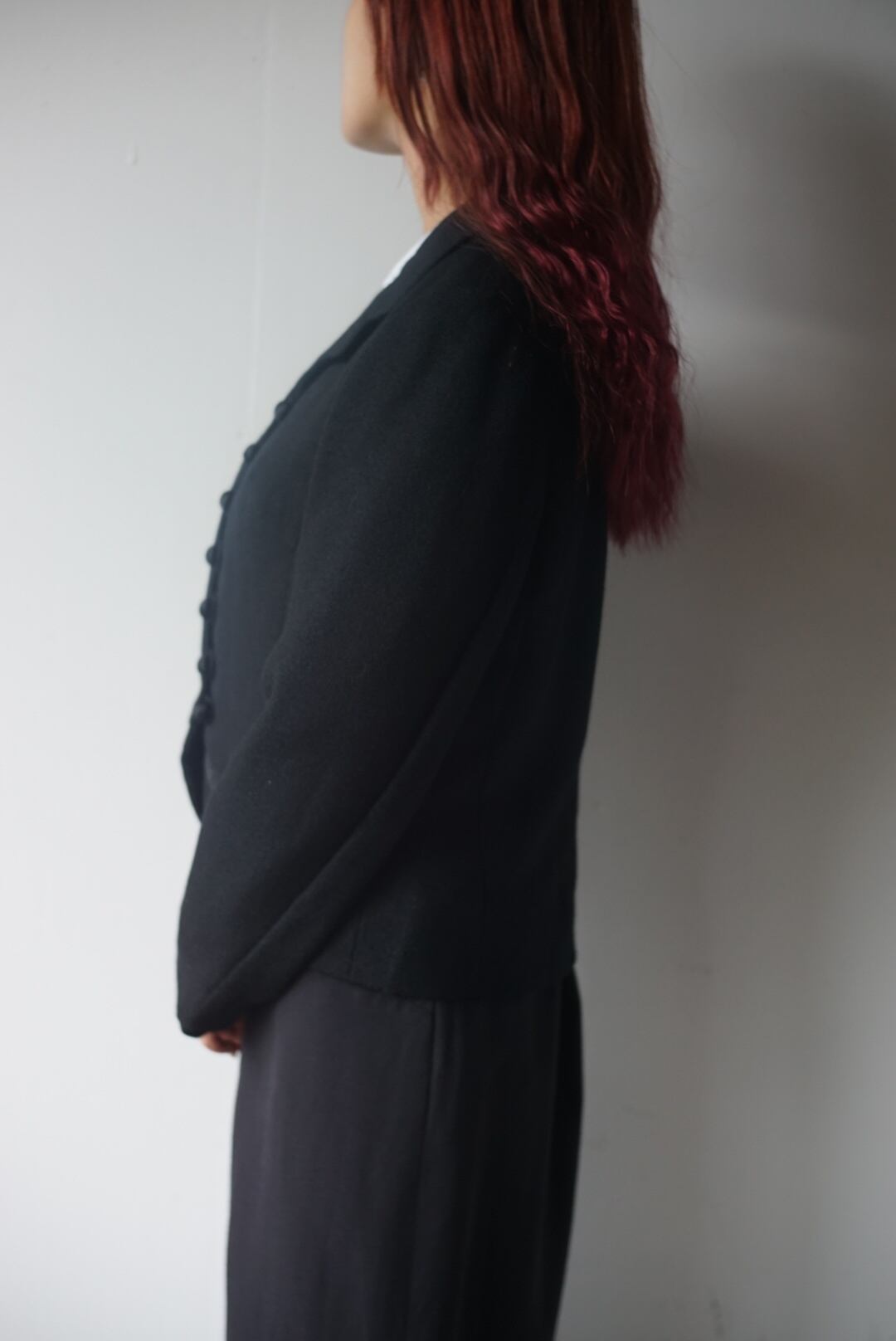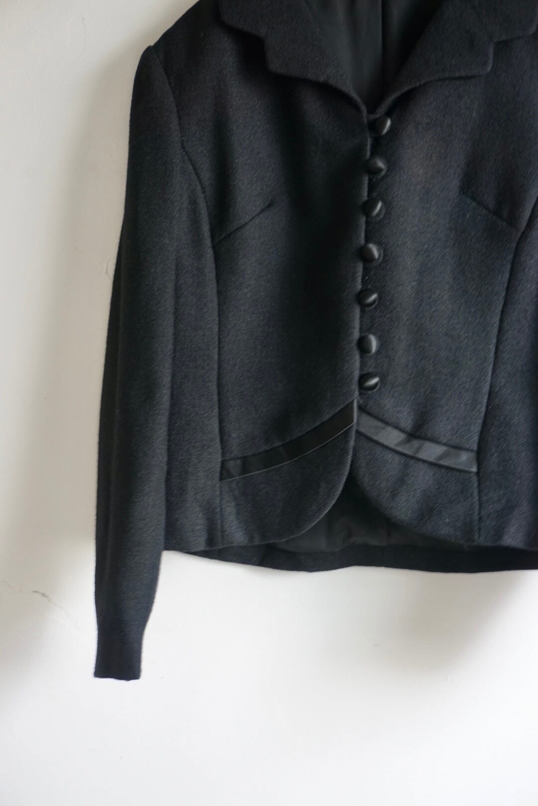 裾のラウンドしたシルエットやボタンのディテールがクラシカルなジャケット