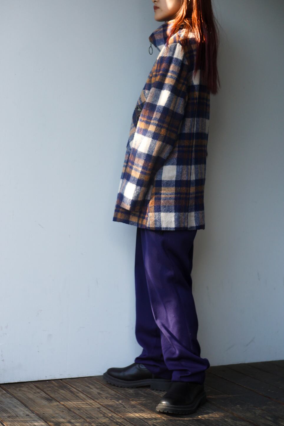 大きいチェック柄が温かみのあるウールジャケット