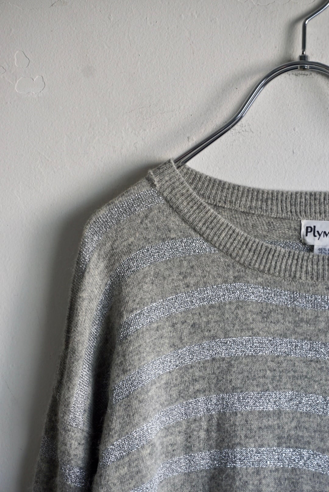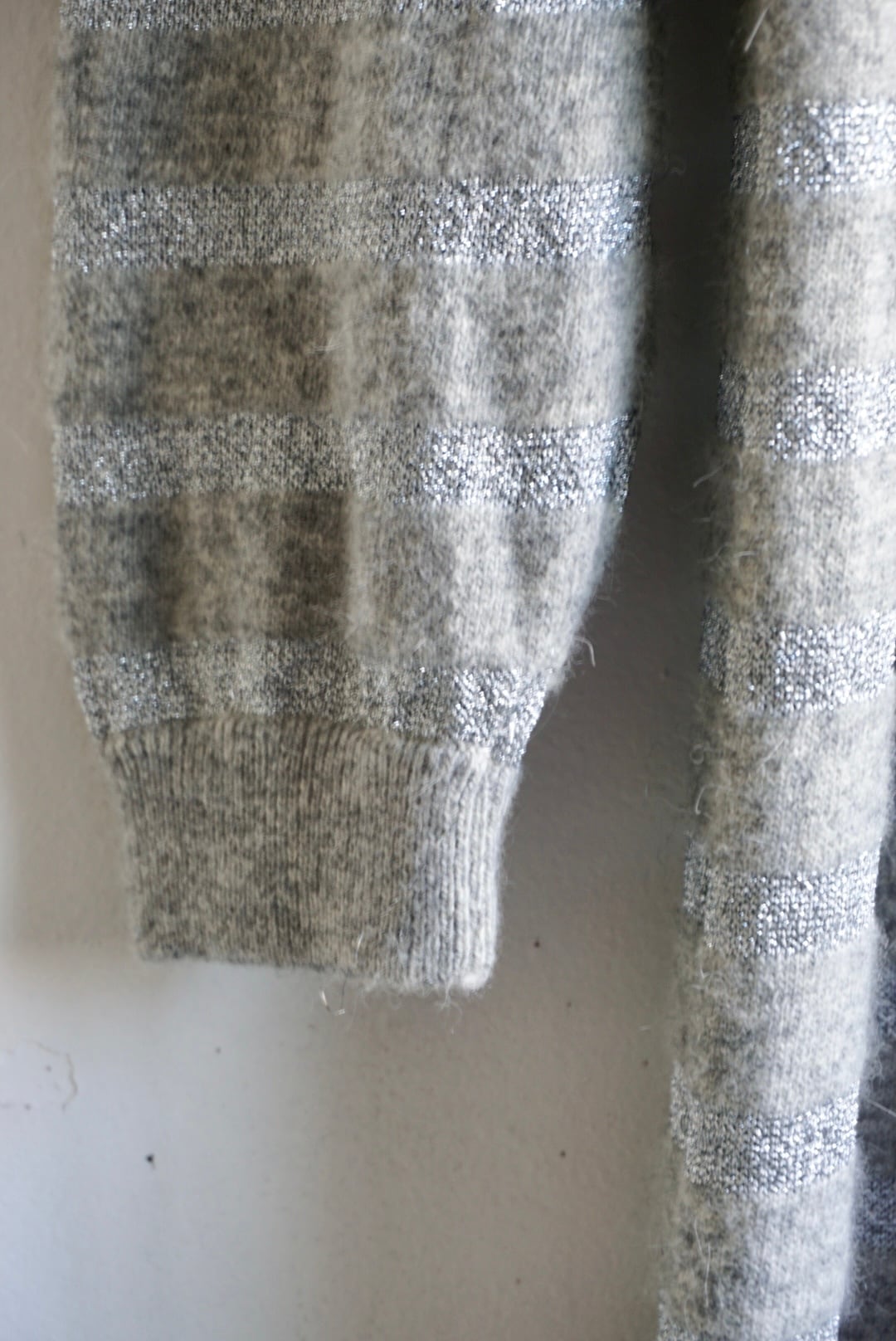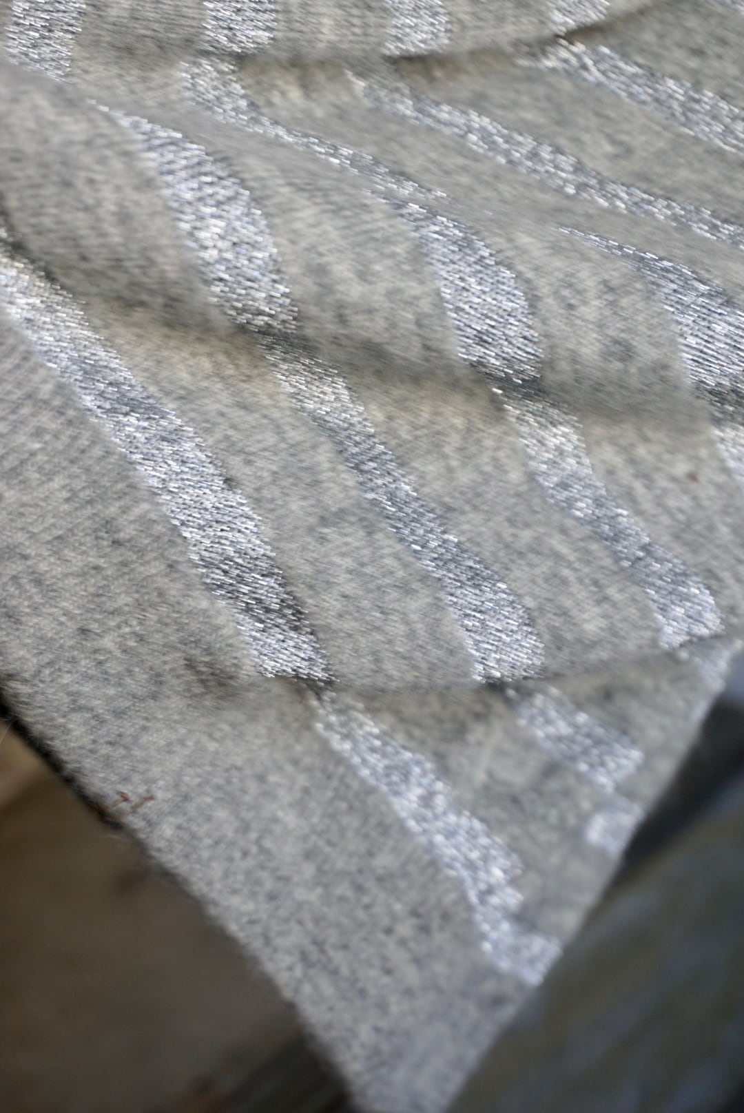 ラメ糸でストライプ柄になっておりグレーカラーに光沢感がポイント