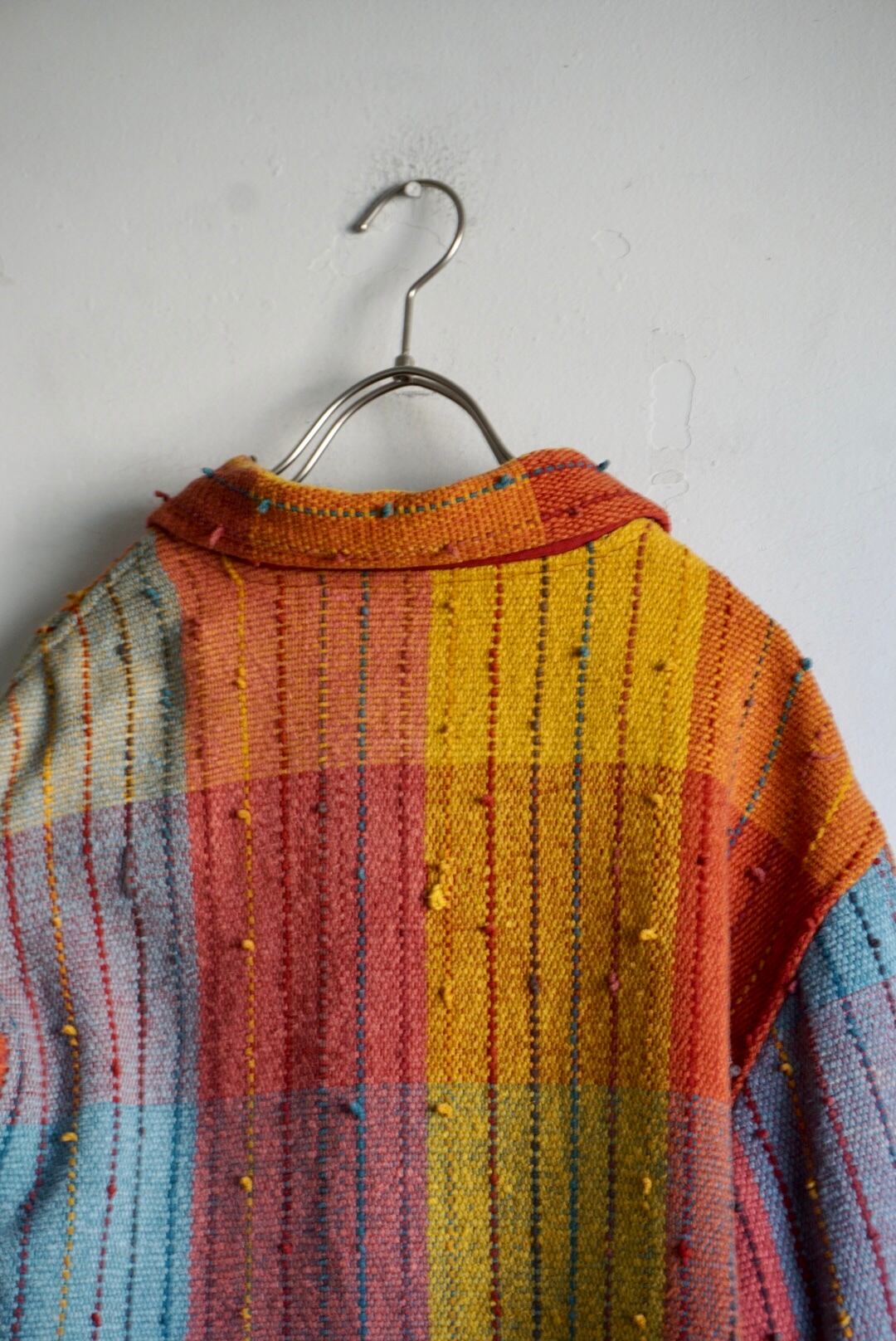 カラフルでレッドカラーの裏地もつくユニークなデザインで、サイドにはポケットが付き身幅や袖幅が広くインナーも着用しやすい1着