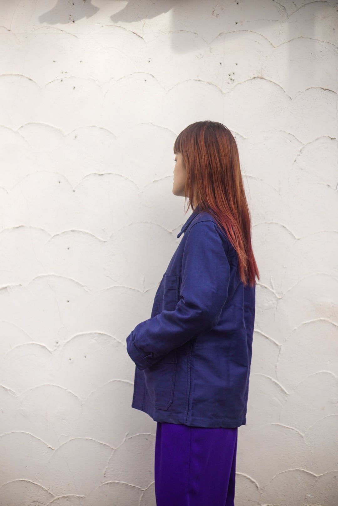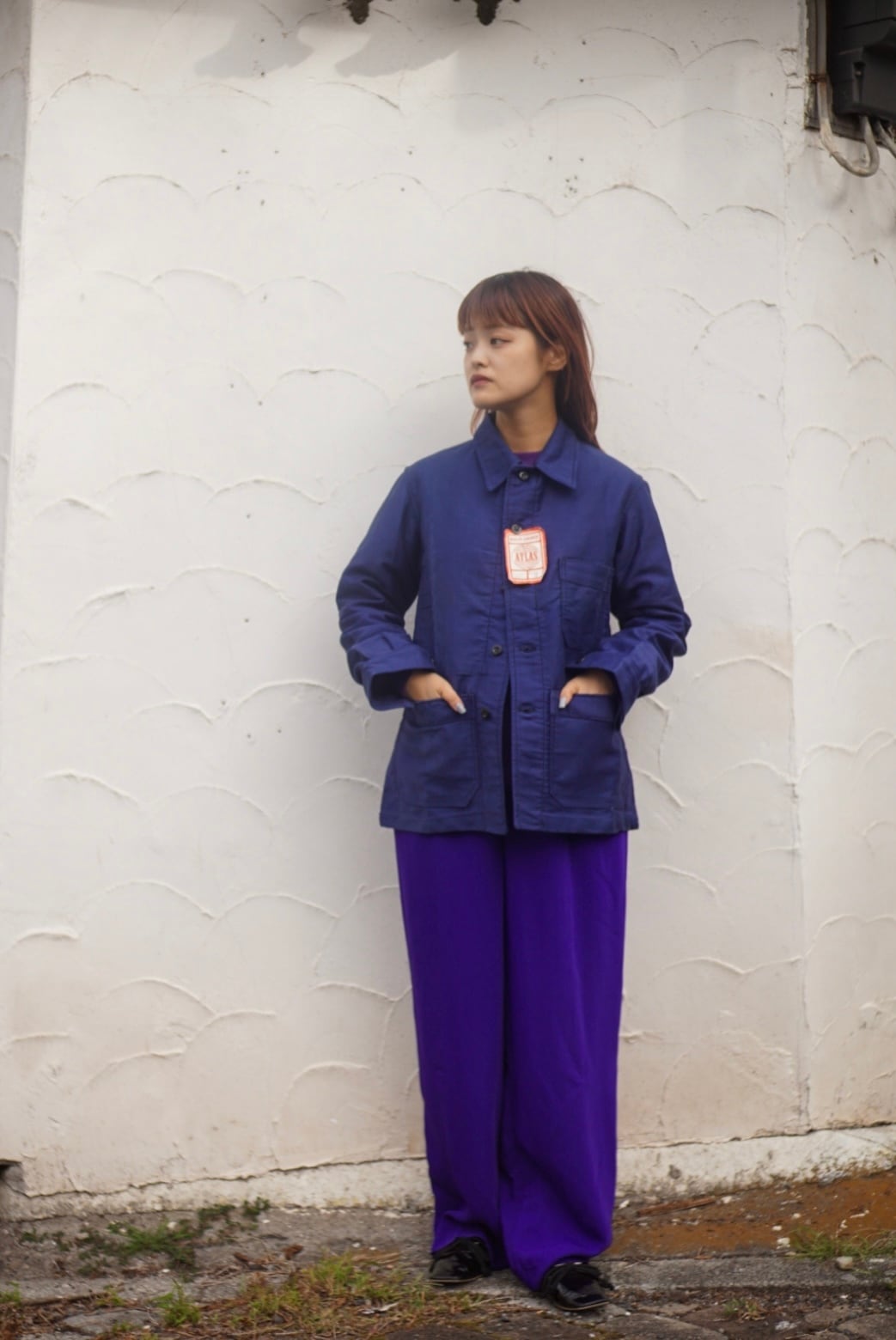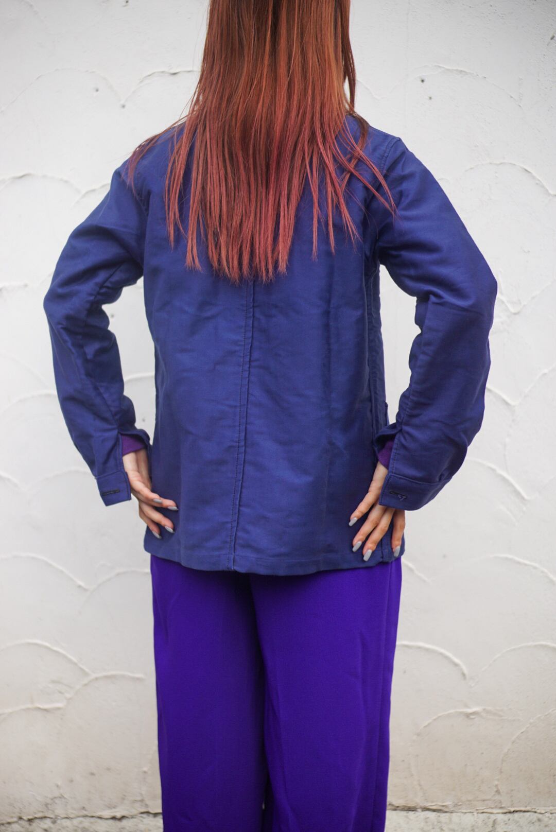 ブルーモールスキンの光沢感やハリのあるコットン素材が上質で、長い年月着用頂けるアイテム