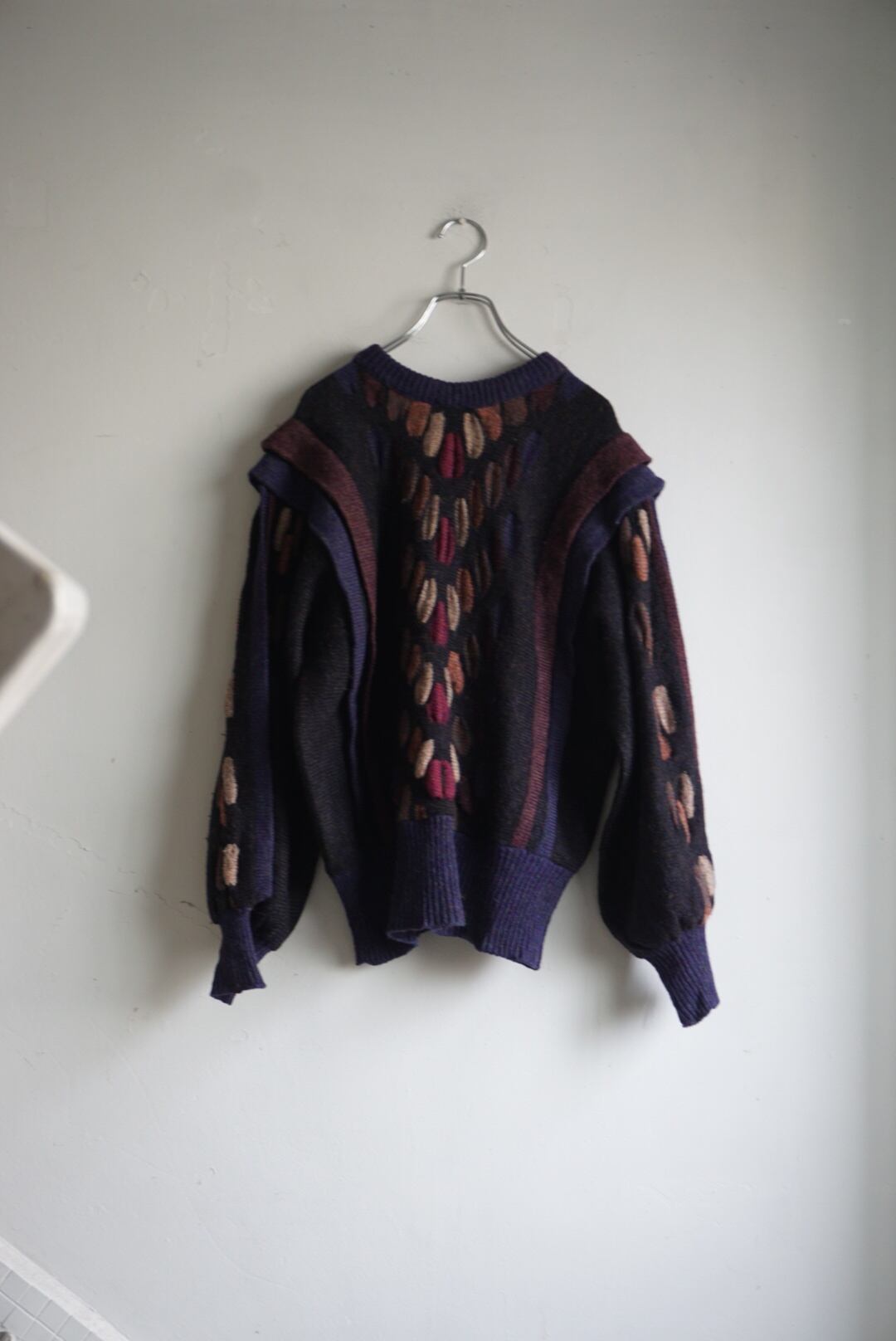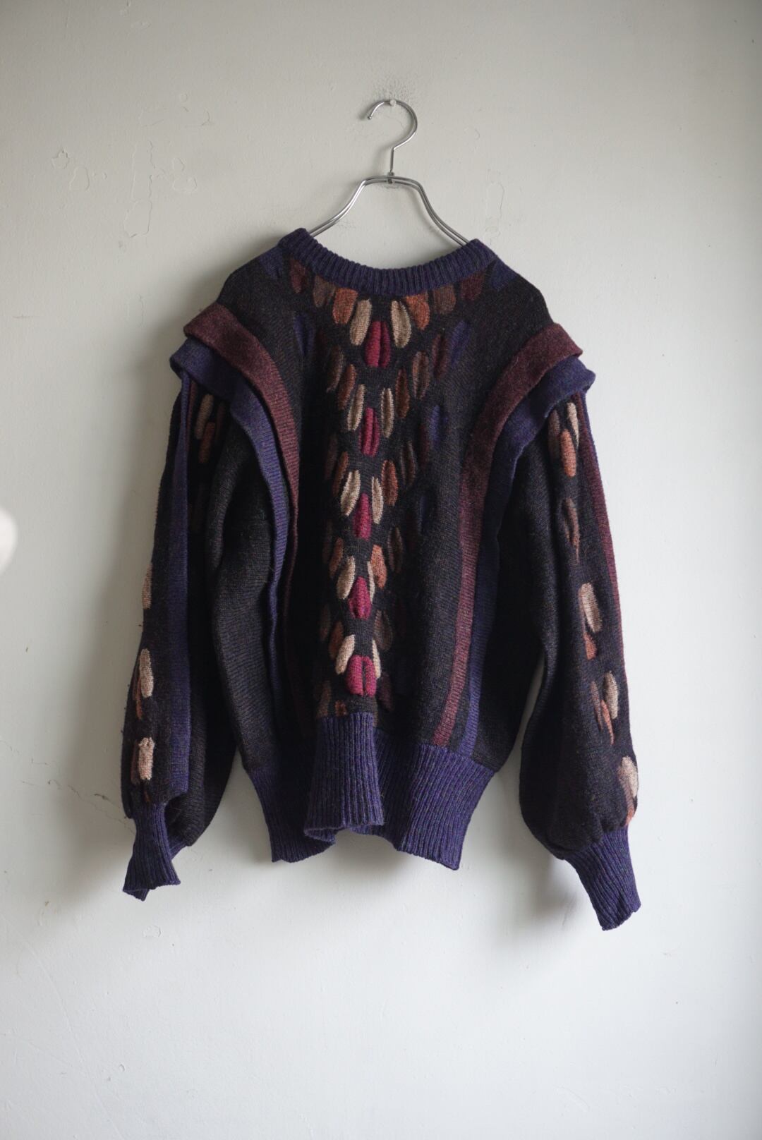 立体的なデザインが目を引くニットセーター