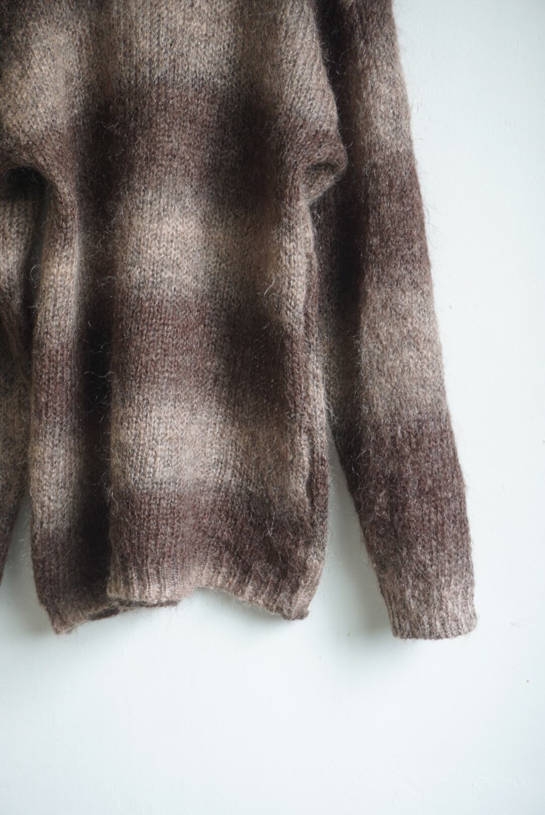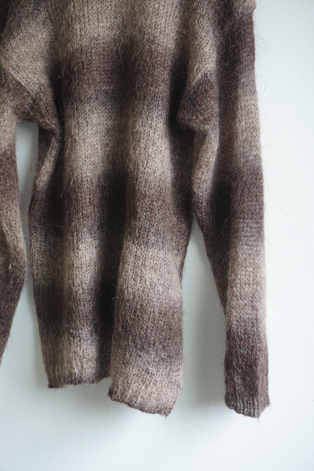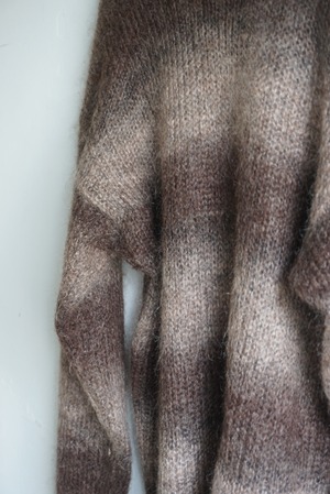 ブラウンとベージュカラーの太いボーダー柄が派手すぎずポイントになり、気回しやすい1着