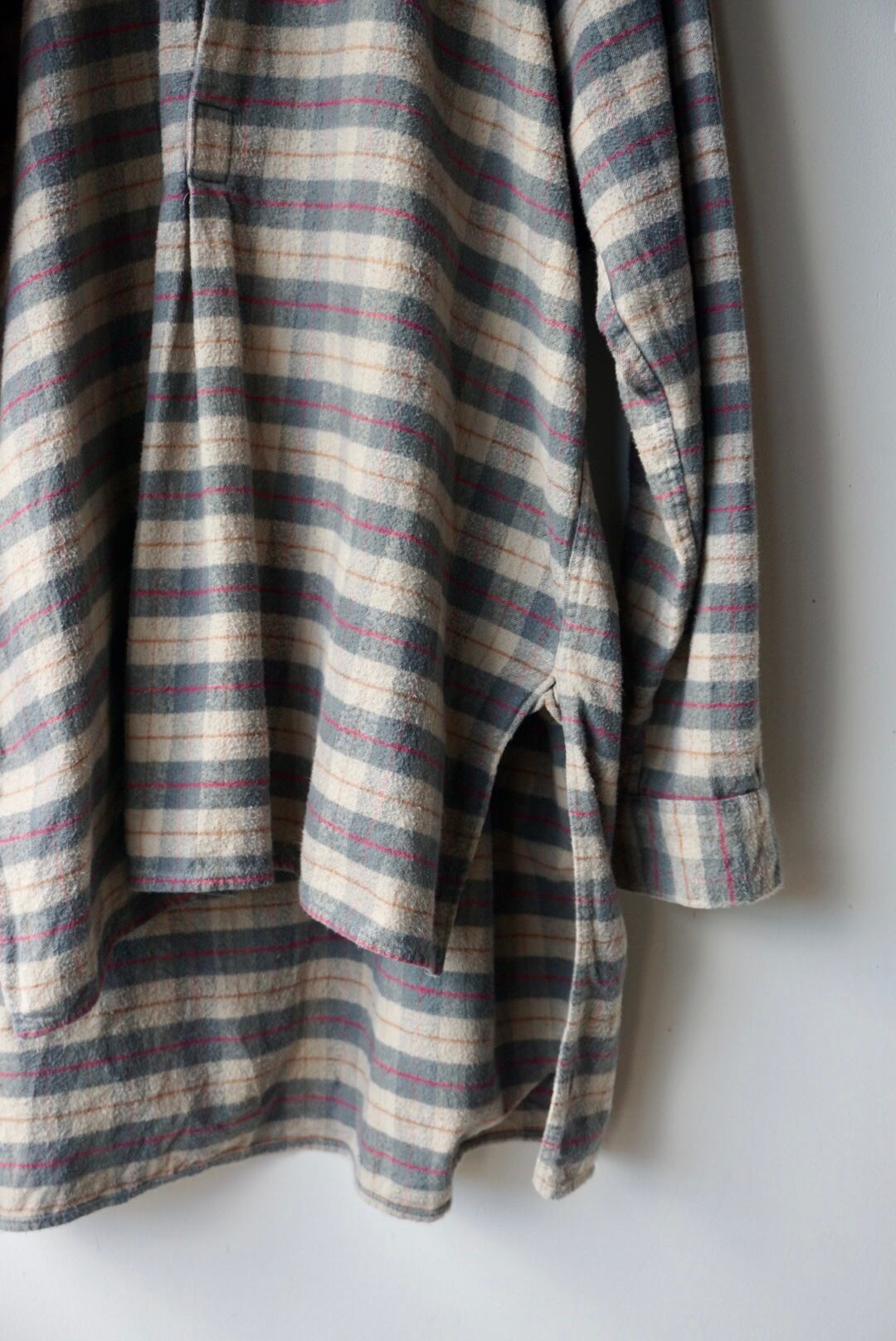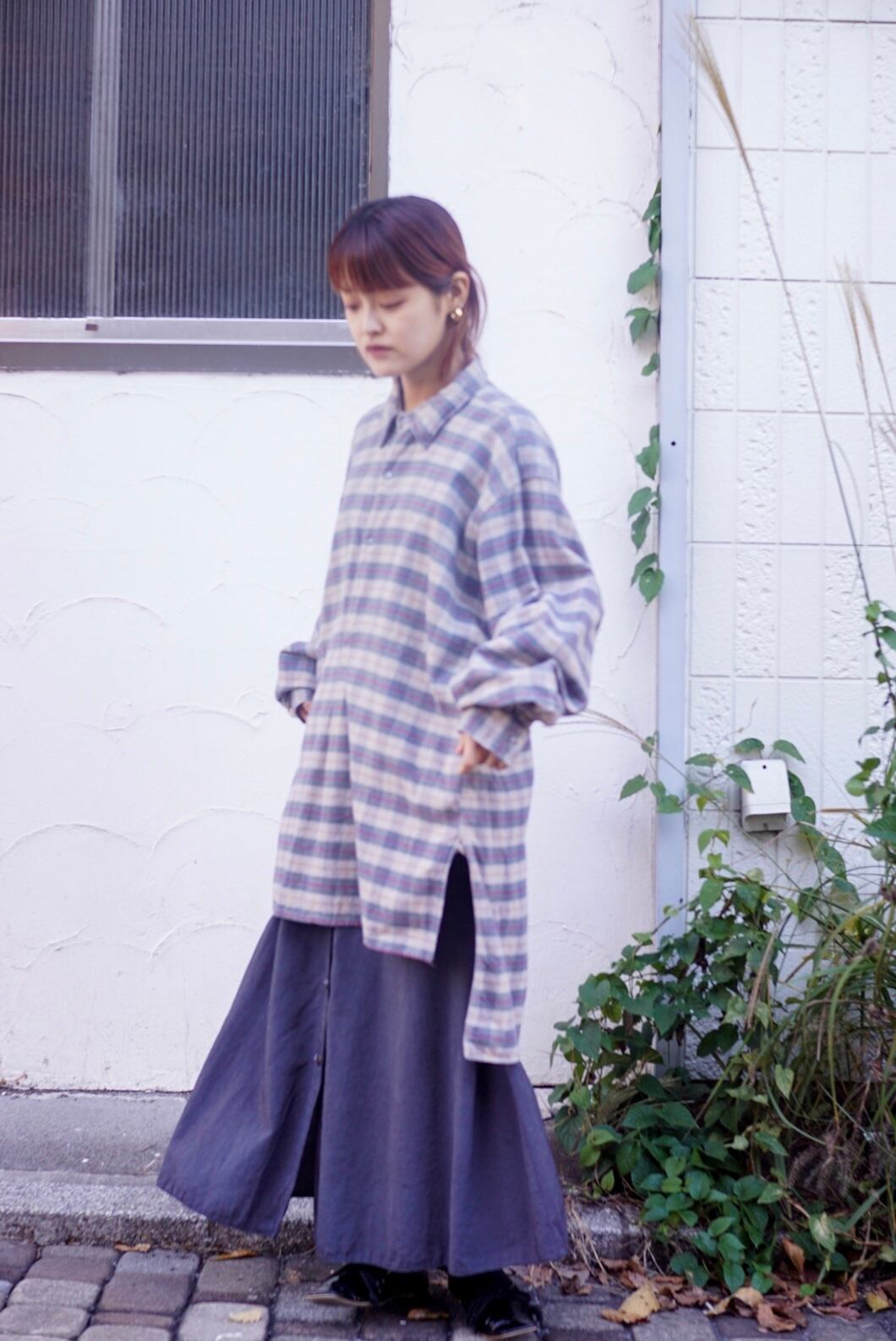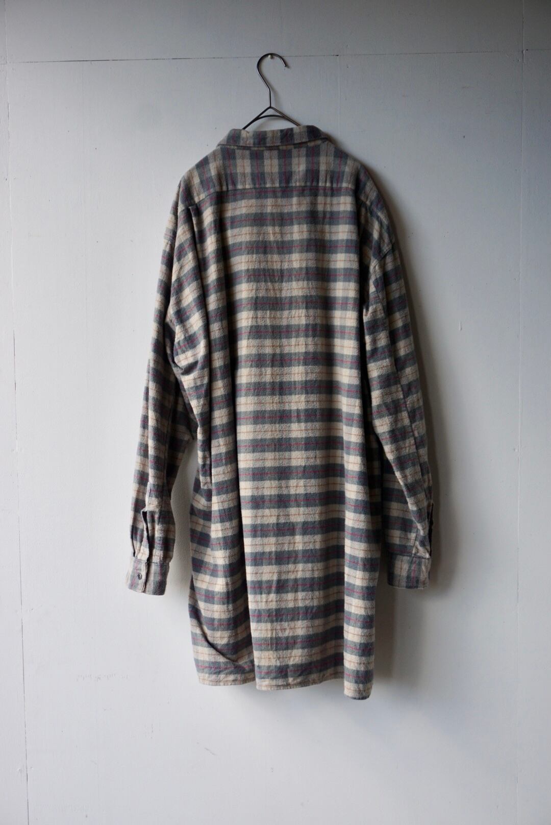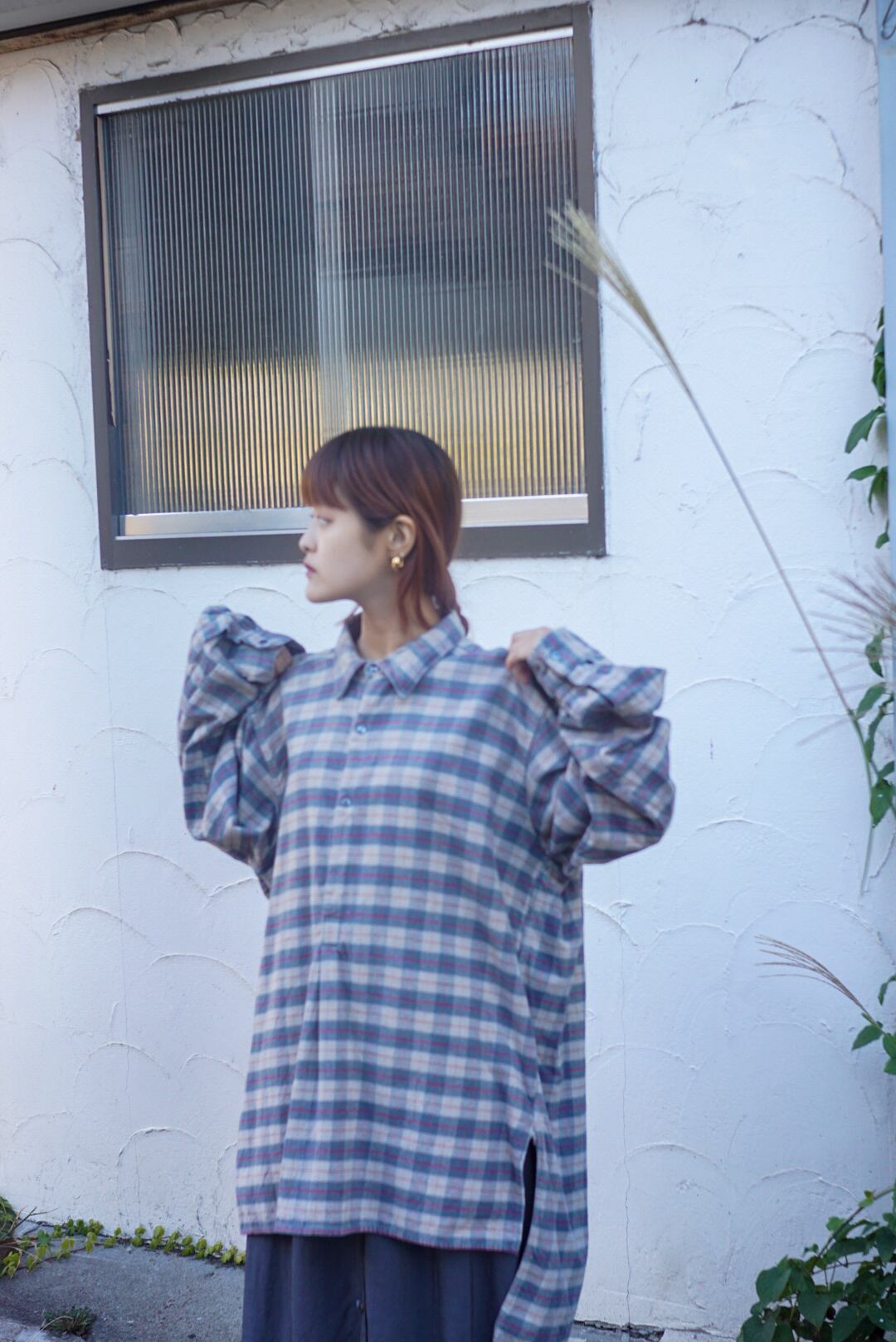 ベースのグレーカラーにチェック柄がポイントとなりゆったりサイズで男女問わずおすすめです