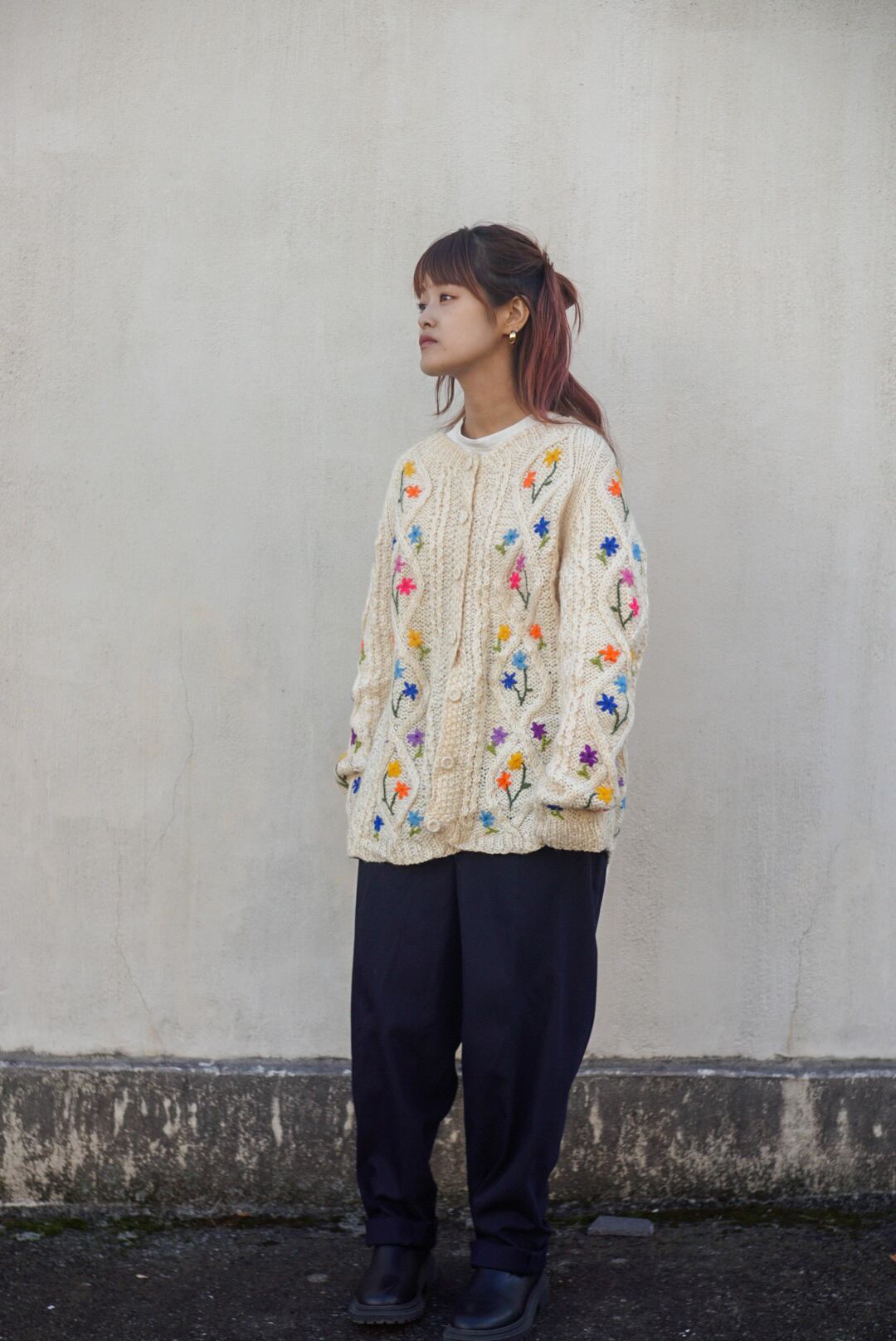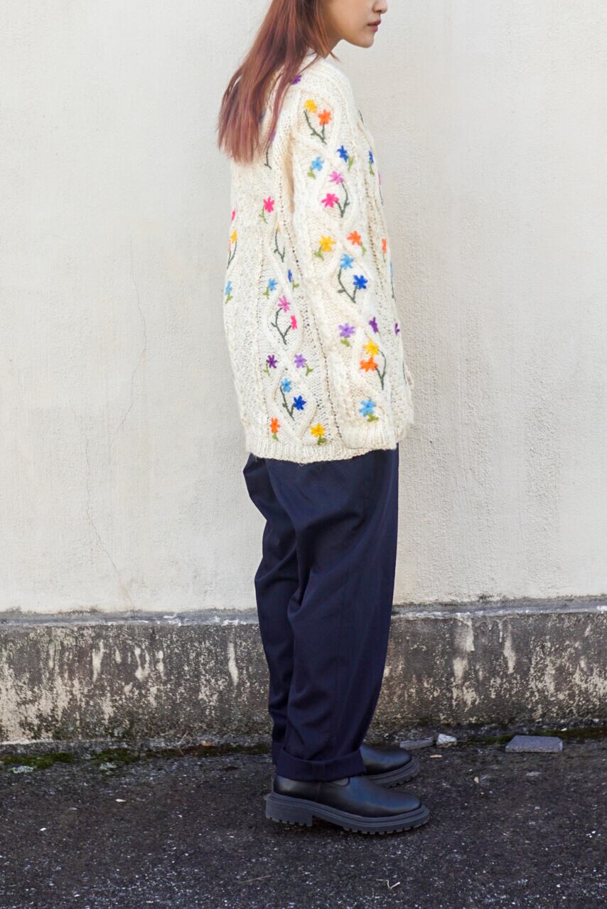 全体的にゆったりサイズで柔らかいウール素材のニットカーディガン