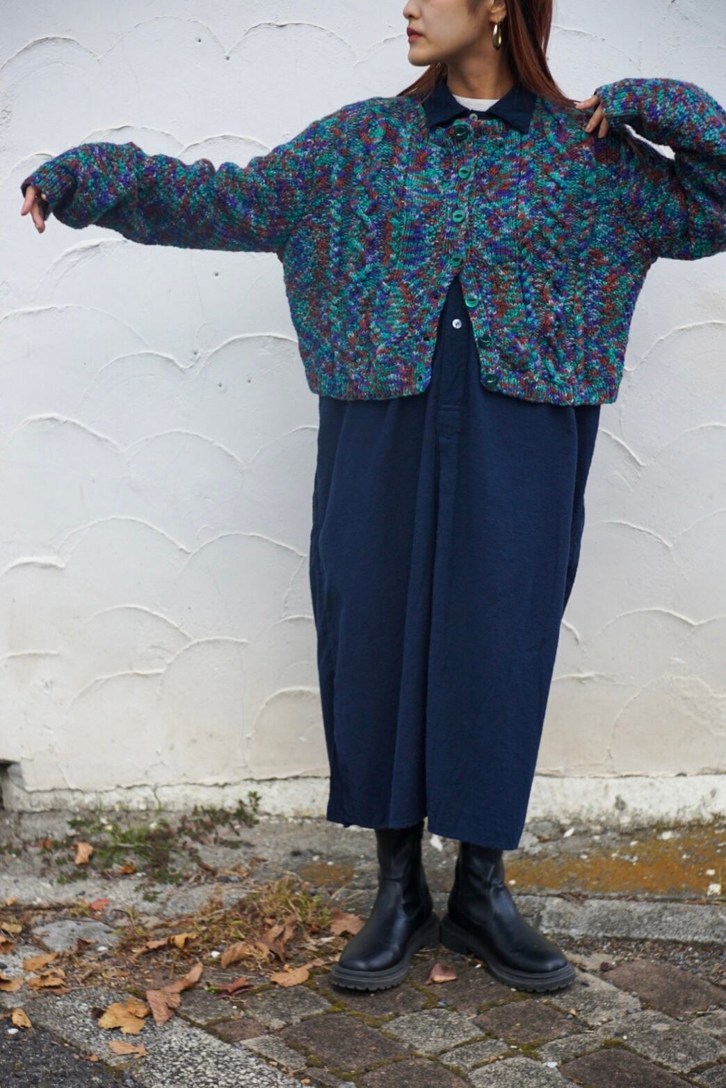 寒色カラーをベースにブラウンカラーが混ざった配色が可愛らしく、着丈の短いデザインがポイントになります
