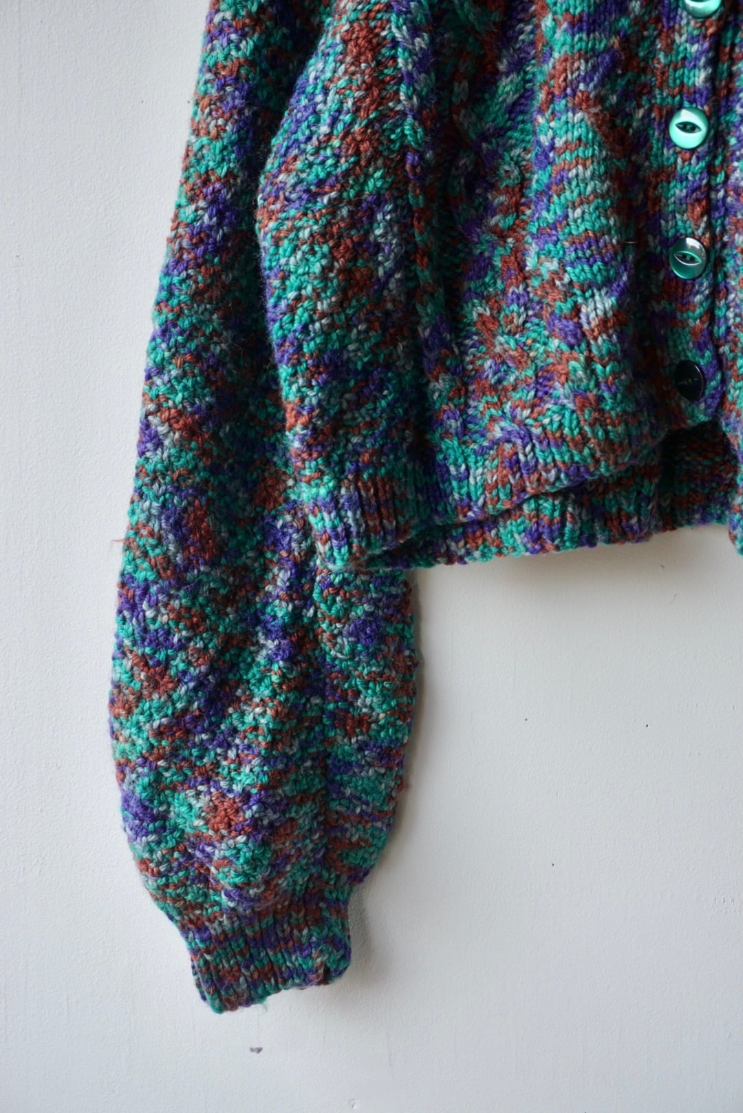 身幅がゆったりでアームホールも広くインナーなども重ねやすいニットカーディガン