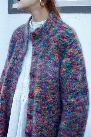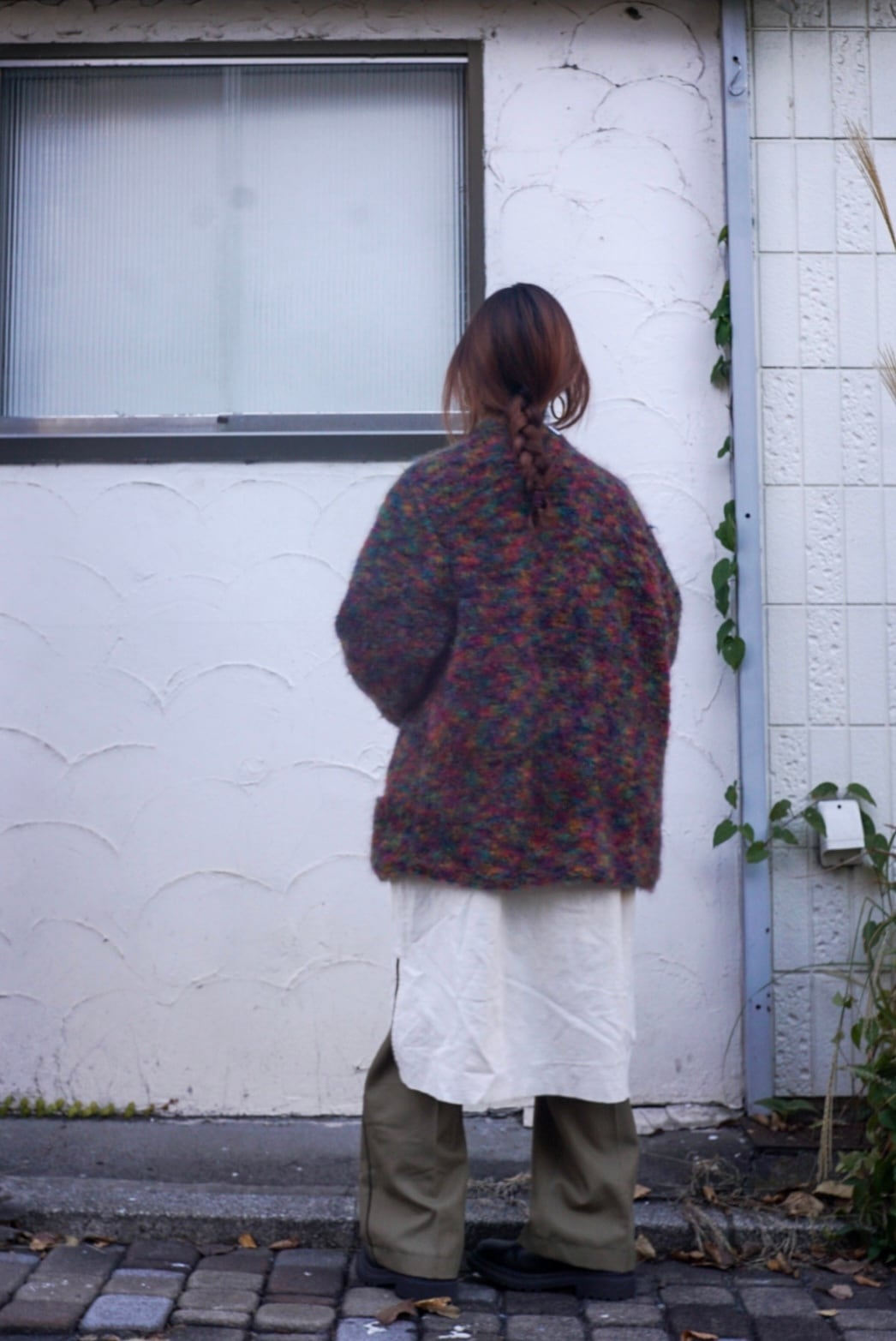 厚みがあり毛足の長い素材が暖かく着用頂けるニットカーディガン