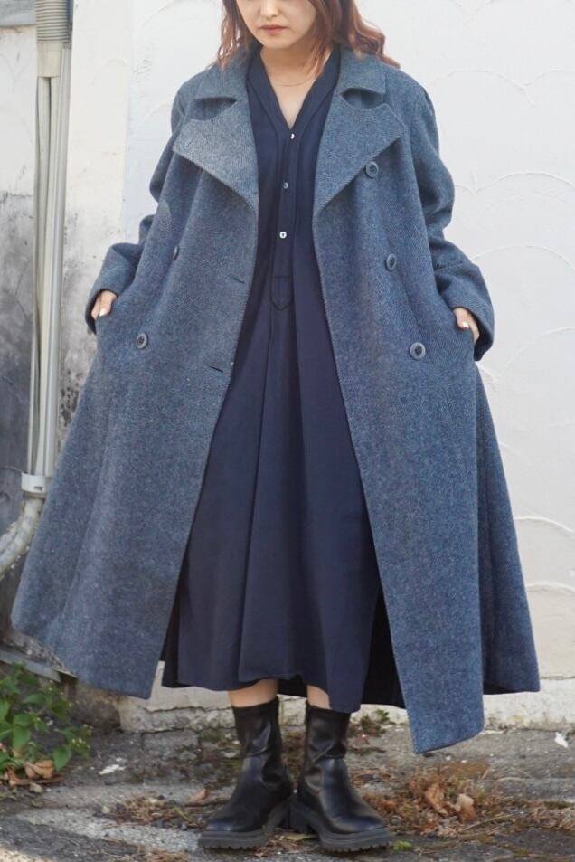 くすんだブルーカラーが肌馴染み良くポイントになります